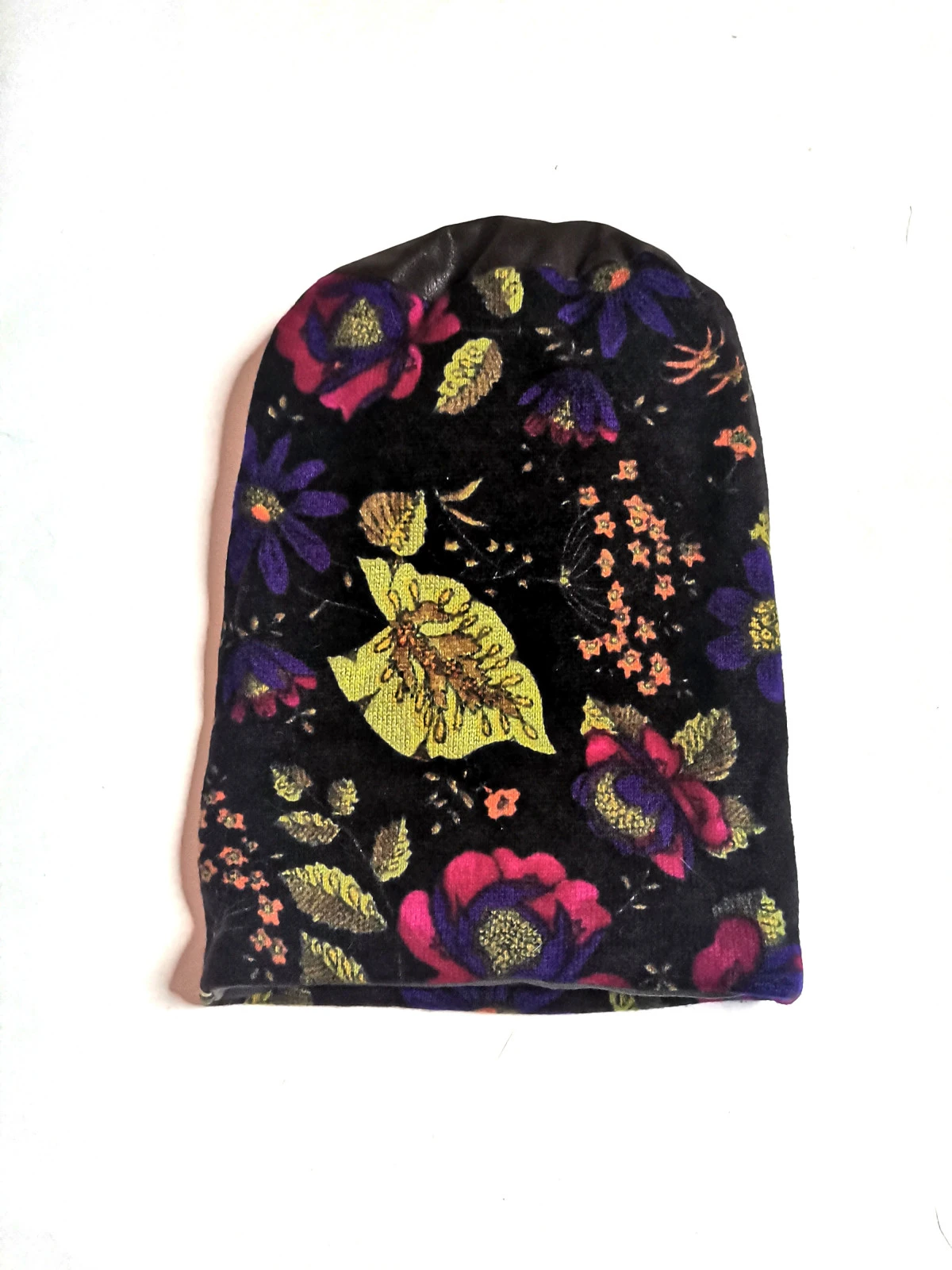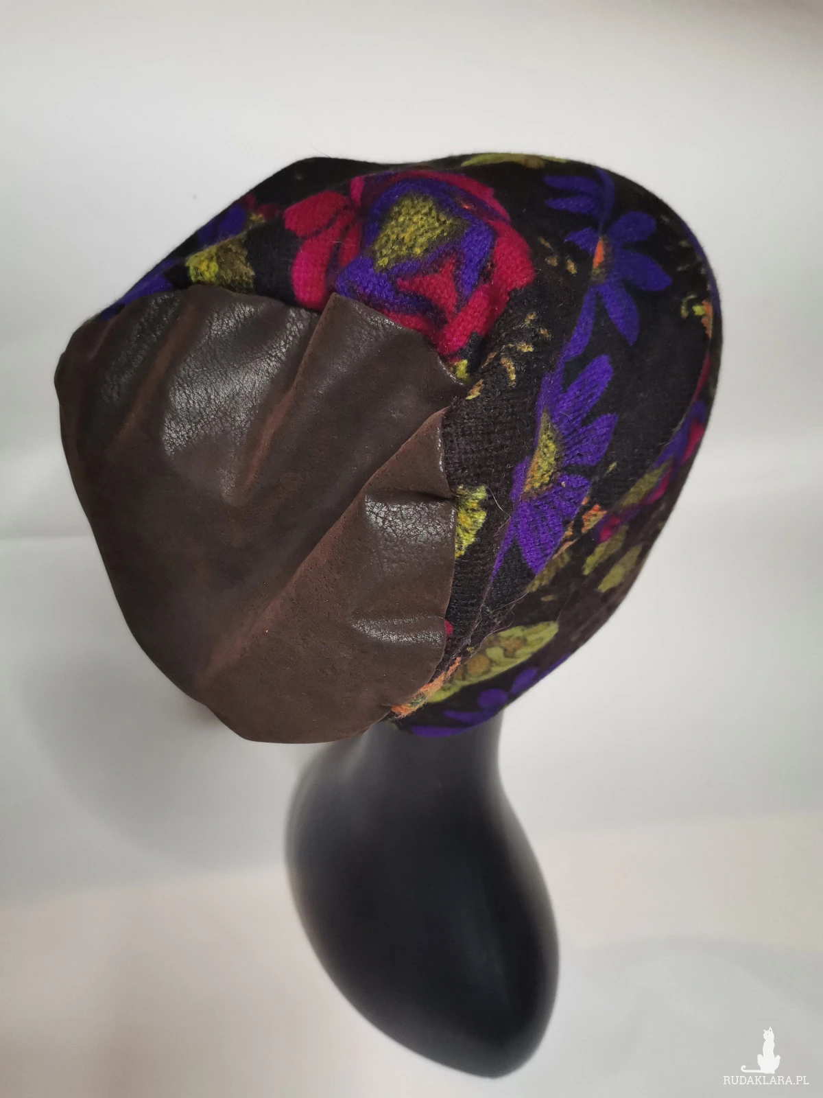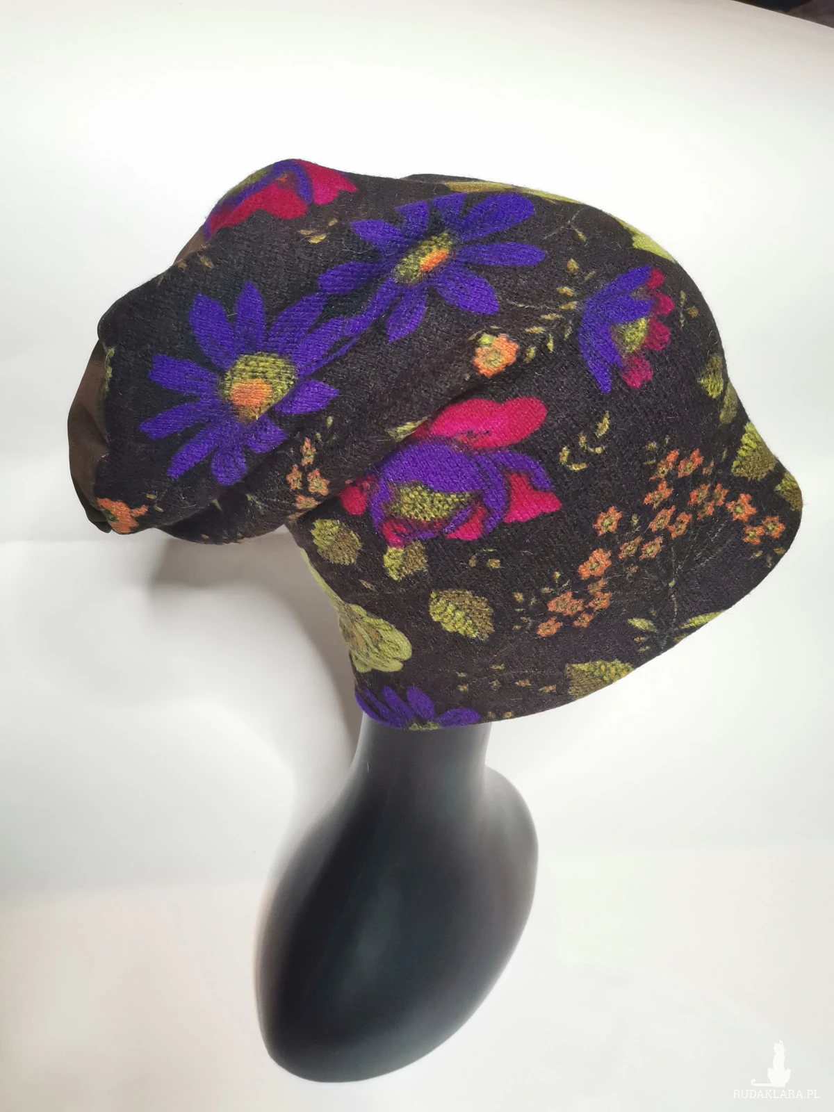 Czapka ciepła kwiatowa  handmade smerfetka na podszewce polecam obwód uniwersalny box 44