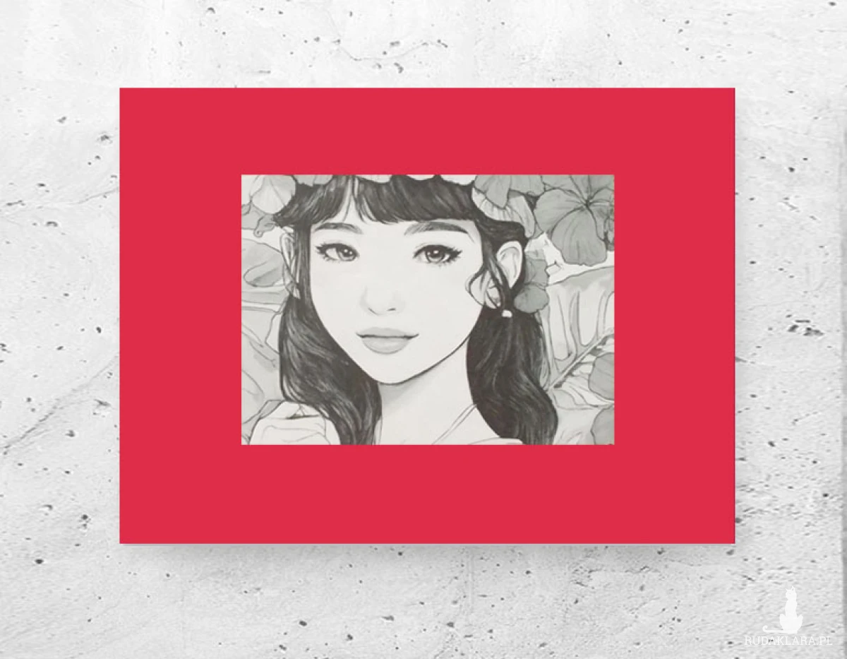 Biało czarna grafika na czerwonym kartoniku A4. Plakat z dziewczyną. Dekoracja na ścianę do biura, salonu, sypialni, jadalni, gabinetu, przedpokoju, garderoby, kuchni, pokoju dziewczynki lub nastolatki, holu itp. Plakat wystarczy dać do ramki 21x30 cm.. Poster będzie pasował do wnętrz urządzonych w stylu boho, nowoczesnym, skandynawskim, mieszanym.