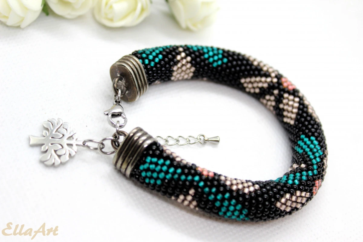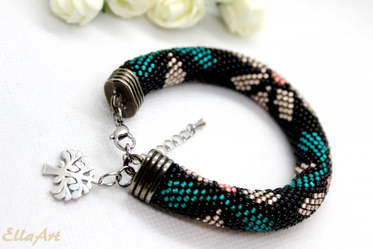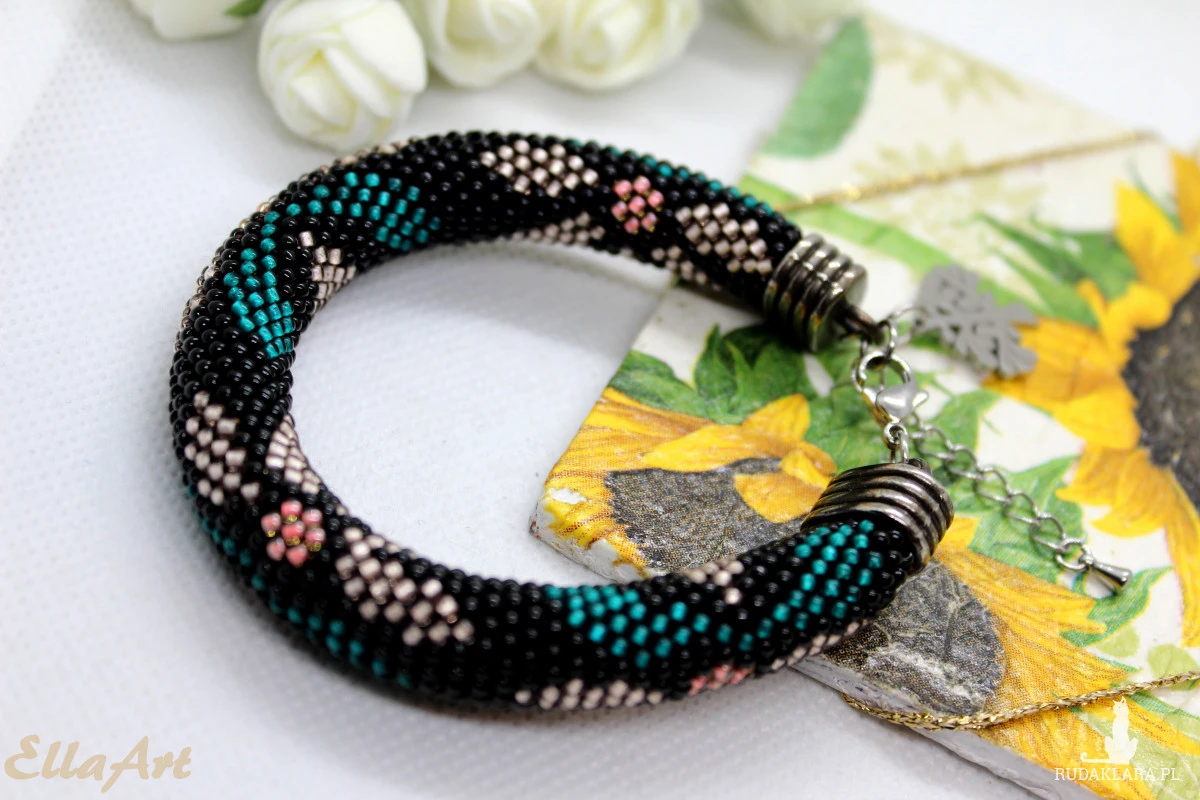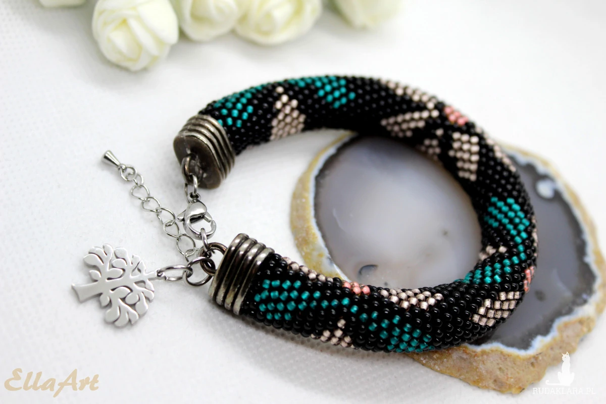 wykonana ręcznie, techniką ukośnika, ze szklanych koralików japońskiej