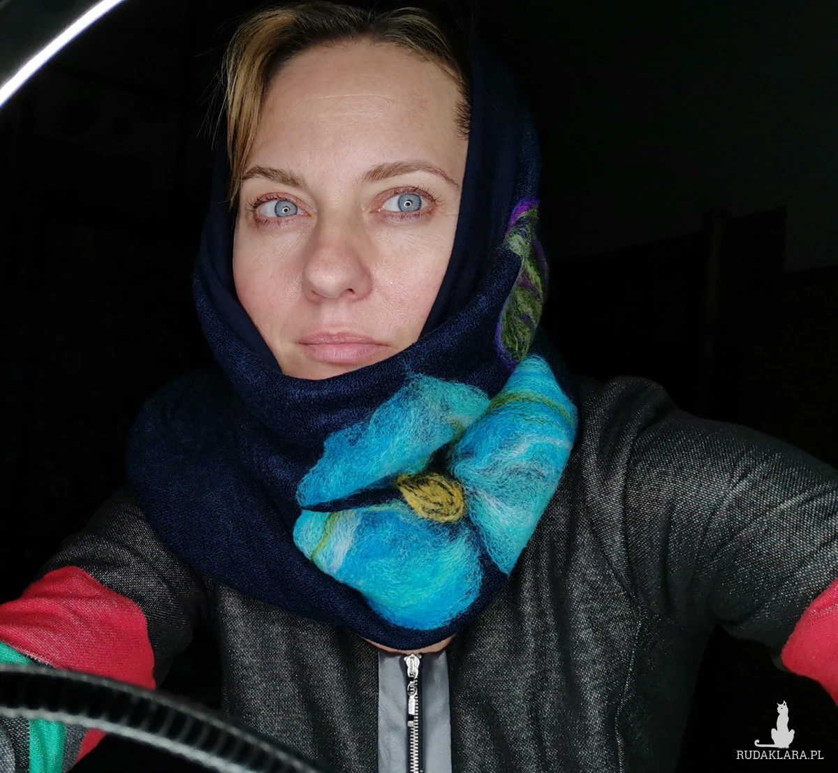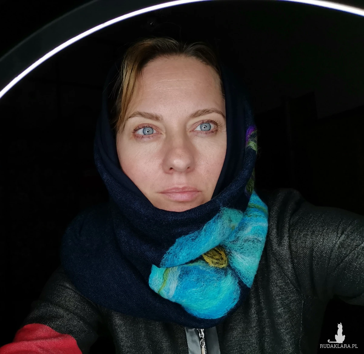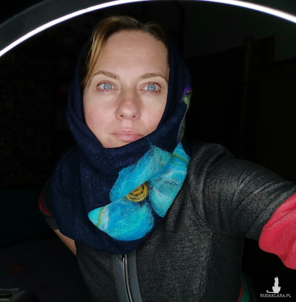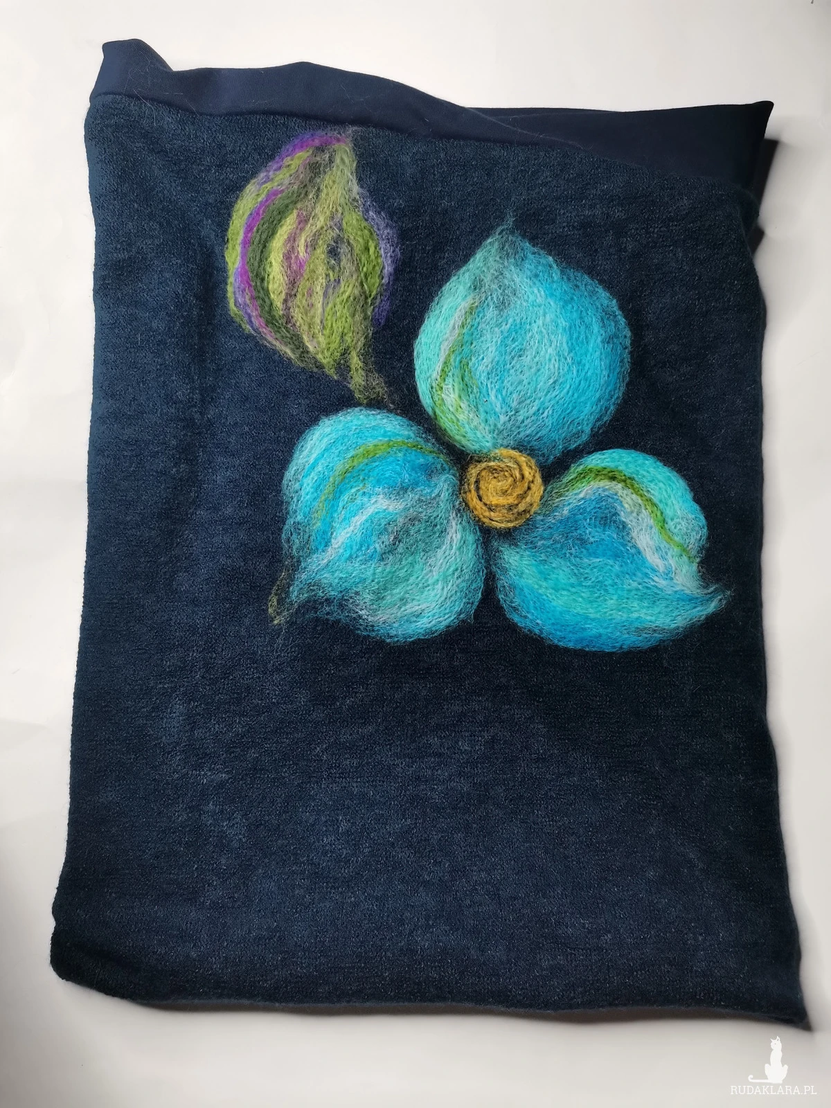 komin tuba wełniany granatowy  filcowany- wymiary 33cm na 48cm wełniany filcowany komin na  podszewce wciągany przez głowę,  box k1