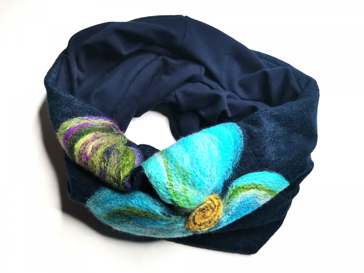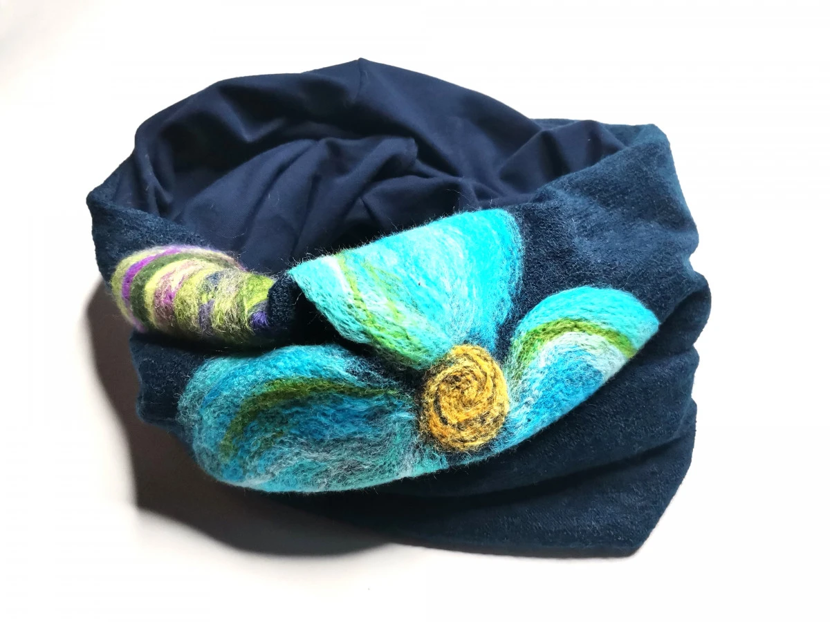 komin tuba wełniany granatowy filcowany
