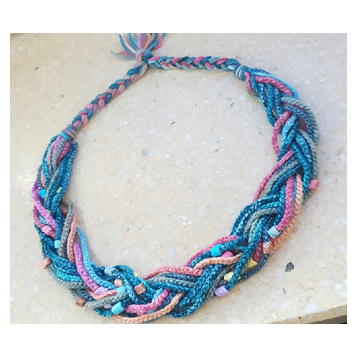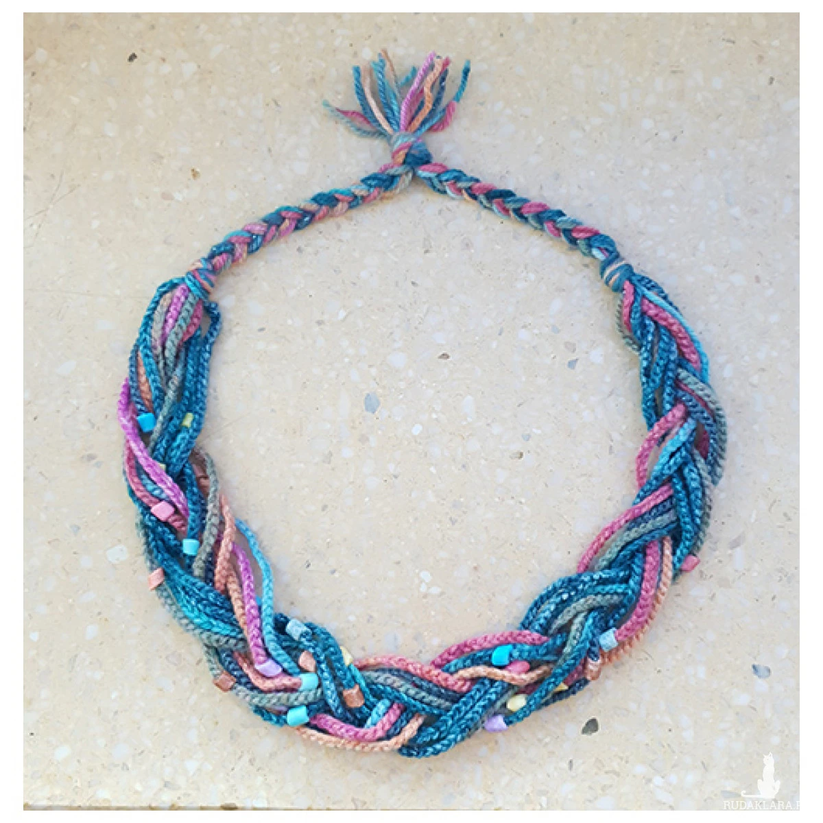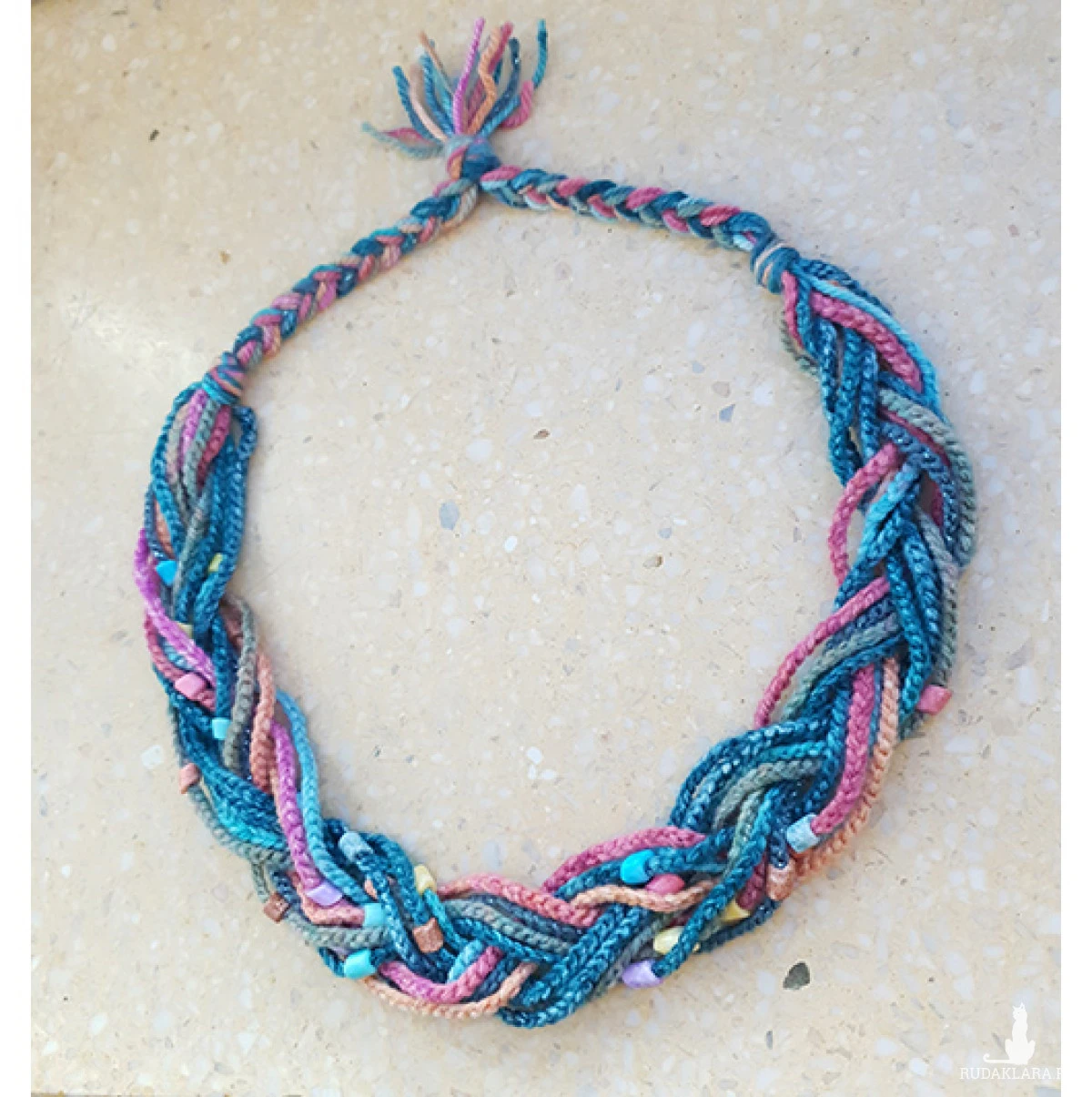 Naszyjnik wykonany z 12 szt. ręcznie plecionych sznurków, splecionych w luźny warkocz.
