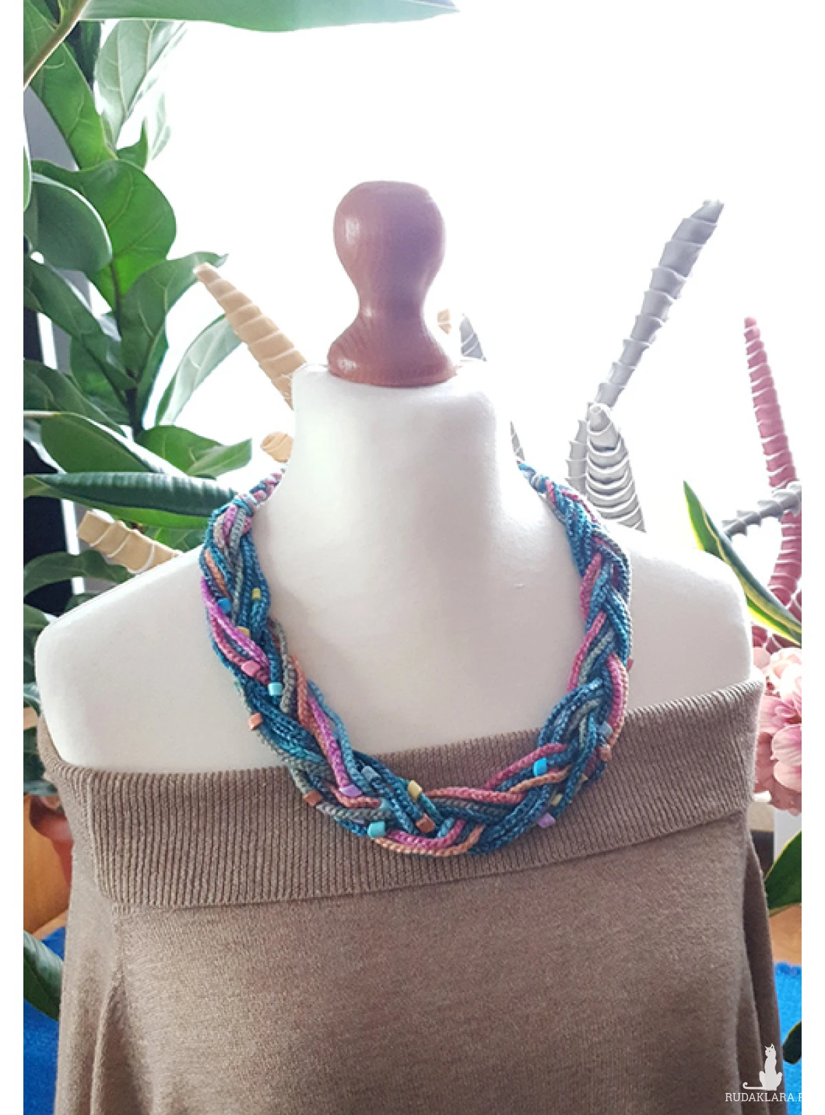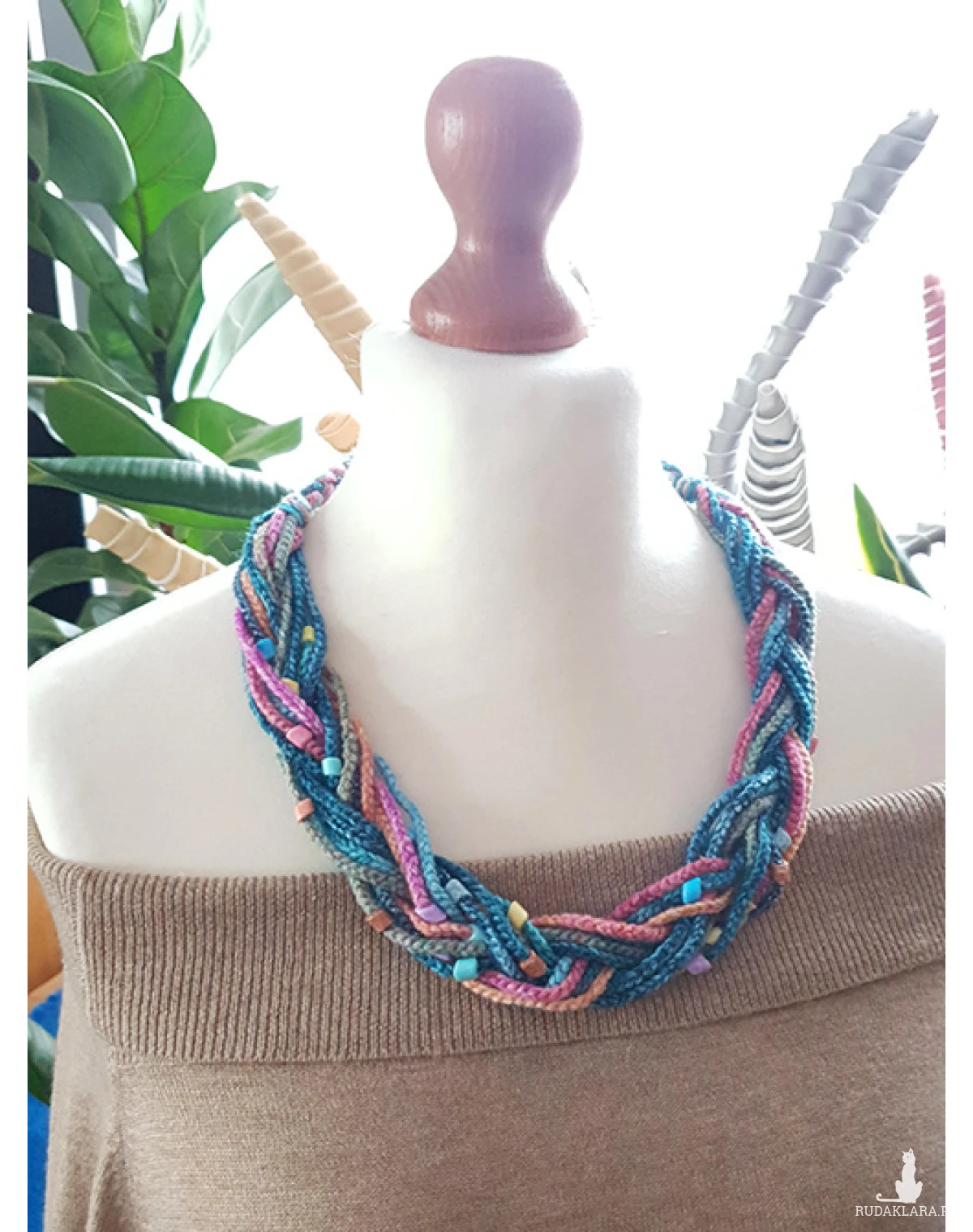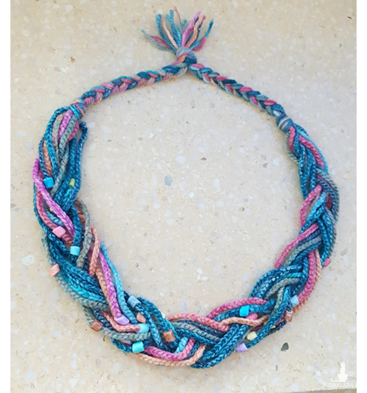 Naszyjnik wykonany z 12 szt. ręcznie plecionych sznurków, splecionych w luźny warkocz.