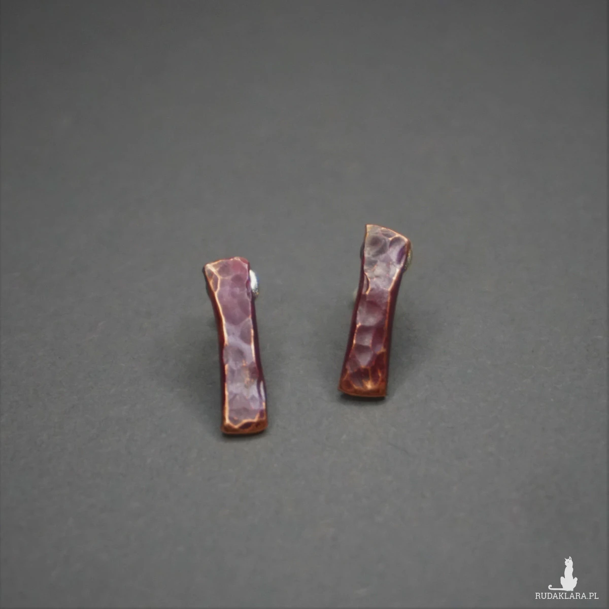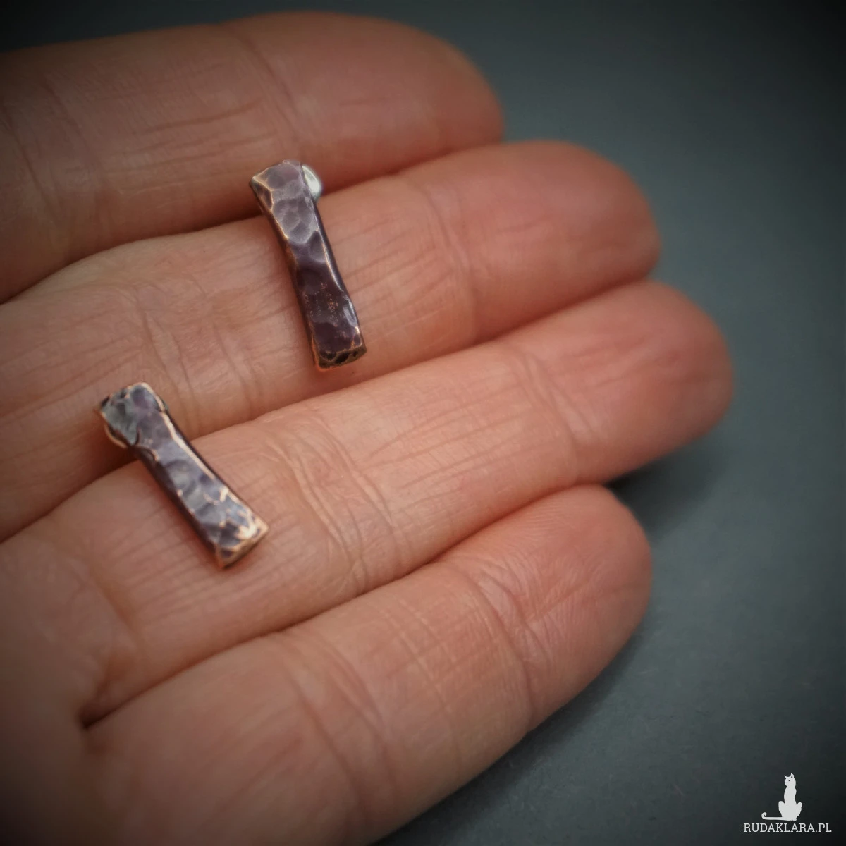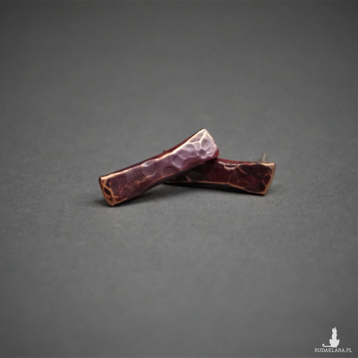 Unikatowe, minimalistyczne, kolczyki sztyfty z miedzi wykonane od podstaw ręcznie. Rozmiar kolczyków to 10 mm. Kolczyki wysyłam w eleganckim pudełeczku w kolorze grafitowym.