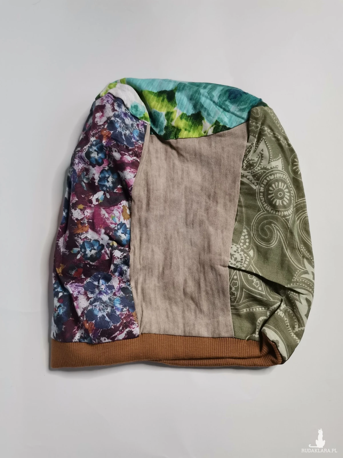 Czapka energetyczna  patchworkowa bardzo  miła, rozmiar uniwersalny, dobra na codzienne noszenie box f1