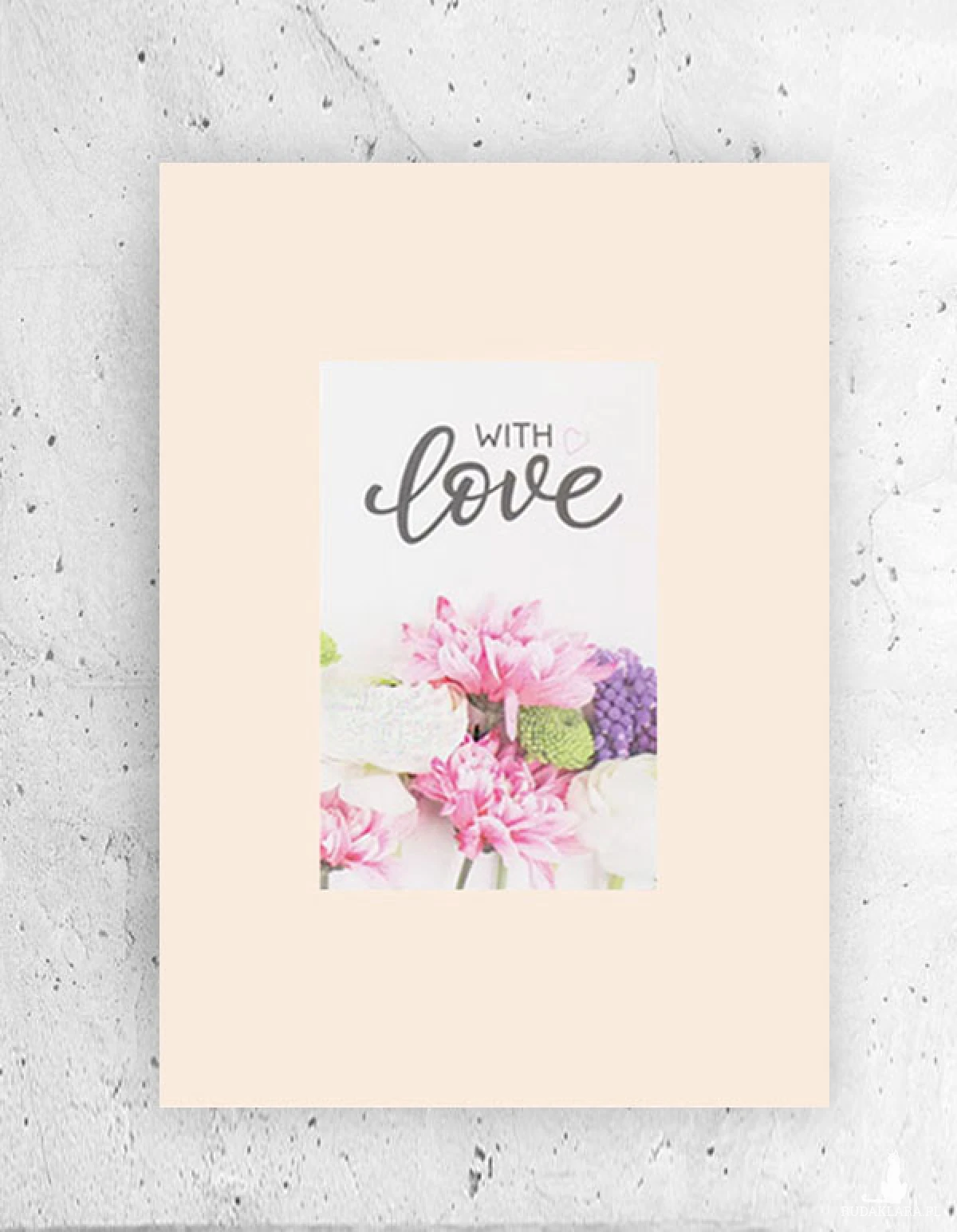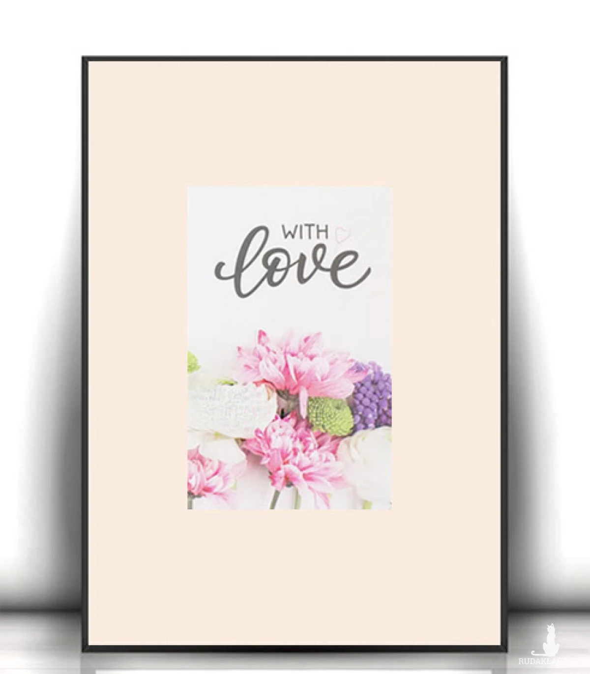 Nowy, pastelowy obrazek na kremowym kartoniku A4. Plakat z napisem "with love" (z miłością). Dekoracja na ścianę do pokoju, do sypialni, jadalni, salonu, przedpokoju, garderoby, kuchni, pokoju dziewczynki lub nastolatki, holu itp. Plakat wystarczy dać do ramki 21x30 cm.. Poster będzie pasował do wnętrz urządzonych w stylu boho, nowoczesnym, skandynawskim, mieszanym.