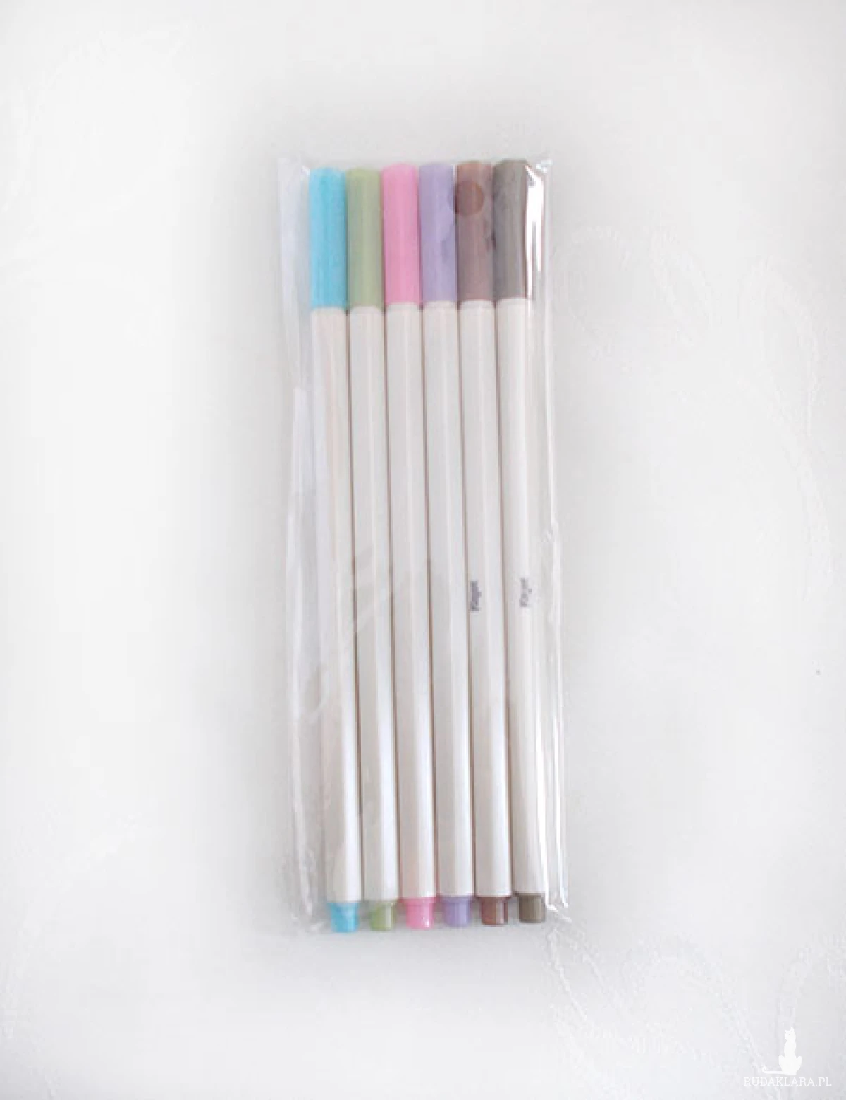 Komplet markerów metalicznych o końcówce pędzelkowej (miękkiej, nie sztywnej). Marka "Kayet".