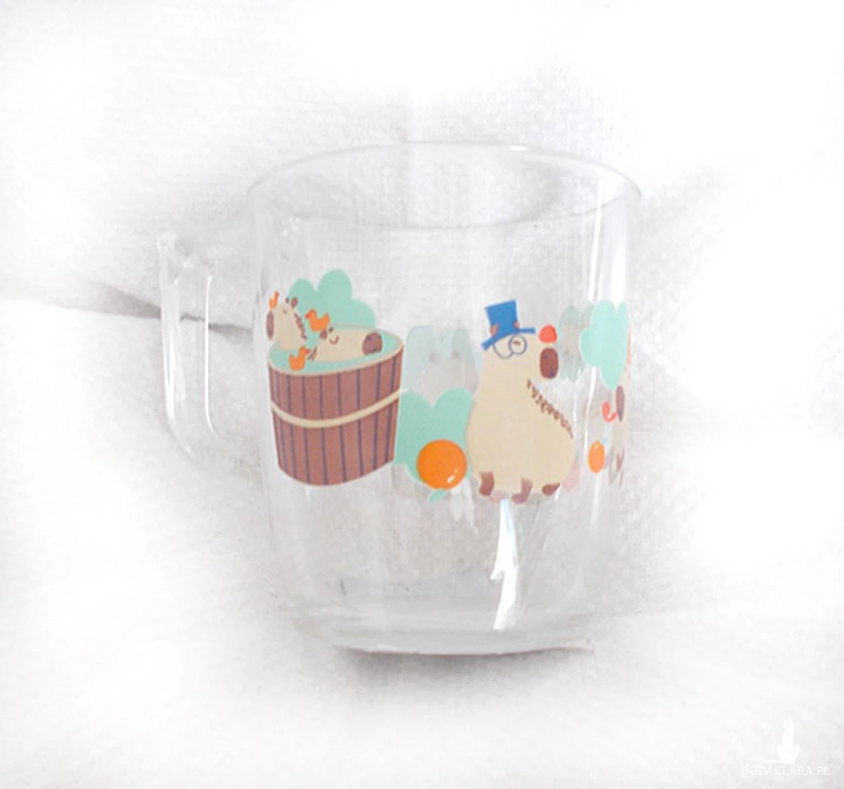 nowa szklanka z kapibarami, kolorowa szklaneczka ze zwierzętami, kapibary kubek szklany, kubeczek z kapibarami, zwierzęta kubek ze szkła, kapibara kubeczek, kapibara szklanka