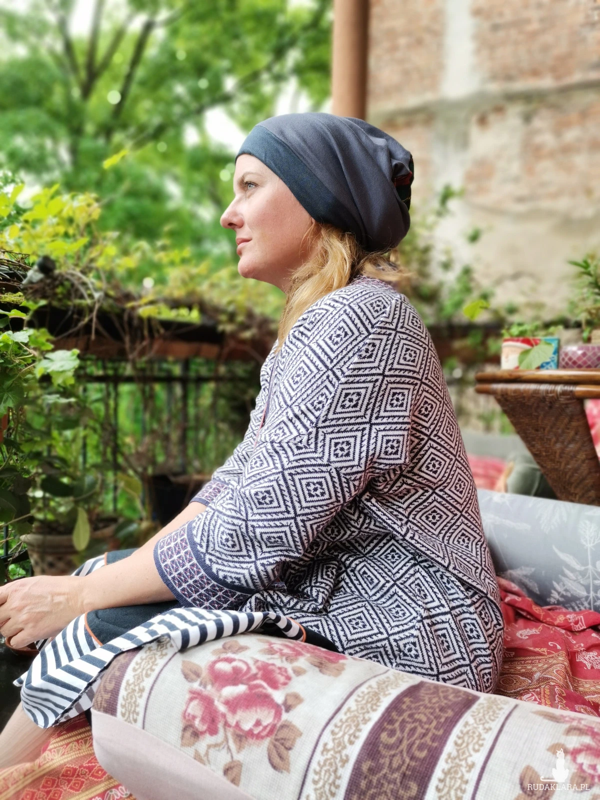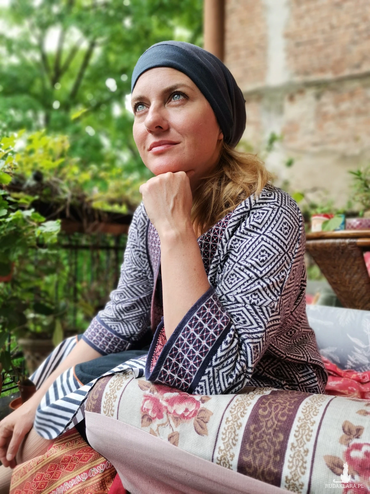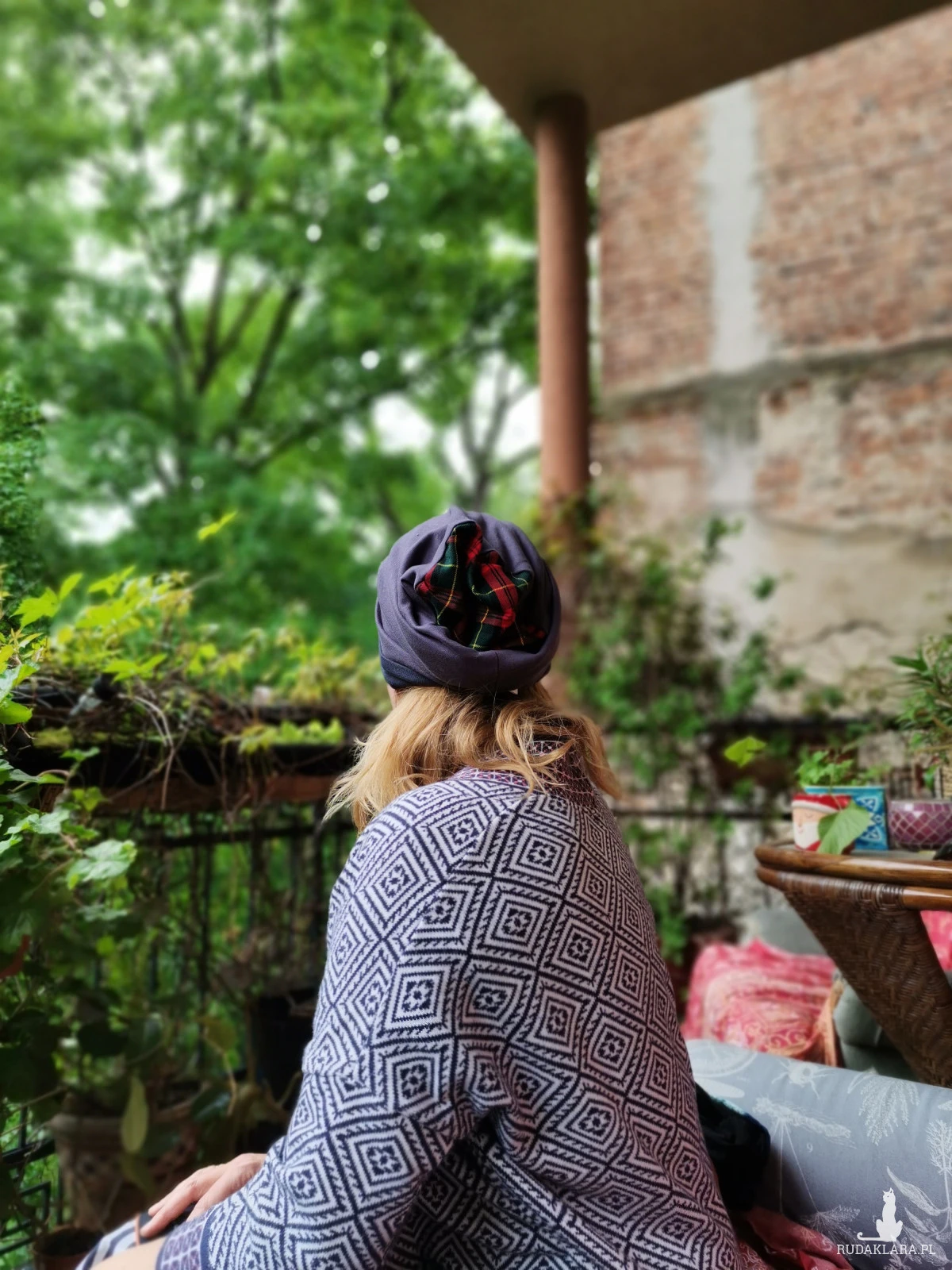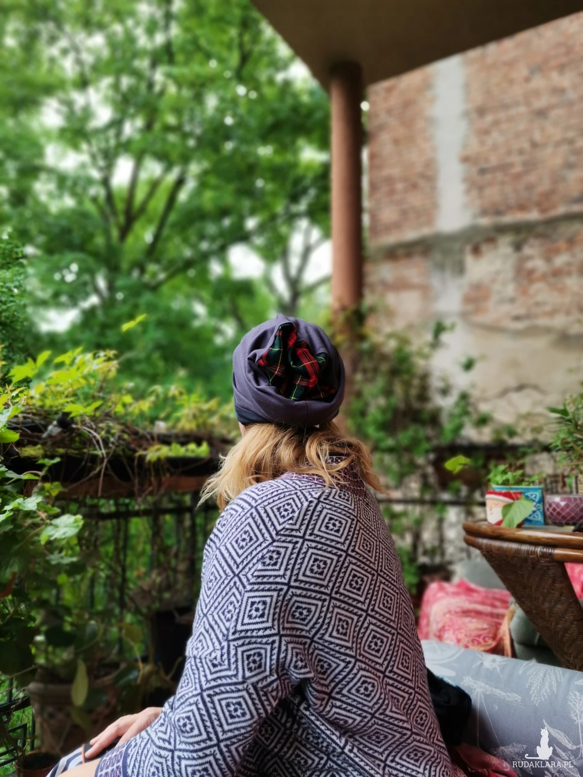 Czapka smerfetka boho na podszewce, rozmiar uniwersalny wiosenna, głębokie kolory, polecam box i1