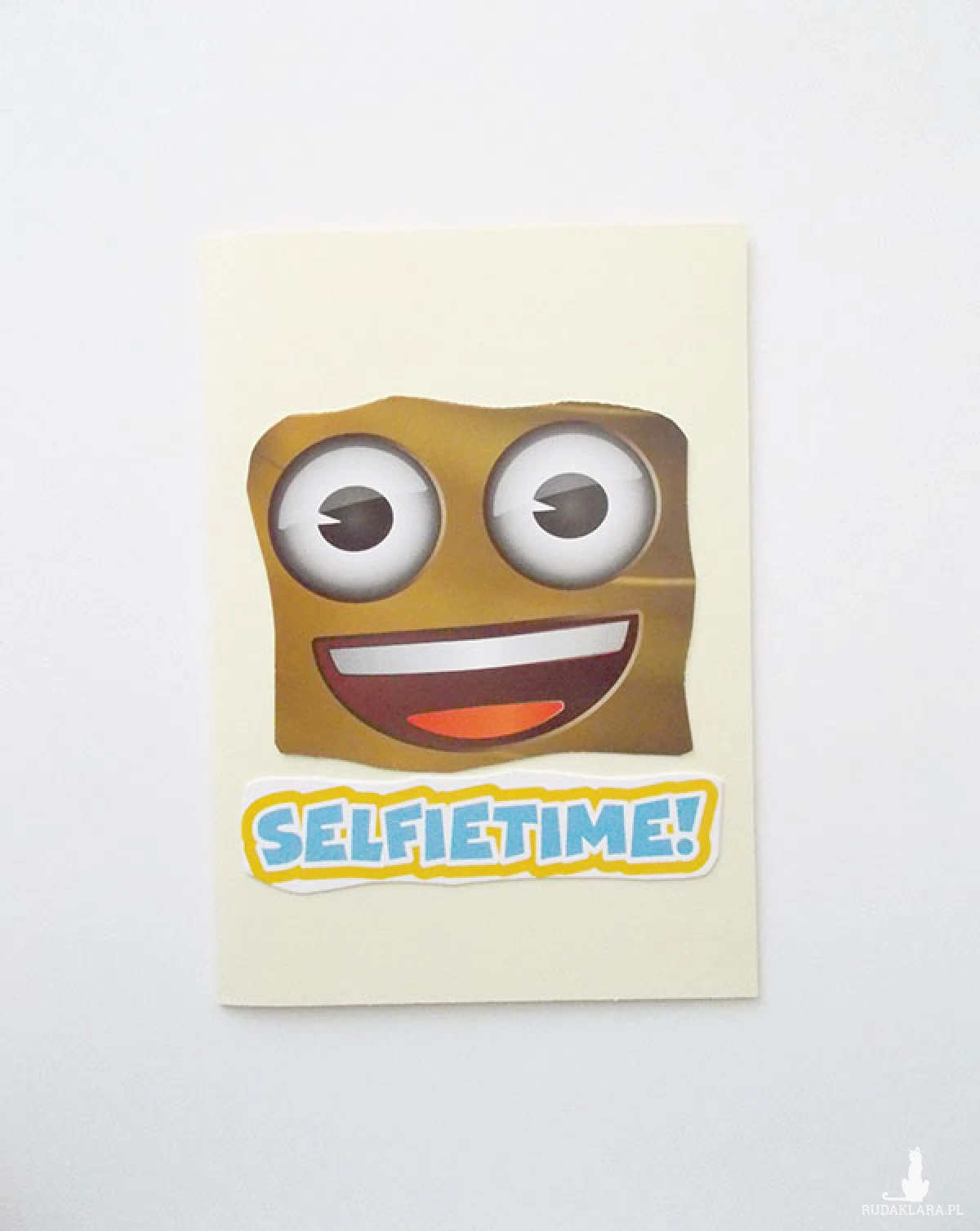 Otwierana, zabawna kartka okolicznościowa, w środku bez tekstu. Dołączona biała koperta.