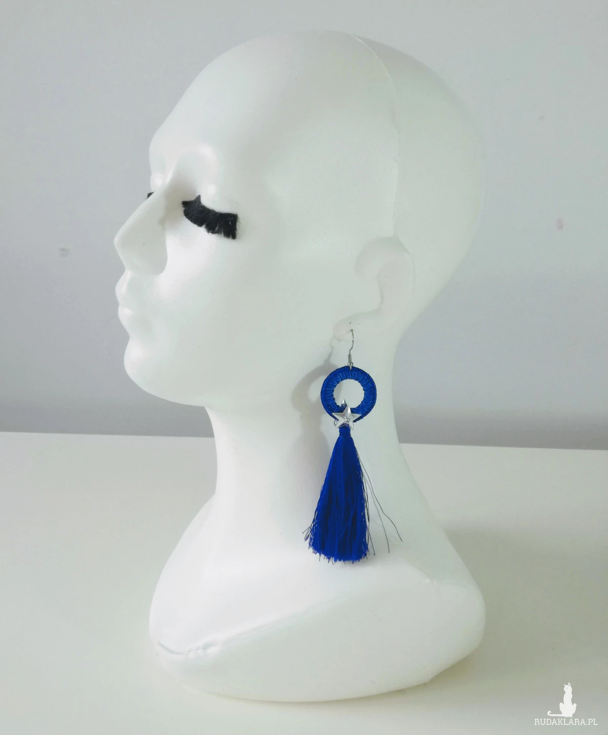 KOLCZYKI ROUND STAR Z GWIAZDKĄ I CHWOSTEM W KOLORZE KOBALTOWYM