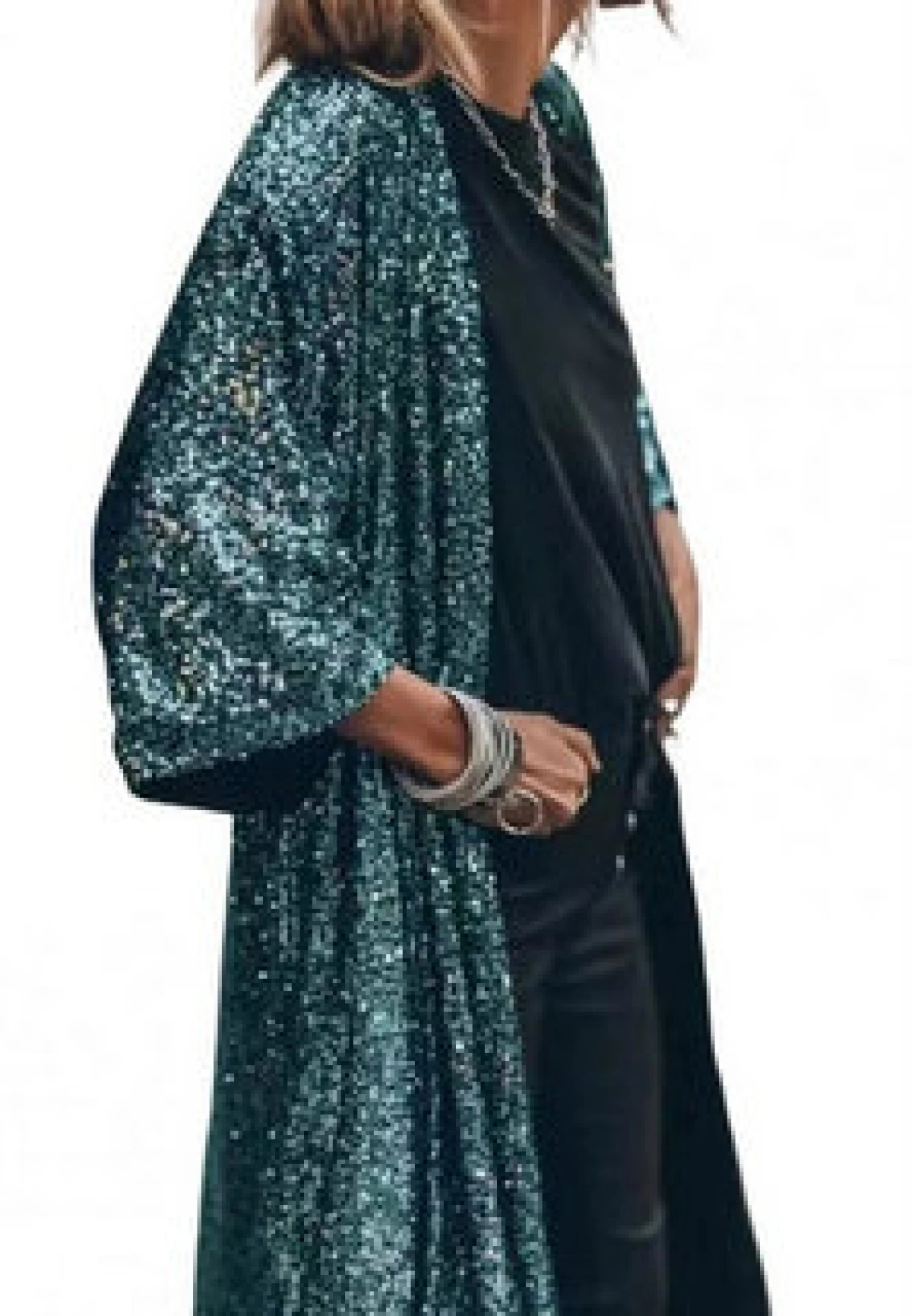 Tunika cekinowa butelkowa zieleń na podszewce, rozmiar M, długośc całosci 118cm, rekaw 37cm, totalnie odjechany ciuch, sprowadzany ze wschodu, pojedyncza sztuka