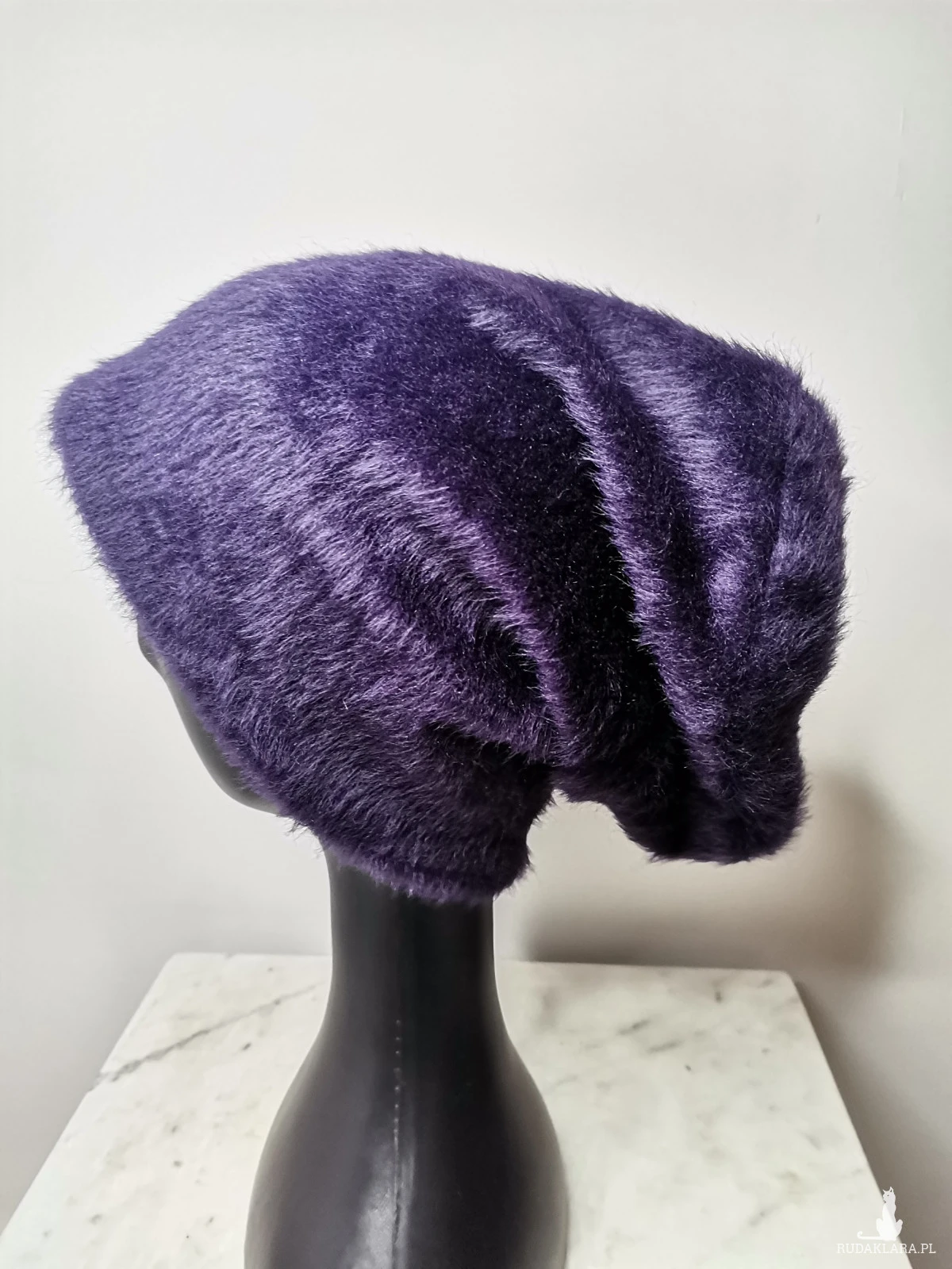Czapka fioletowa sztuczne futerko na podszewce rozmiar uniwersalny box f1