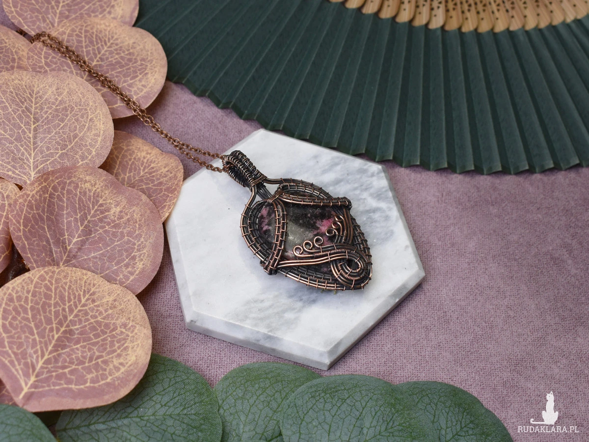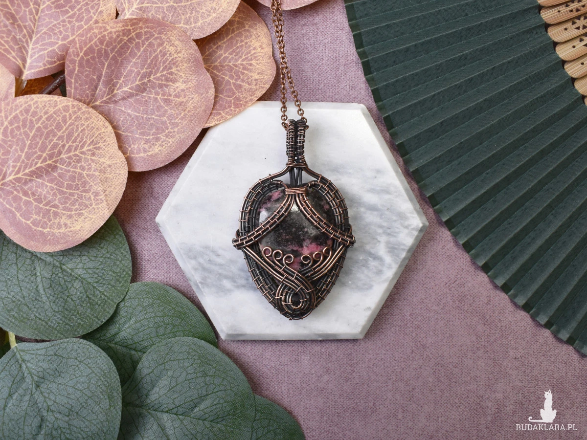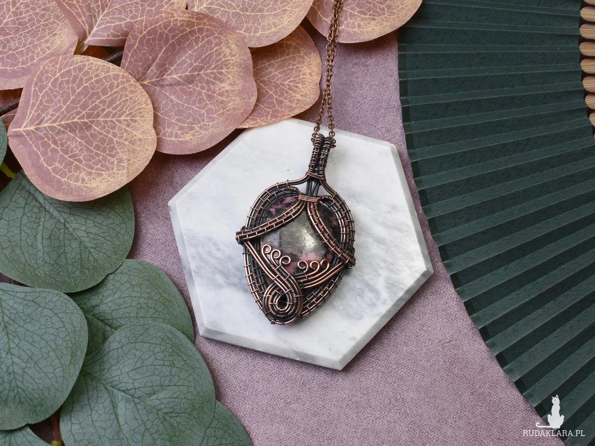 Wisiorek wykonany w technice wire wrapping z rodonitu to unikatowy i elegancki dodatek do biżuterii. Kamień ten, o pięknym różowym odcieniu, jest uważany za kamień miłości i współczucia. Jego właściwości obejmują stymulowanie serca, wzmacnianie uczuć miłości oraz równowagę emocjonalną. Rodonit pomaga w radzeniu sobie z stresem i poprawie relacji interpersonalnych. Dodatkowo, jest kojarzony z rozwojem duchowym i otwieraniem serca na nowe doświadczenia. W połączeniu z misternie wykonanym wire wrappingiem, wisiorek z rodonitu staje się nie tylko ozdobą, lecz także źródłem pozytywnej energii.