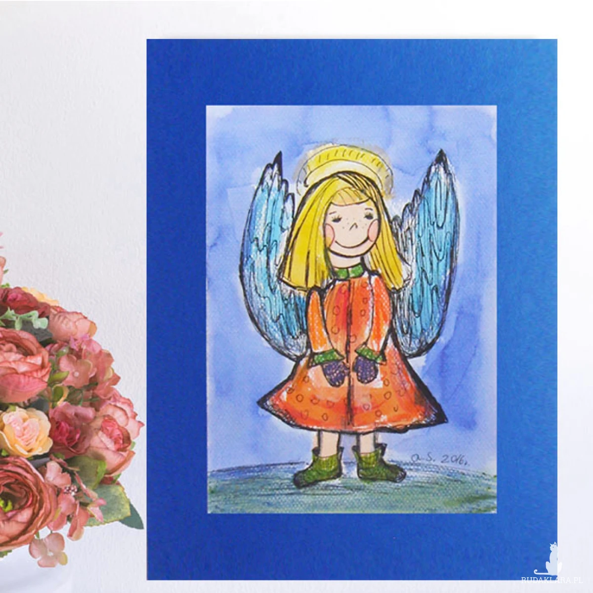 aniołek obrazek A4, akwarela z aniołkiem, aniołek rysunek 21x30, ręcznie malowany obraz z aniołkiem, anioł dekoracja na ścianę