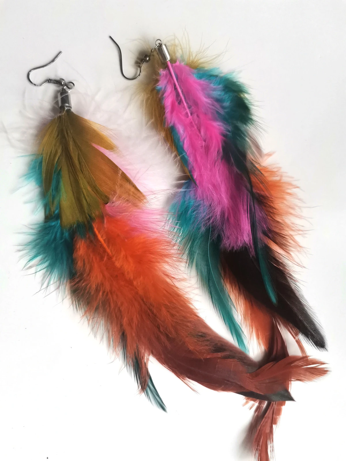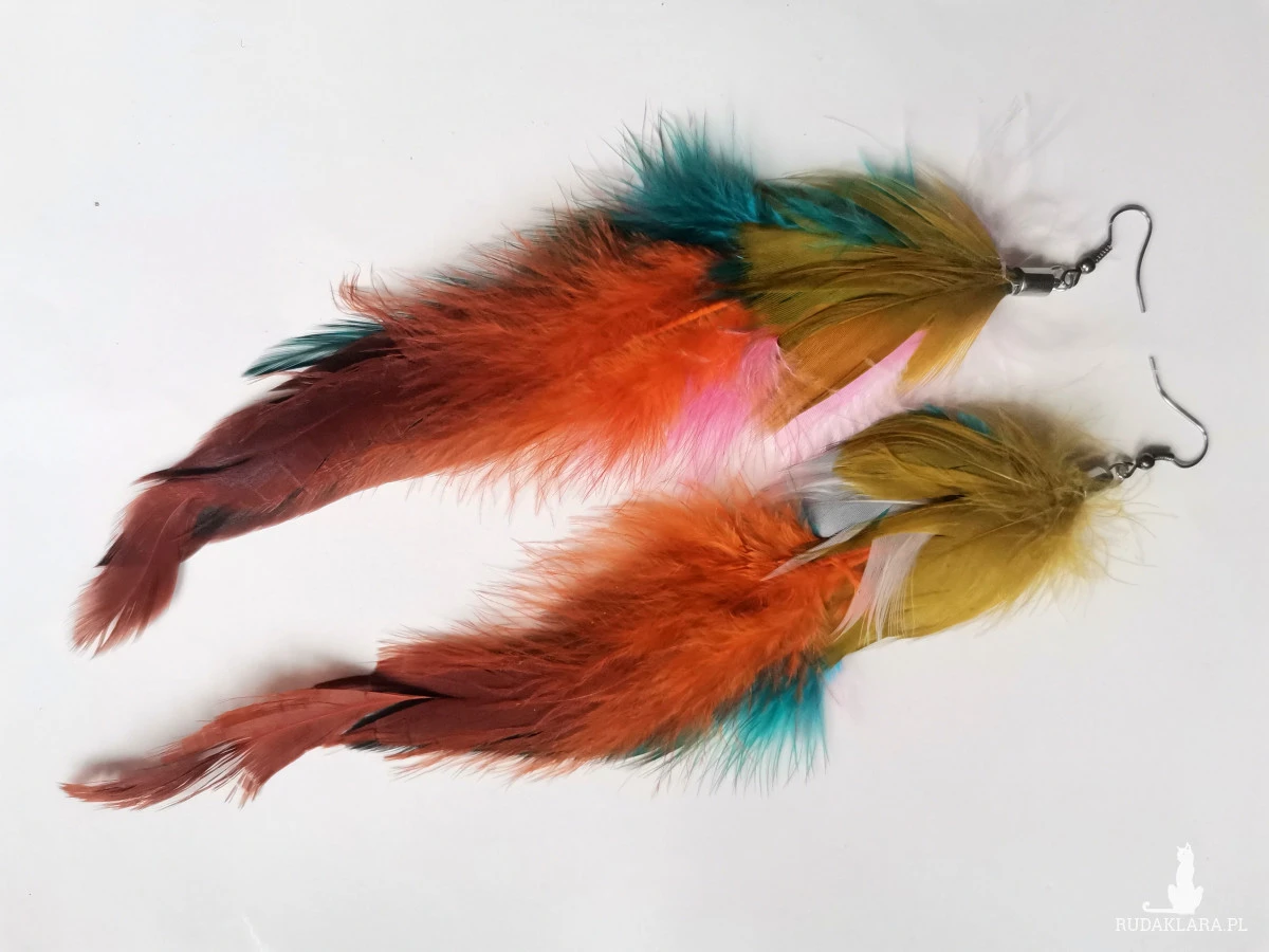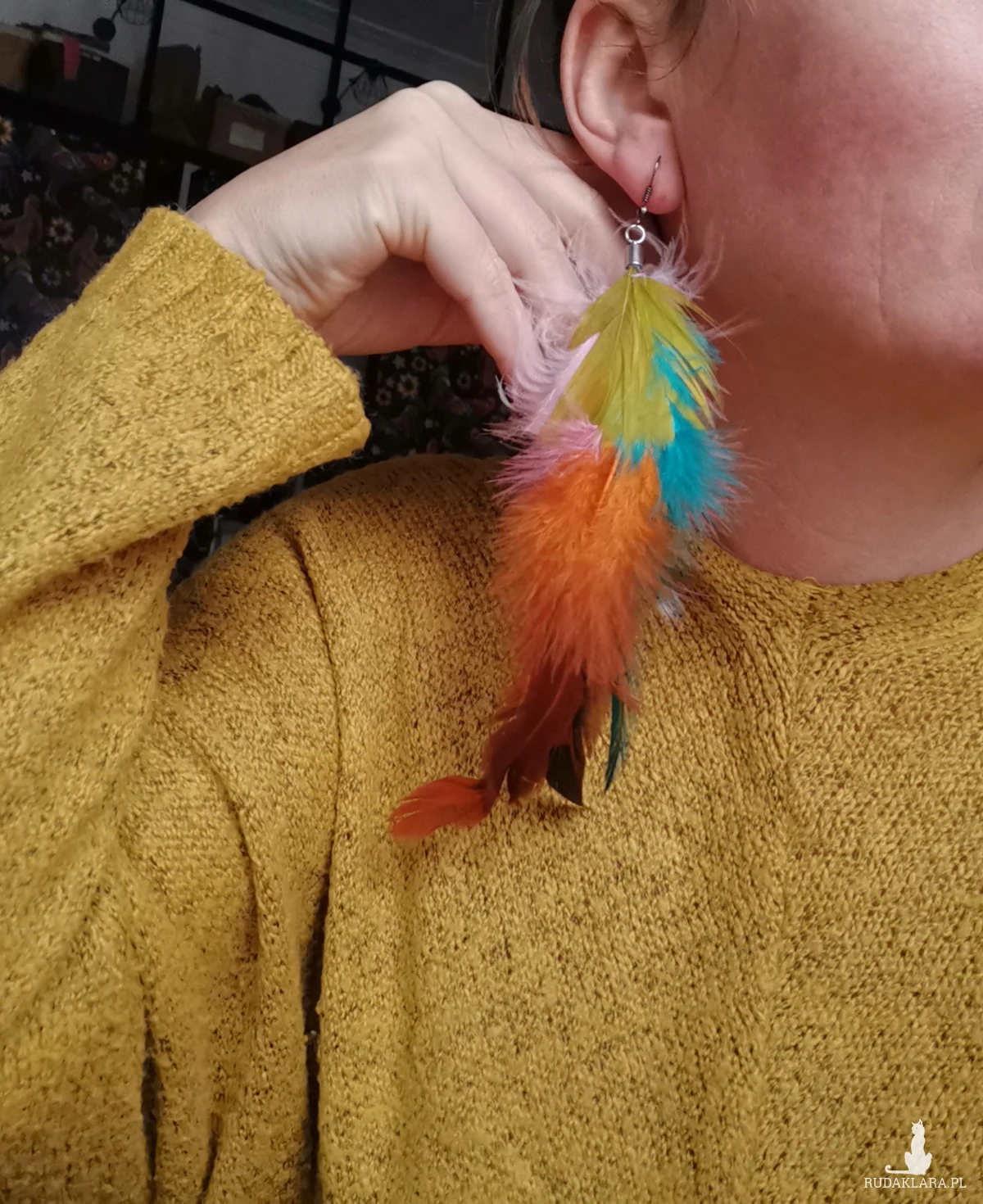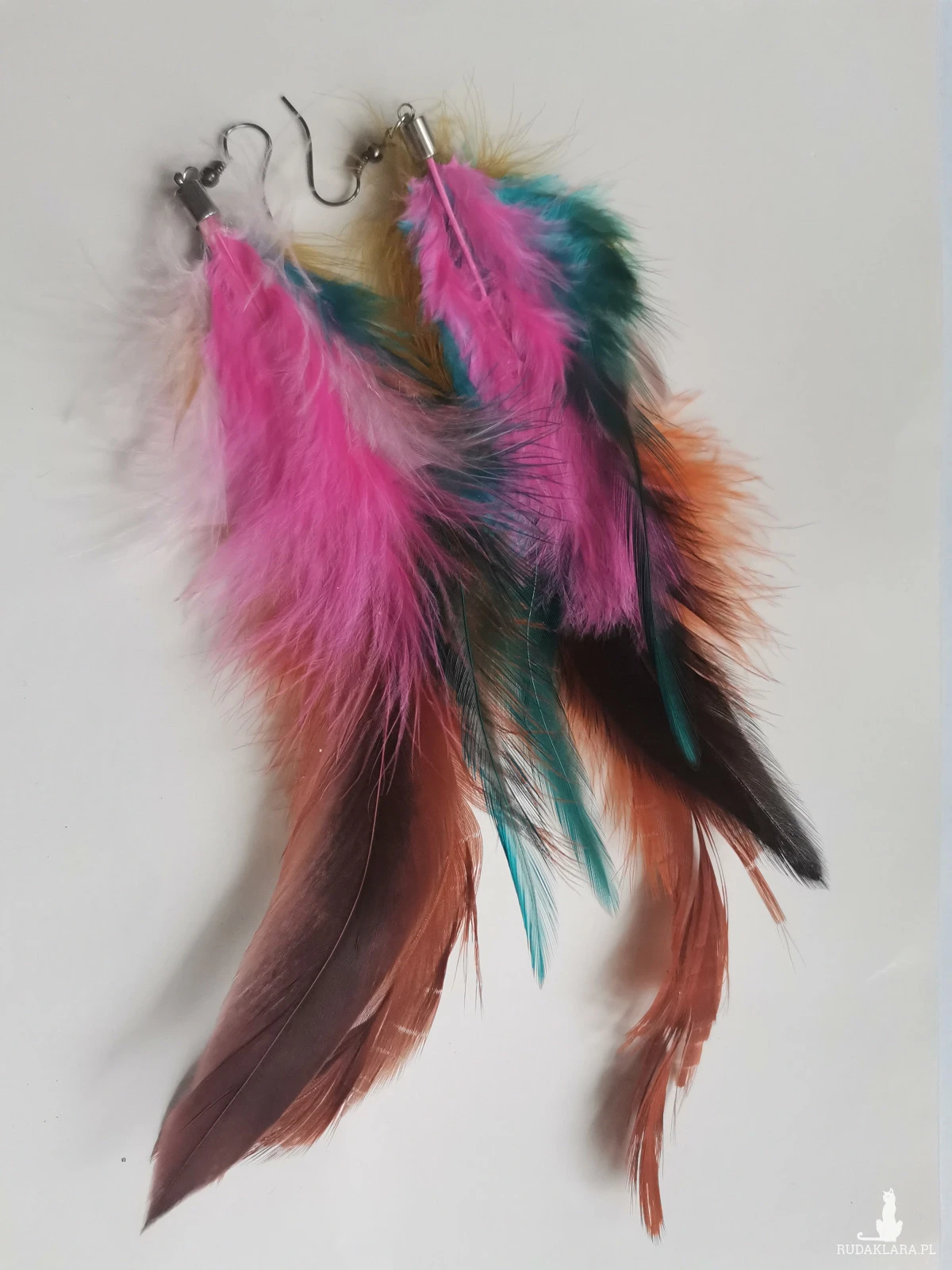 Kolczyki pióra - poezja:wrzucam na bieg wsteczny, mam charakter niebezpieczny-dlugie lekkie polecam