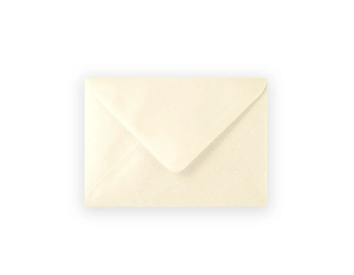 Kremowe koperty C6 (11,4 x 16,2 cm). Gramatura 120 gsm. Eleganckie koperty do zaproszeń ślubnych, na chrzest, roczek, komunię, rocznicę ślubu, na 18-stkę, do podziękowań dla gości lub kartek okolicznościowych..