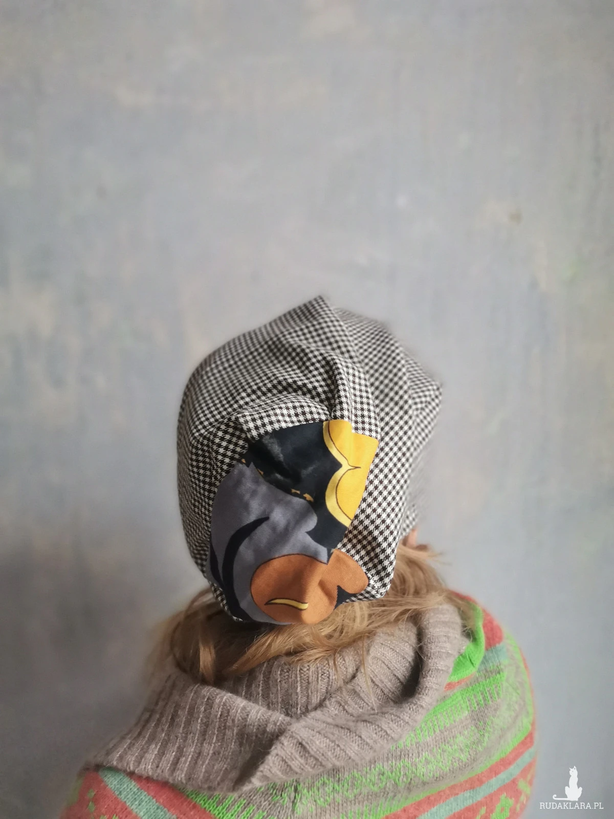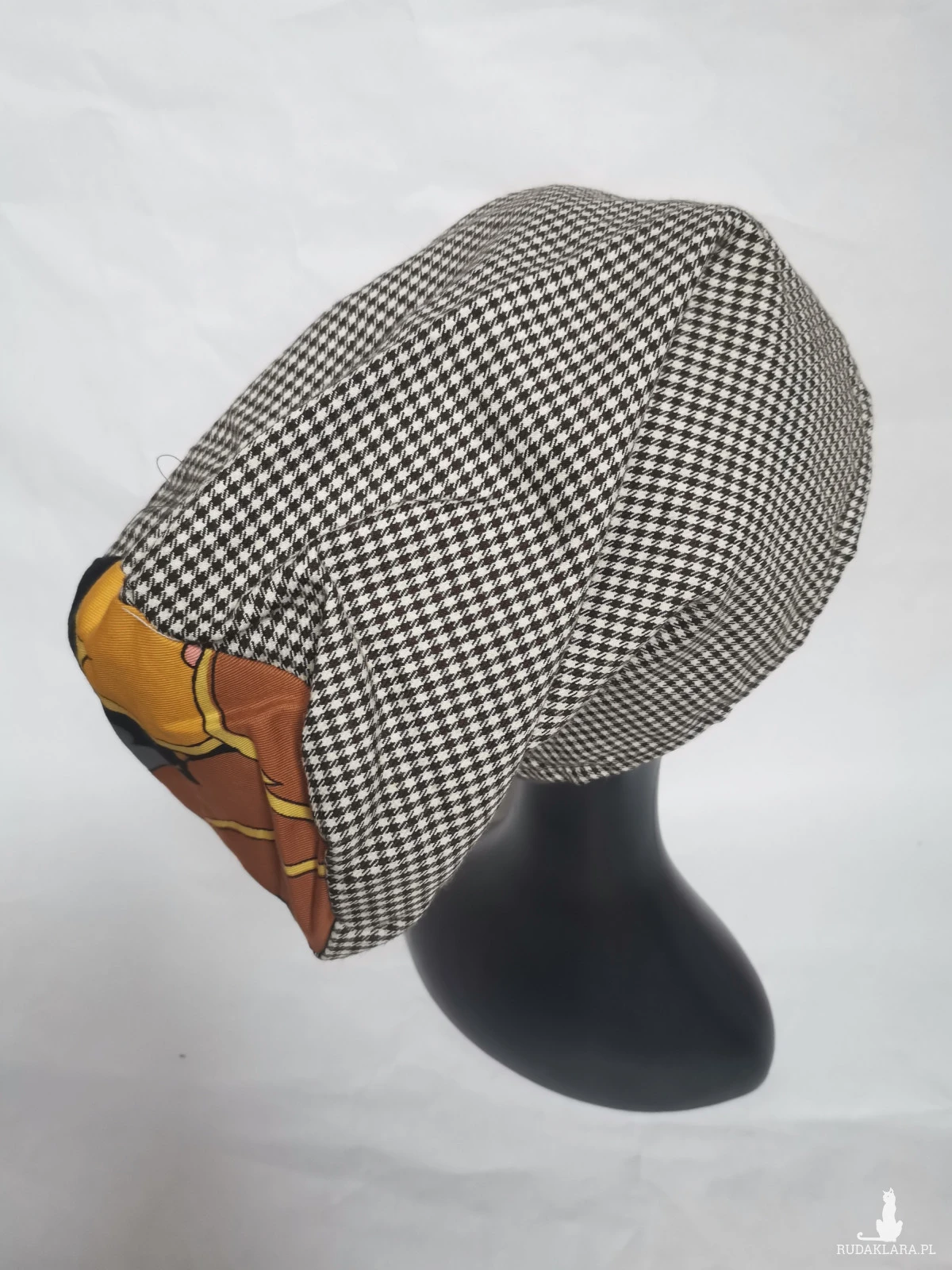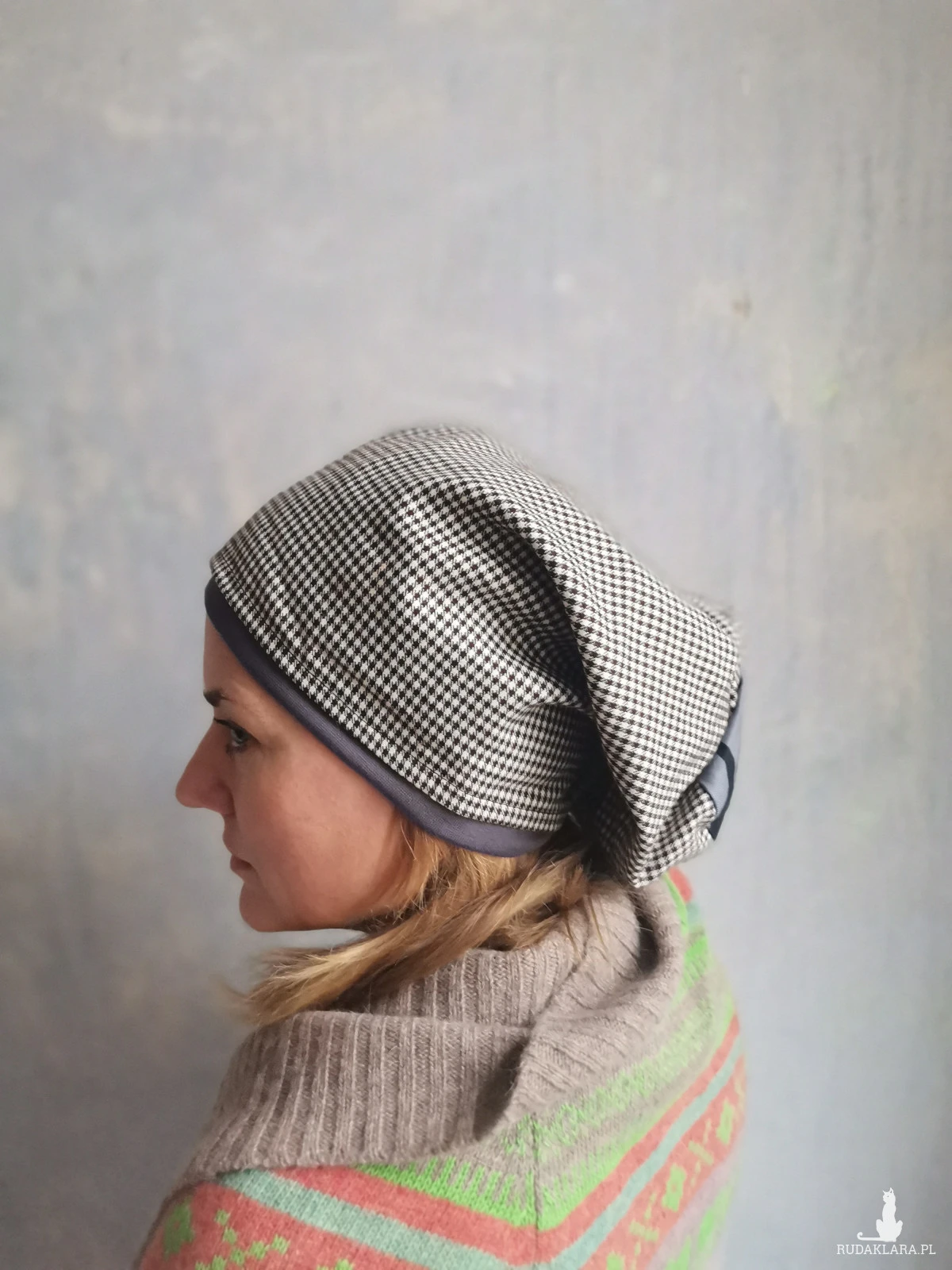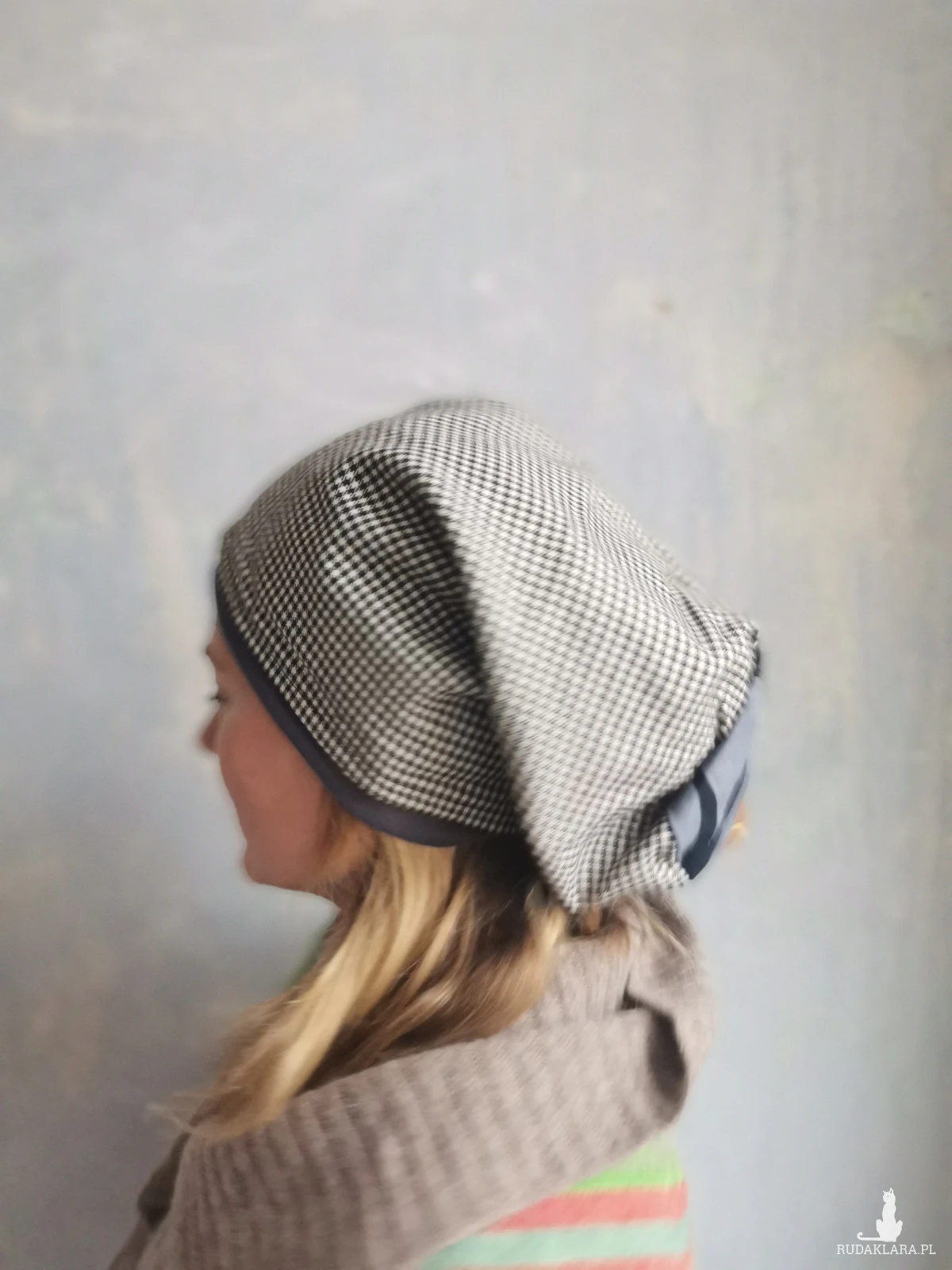Czapka w kratke materiałowa smerfetka damska na podszewce góra rozmiar M 58-59cm box box b1