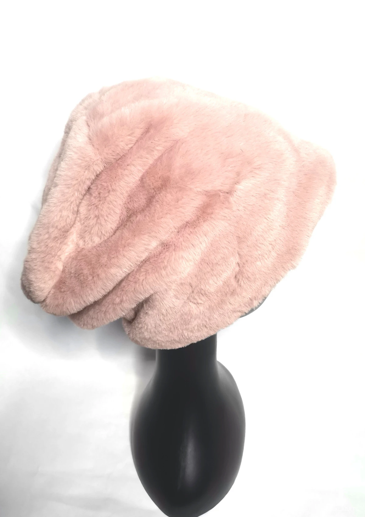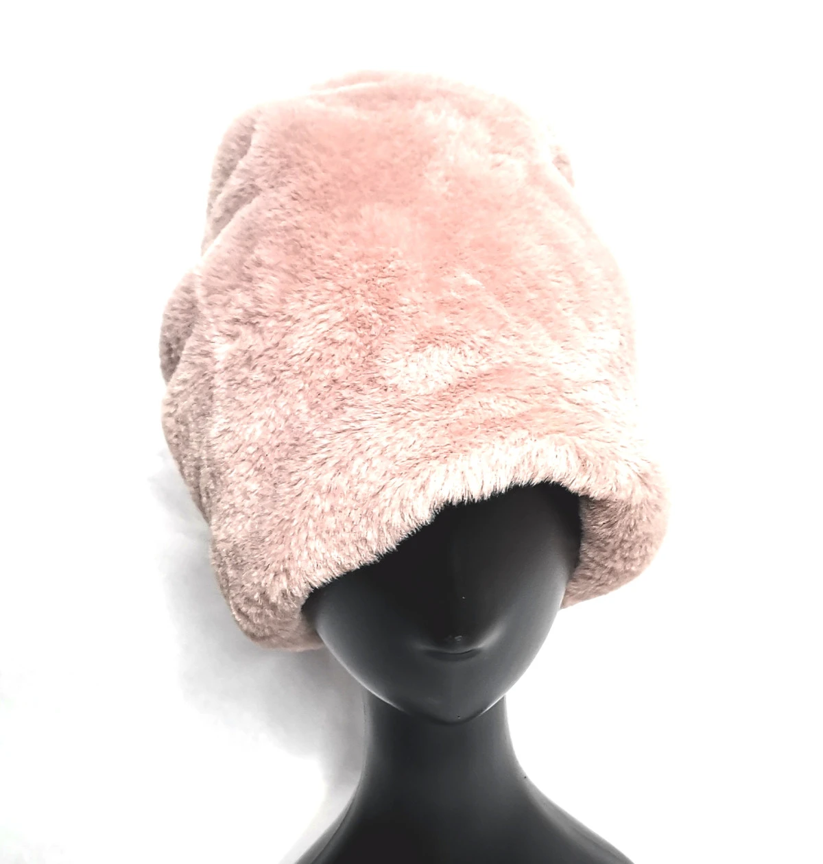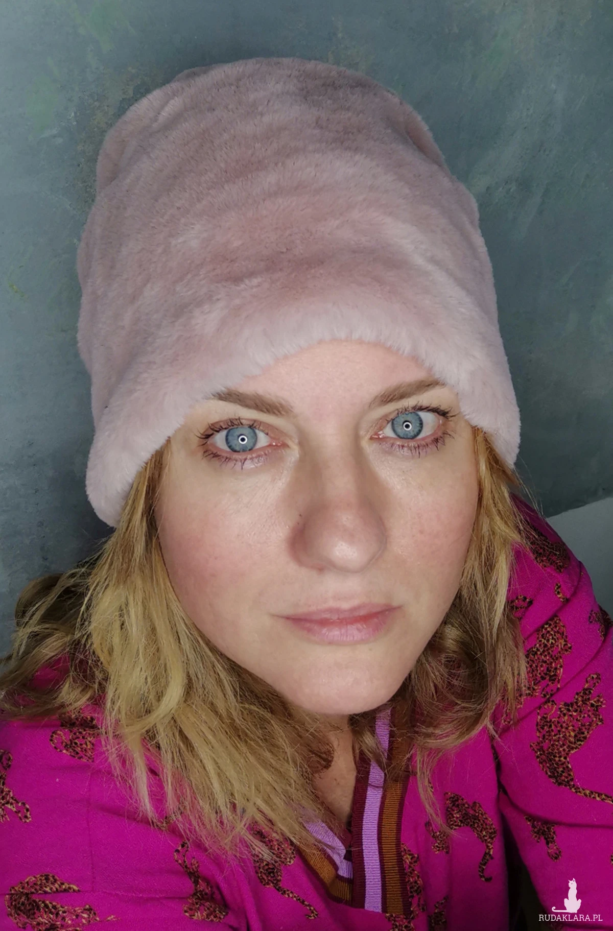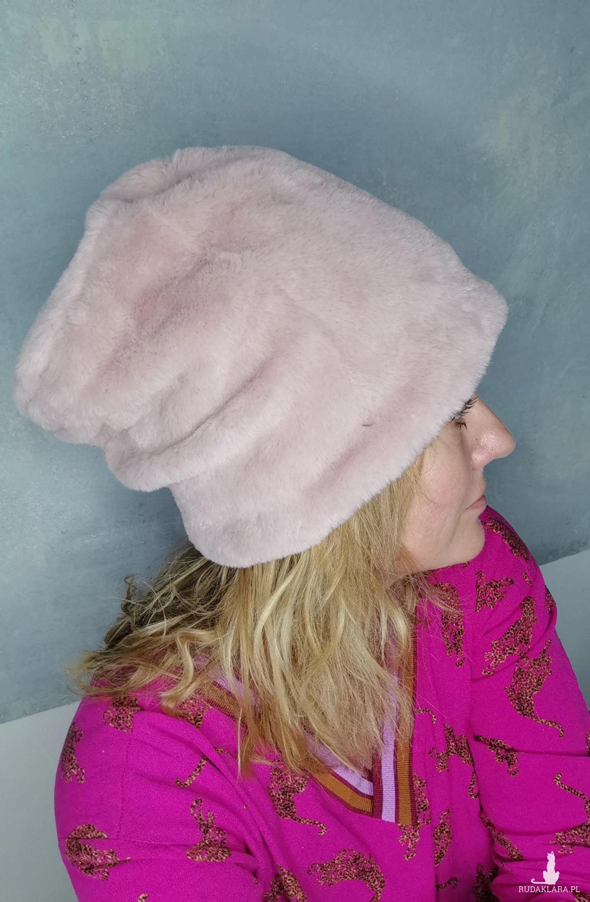 Czapka futrzana róż pudrowy  na podszewce,  uniwersalna miękka  czapa, bardzo ciepla, polecam box 11