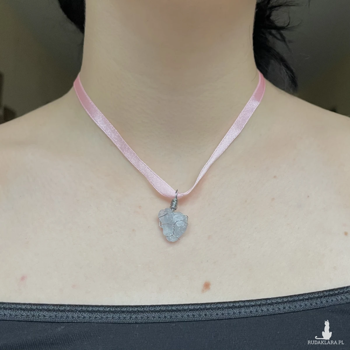 Naszyjnik ze stali chirurgicznej i celestynu do wyboru na łańcuszku, rzemyku lub różowej wstążce (proszę napisać w dodatkowych informacjach do zamówienia na czym ma być zawieszka) :))
