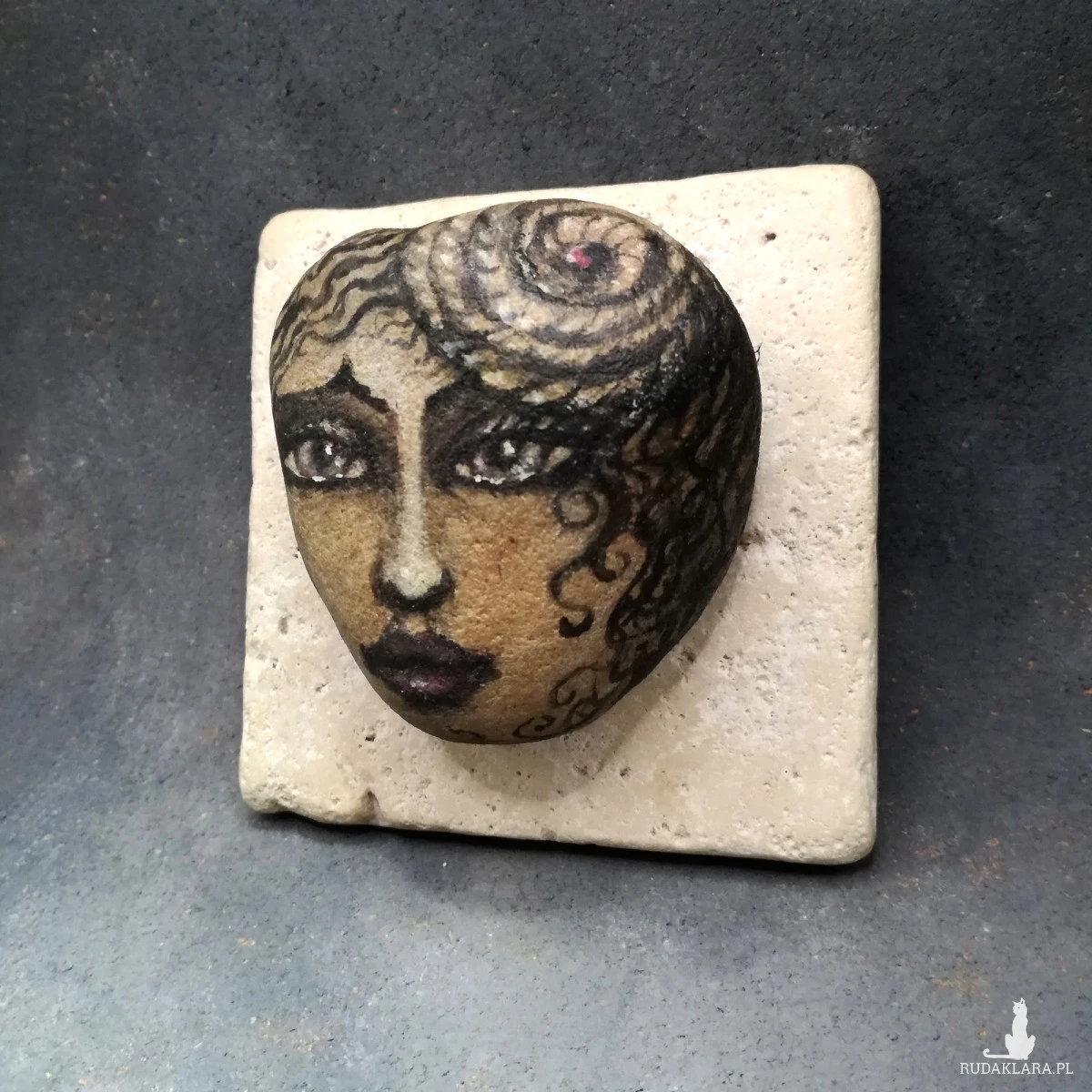 Obraz - fresk oryginał malowany techniką olejną na kamieniu naturalnym, rozmiar oprawy 10 cm x 10 cm