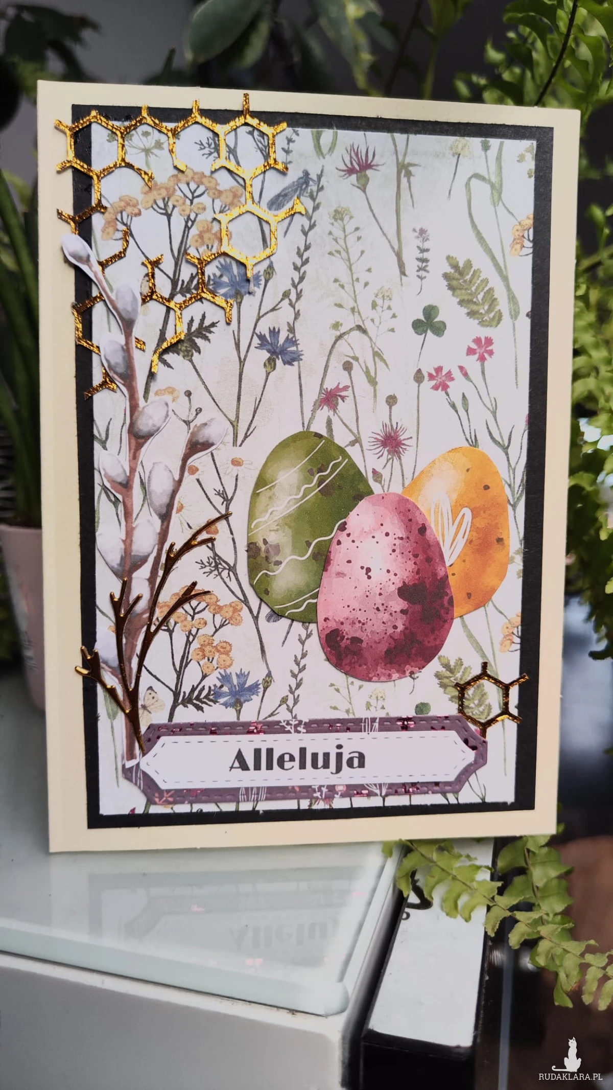 Kartka świąteczna ręcznie wykonana handmade na Wielkanoc, w środku jest miejsce na wypisanie życzeń odręcznie,