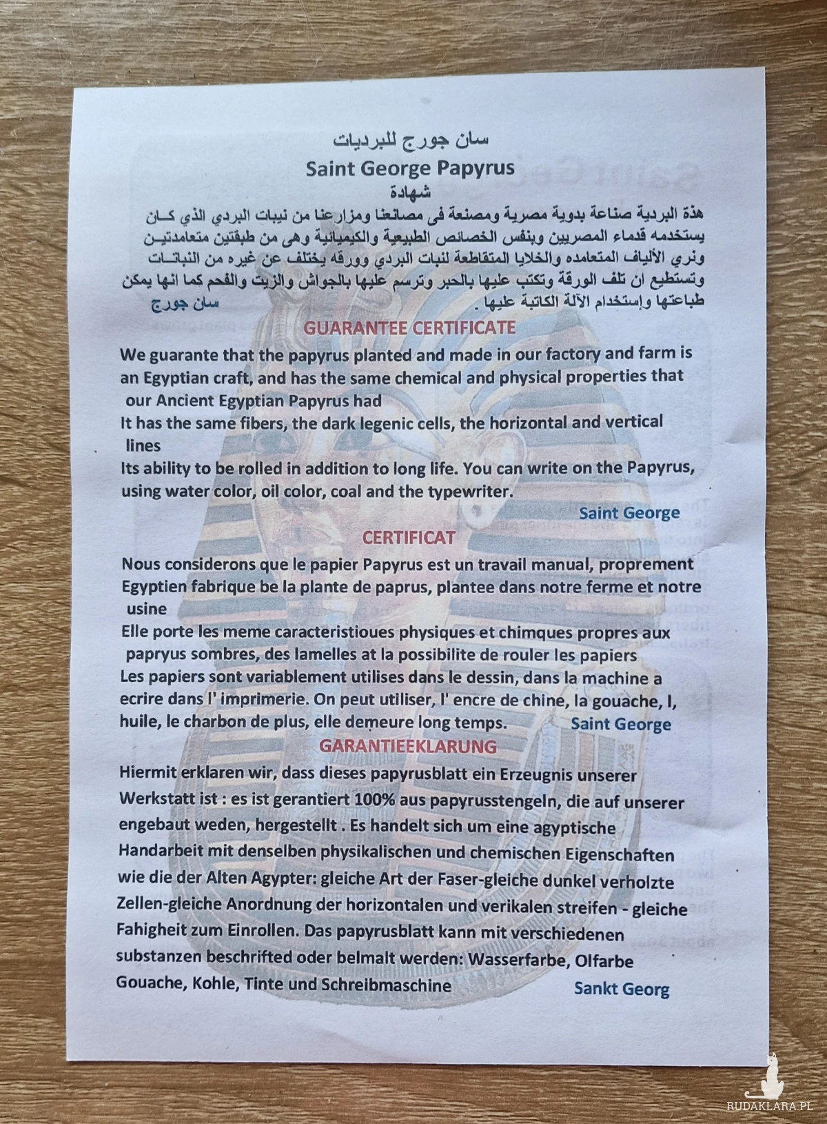 Do każdego obrazu załączam certyfikat potwierdzający oryginalność papirusu.