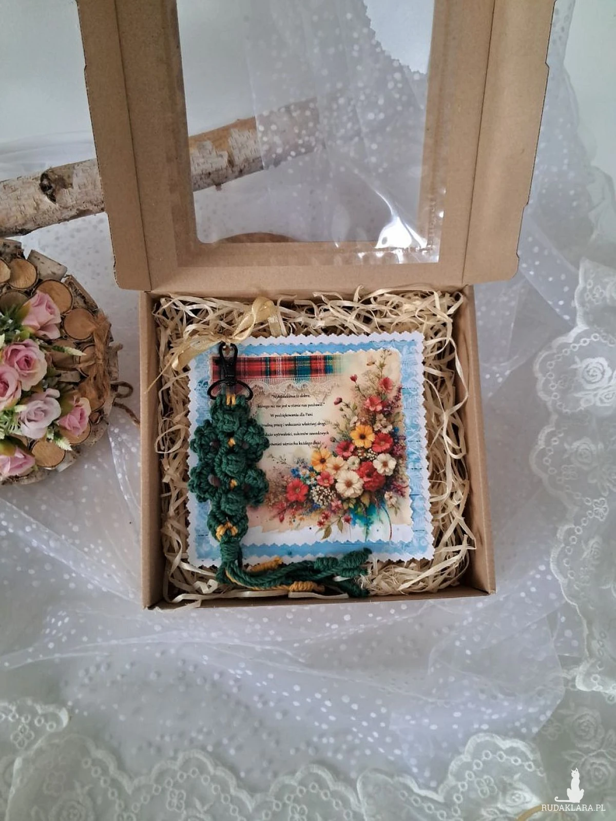 A oto kolejny brelok do kluczy wykonany metodą makramy;) Kolorystyka butelkowa zieleń z mini dekorem koloru musztardowego:) Niezbędny szczególnie w kobiecej torbie,ponieważ przez jego wymiar w ułamku sekundy odnajdziecie swoje klucze;)