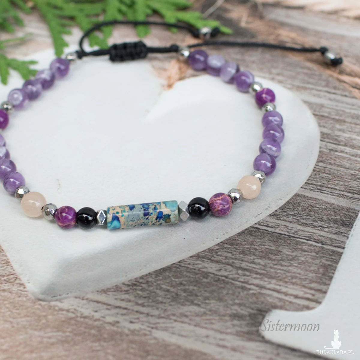 W roli głównej ametyst. Jak żaden inny kamień sprzyja wyciszeniu i odpoczynkowi, sprowadza dobre sny. Ametyst nazywany jest kamieniem harmonii i relaksu. Pomaga radzić sobie w stresujących sytuacjach, przywraca równowagę, zapewnia spokojny sen.Onyks chroni przed negatywnymi myślami i złą energią.