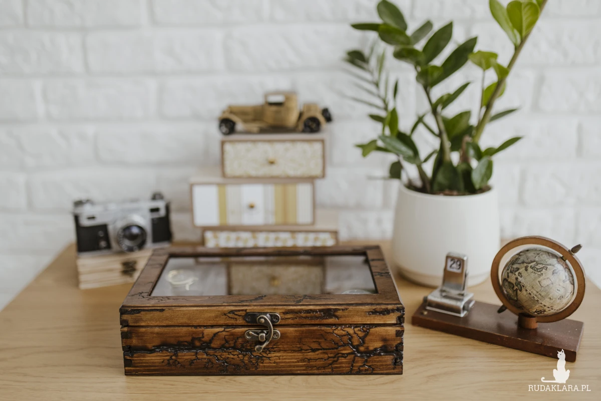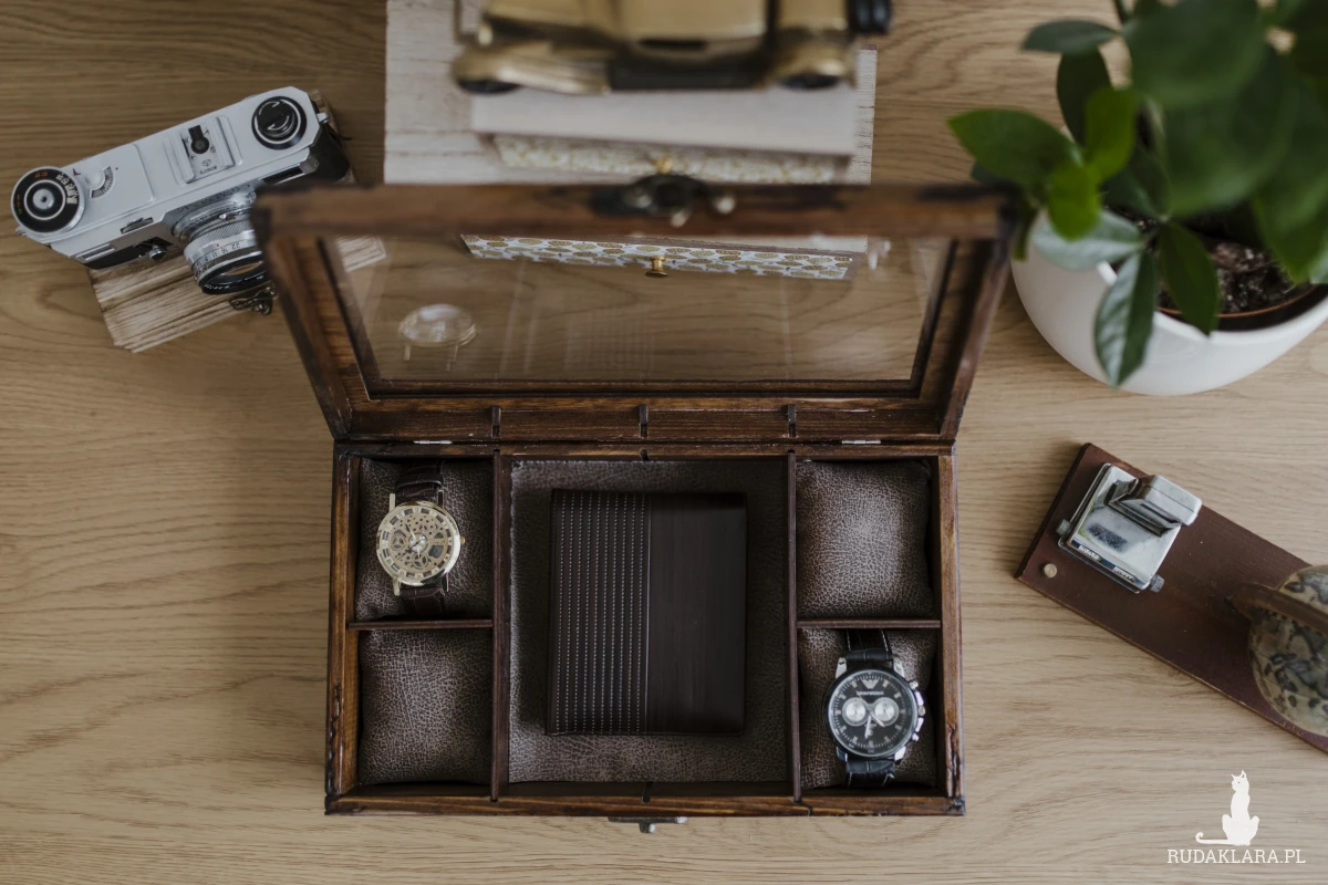 Pudełko na zegarki, bransoletki i łańcuszki, Drewniane na zegarki, bransoletki i łańcuszki