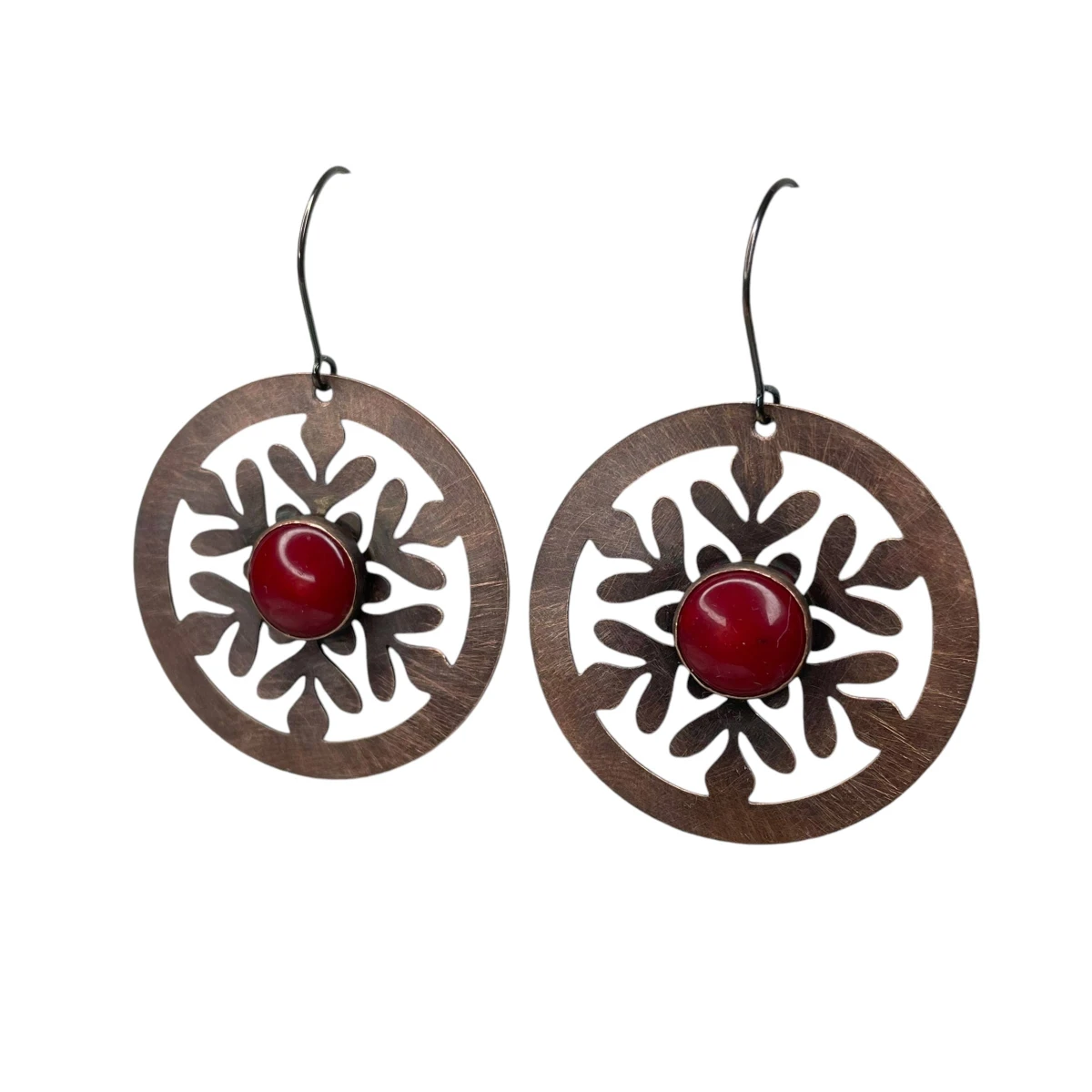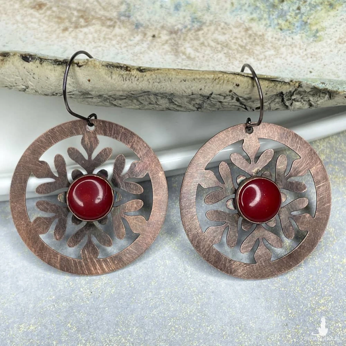 Te miedziane kolczyki to doskonała propozycja dla miłośniczek zimy i unikalnej biżuterii. Ażurowy wzór śnieżynki zamknięty w miedzianym okręgu symbolizuje piękno mroźnych dni, tworząc elegancką ozdobę, która doskonale sprawdzi się jako wyrazisty akcent w zimowych stylizacjach. To biżuteria dla tych, którzy chcą zachować odrobinę zimowej magii na co dzień.