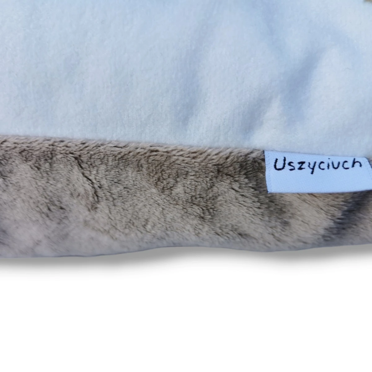 Stylowa ozdobna poduszka uszyta z mikrofazy z nastrojowym świątecznym wzorem i z mięciutkiego polaru minky w pasującym kolorze.