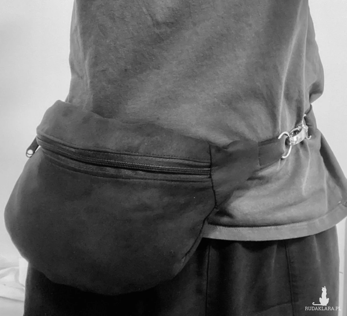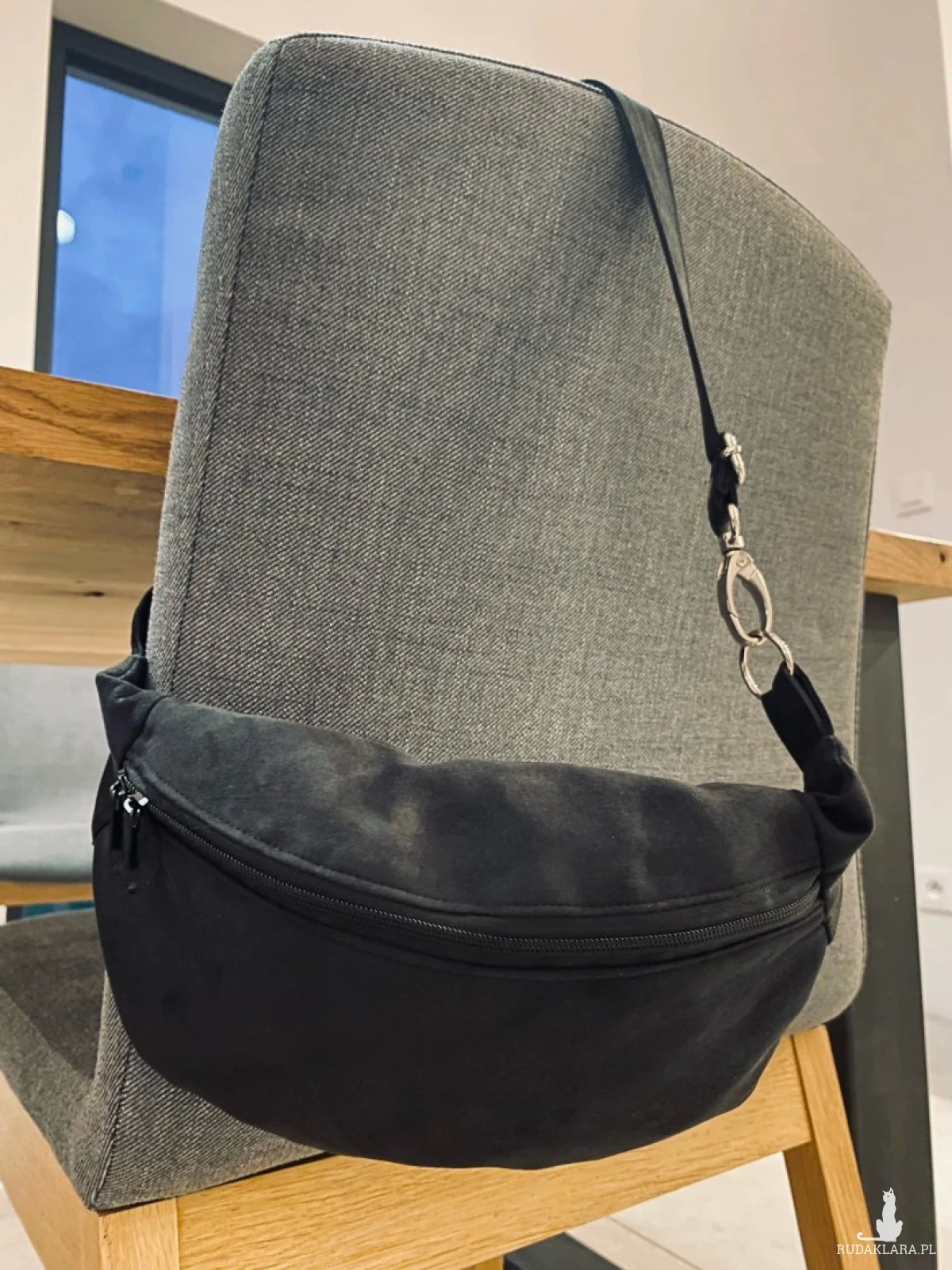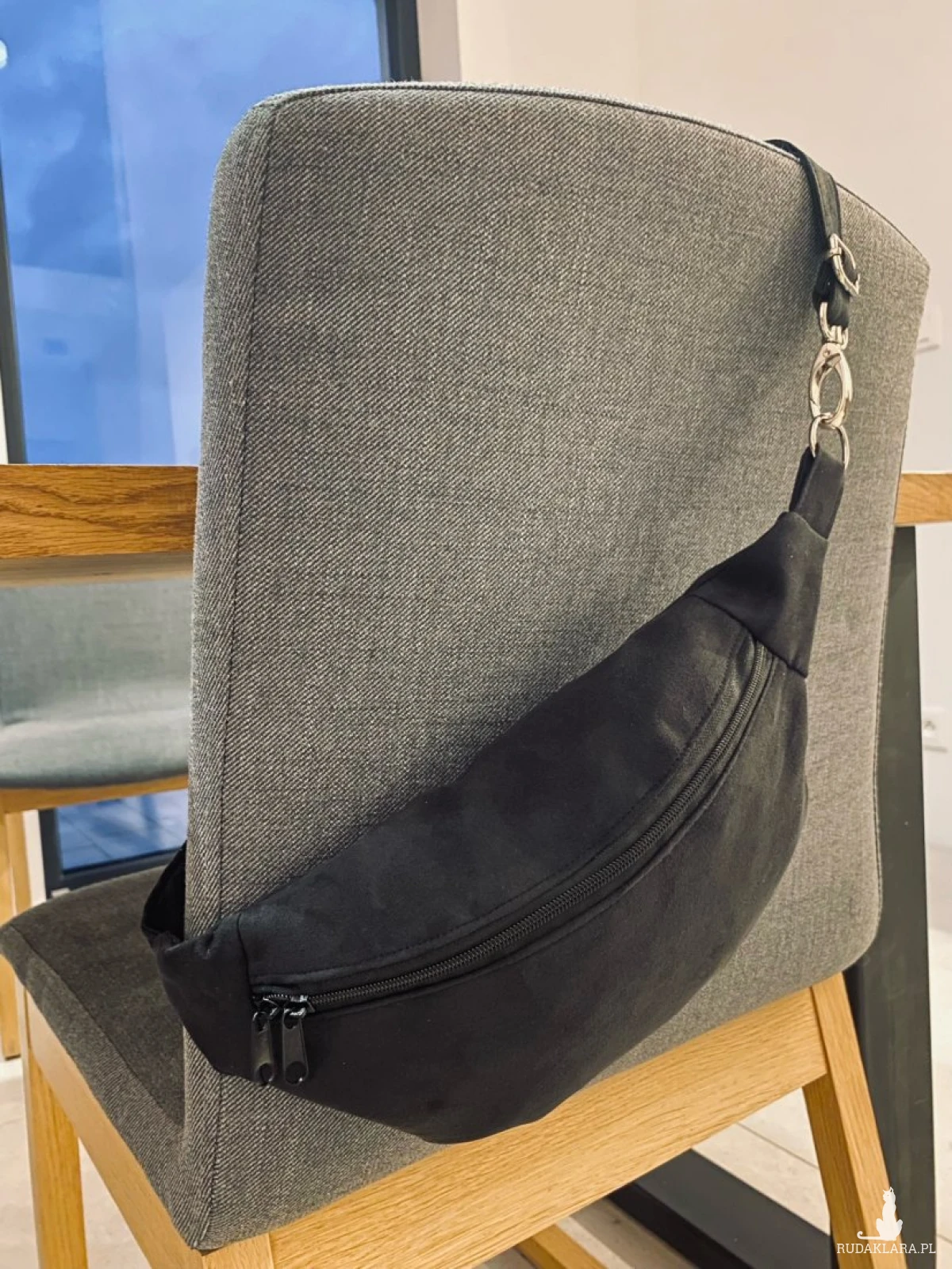 ednokomorowa nerka (saszetka) wykonana z alcantry (syntetycznego zamszu).