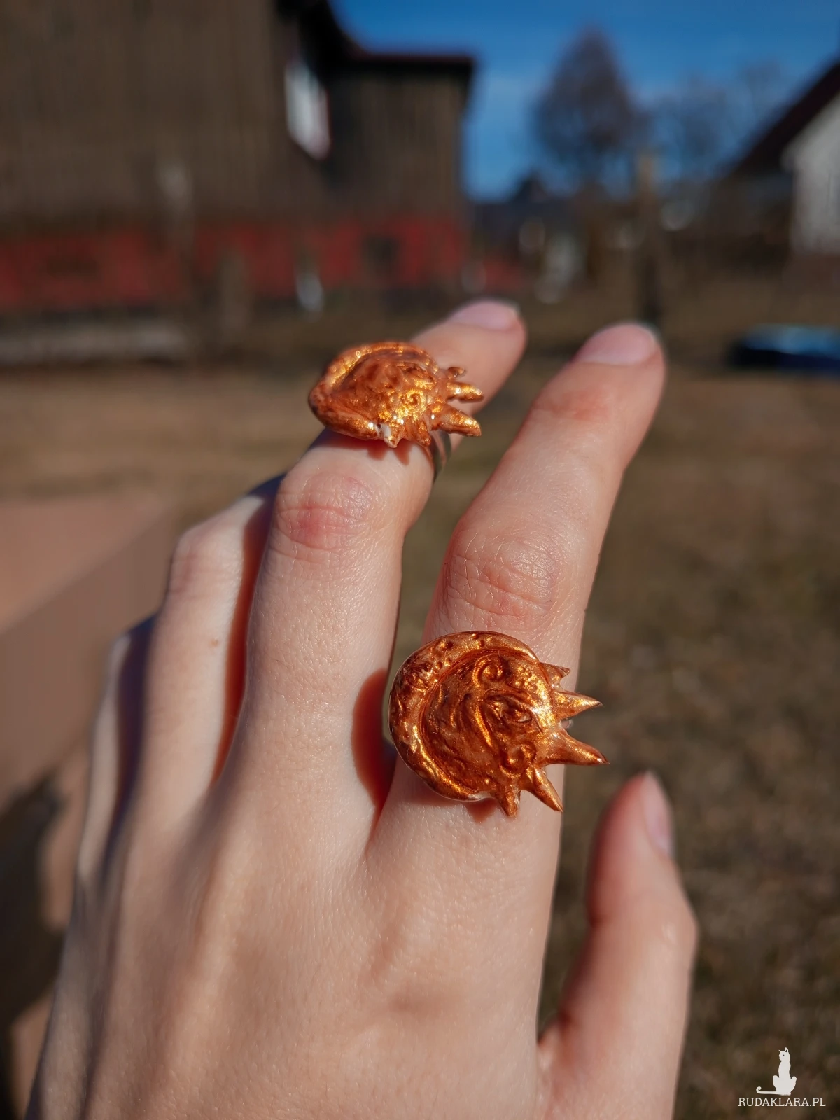 ręcznie rzeźbione pierścionki księzycem- słońcem osadzone na mosiężnym pierścieniu