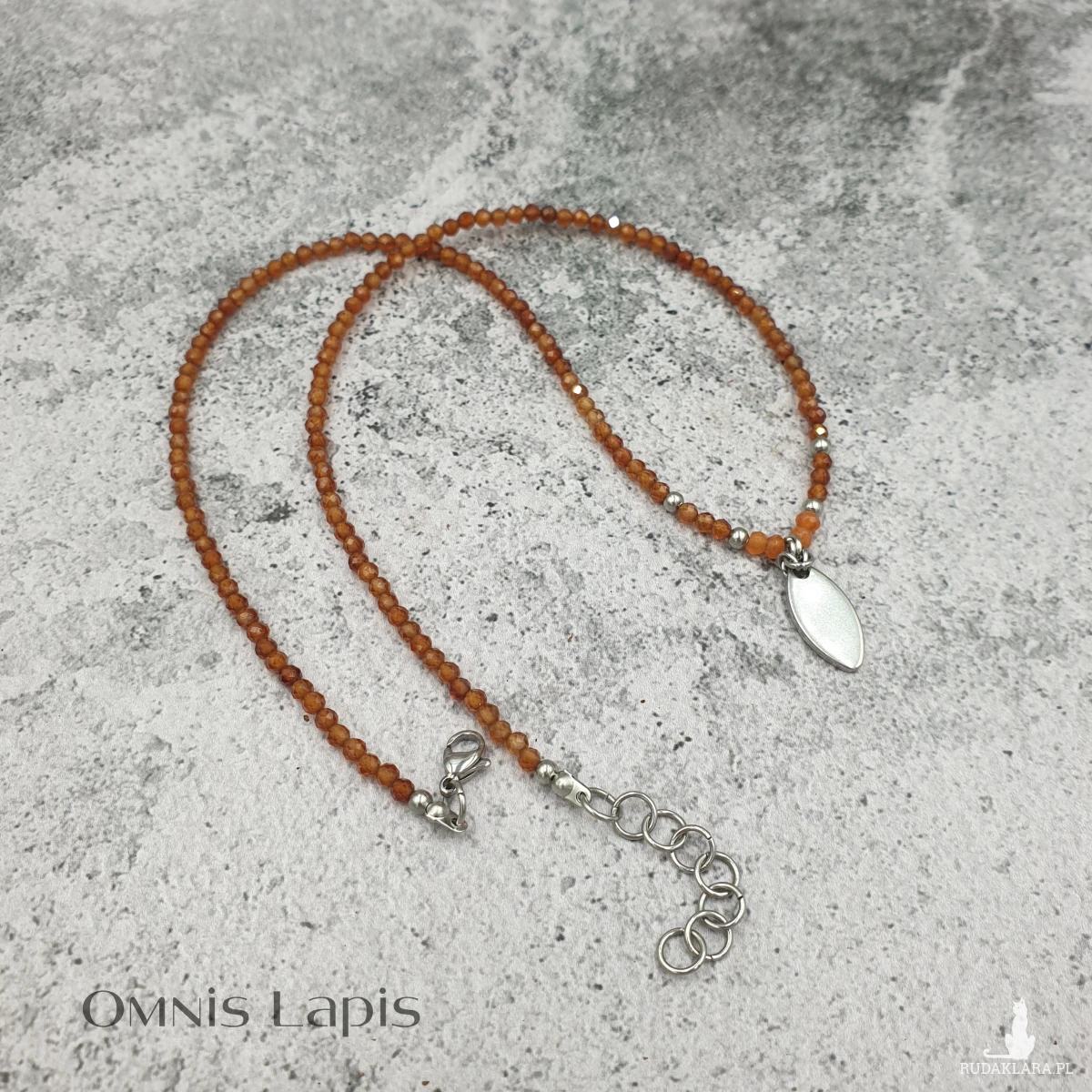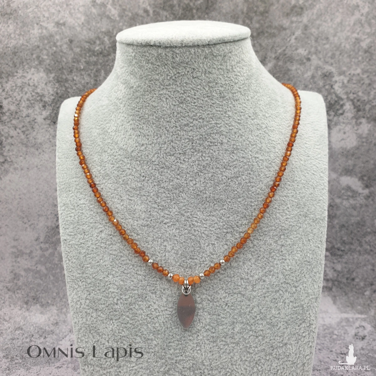 Delikatny naszyjnik w kolorach miodowego brązu. Wykonałam go z kuleczek naturalnego granatu hessonit. Ozdobiłam zawieszką z elementem chainmaille.