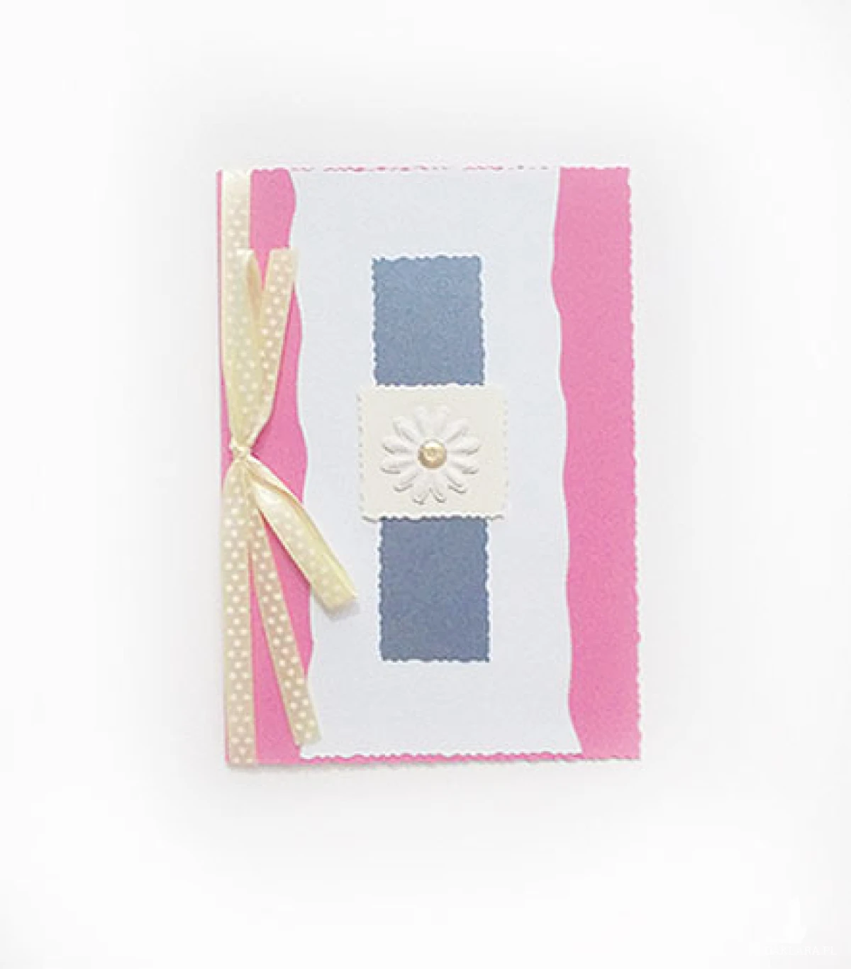 Otwierana kartka okolicznościowa bez życzeń, gruby kartonik, wstążeczka. Kartka na dowolną okazję. Dołączona biała koperta.