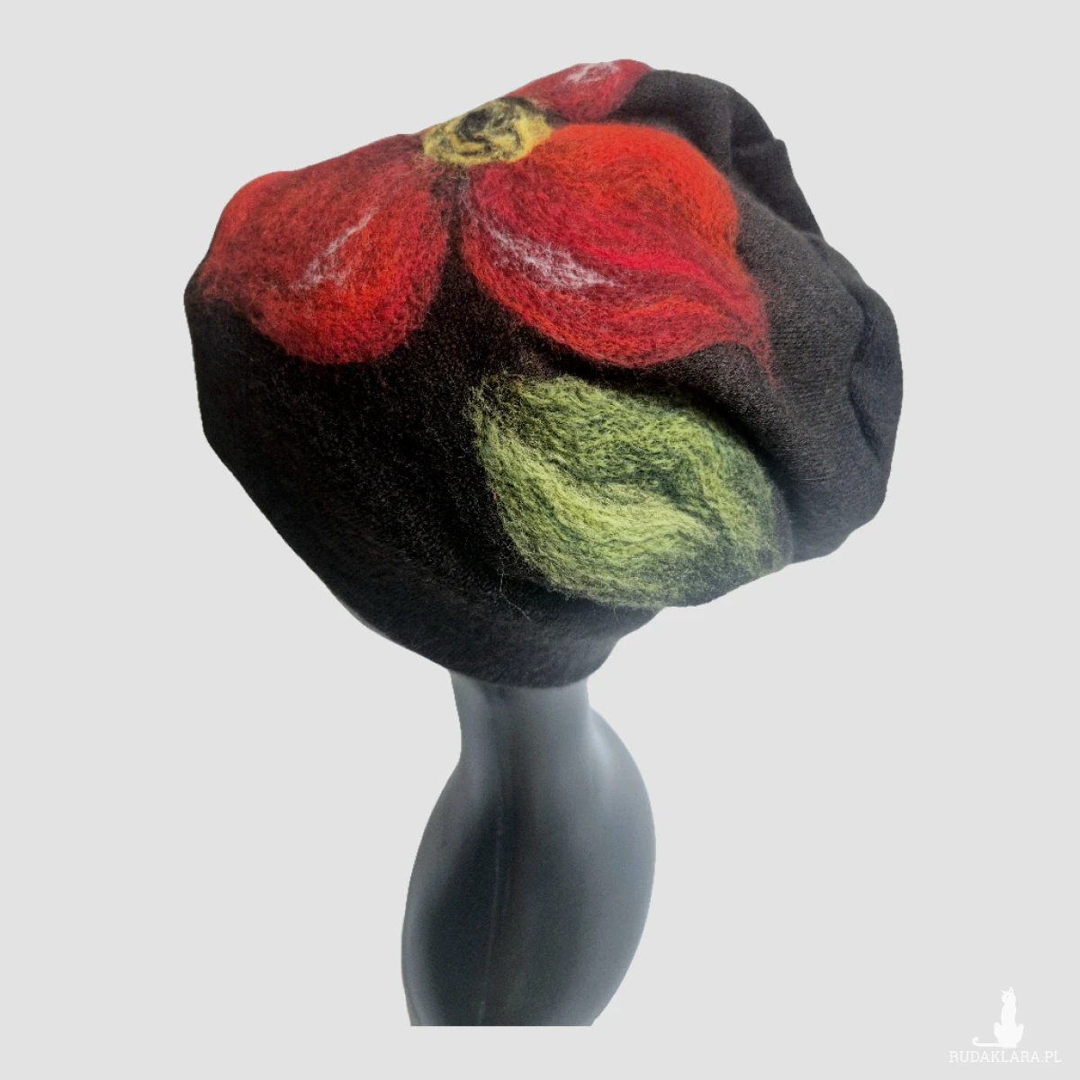 czapka wełniana filcowana zimowa handmade w kwiaty na podszewce-- rozmiar uniwersalny, wełniana, filcowana wełną merynosów, bardzo ciepła, fantastyczna, miła, miękko układa się na głowie, niesamowicie zwraca uwagę, doskonałą na codzienne noszenie jak i na prezent, zawsze możesz ją założyć po basenie i przeżyjesz z mokrą głową:) czas oczekiwania tydzień a1