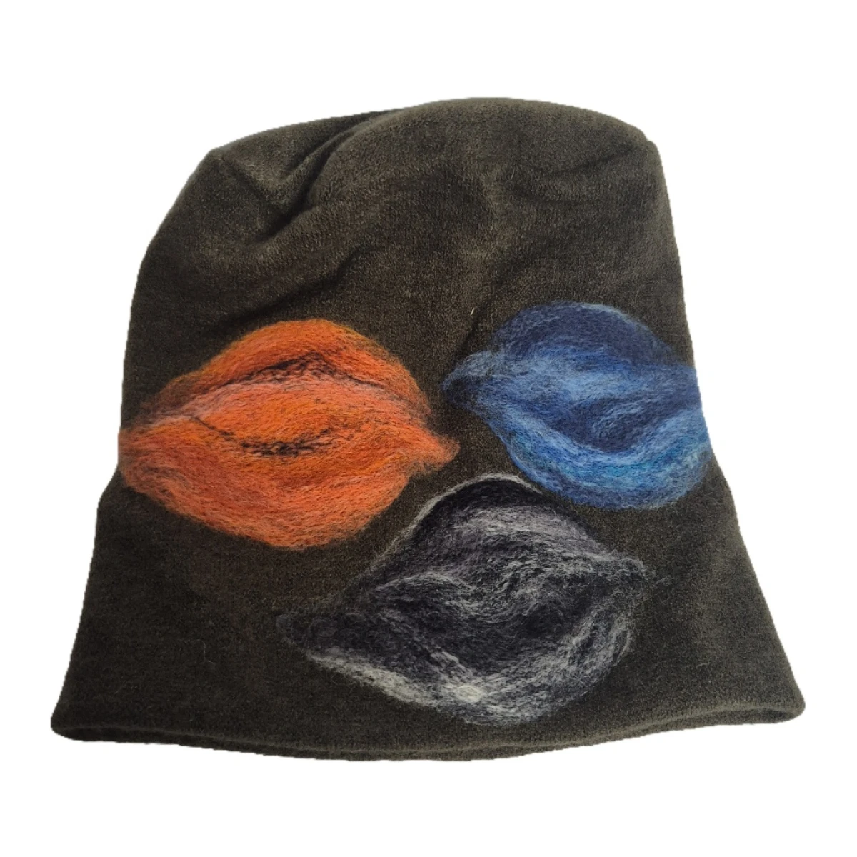czapka wełniana filcowana zimowa ciemna zieleń handmade w kwiaty na podszewce-- rozmiar uniwersalny, wełniana, filcowana wełną merynosów, bardzo ciepła, fantastyczna, miła, miękko układa się na głowie, niesamowicie zwraca uwagę, doskonałą na codzienne noszenie jak i na prezent, zawsze możesz ją założyć po basenie i przeżyjesz z mokrą głową,ostatnia,dostępna od reki a1