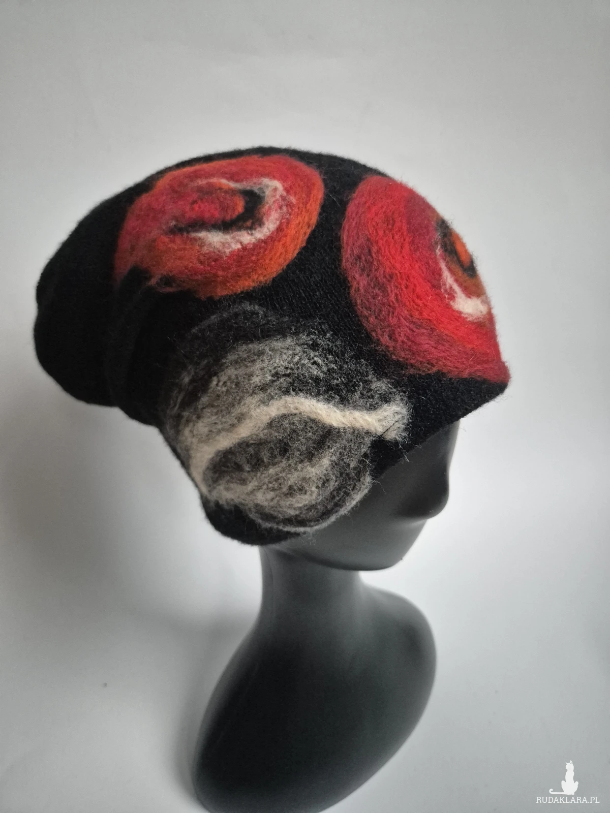 czapka wełniana filcowana zimowa ciemna zieleń handmade w kwiaty na podszewce-- rozmiar uniwersalny, wełniana, filcowana wełną merynosów, bardzo ciepła, fantastyczna, miła, miękko układa się na głowie, niesamowicie zwraca uwagę, doskonałą na codzienne noszenie jak i na prezent, zawsze możesz ją założyć po basenie i przeżyjesz z mokrą głową,wir,czas oczekiwania tydzien