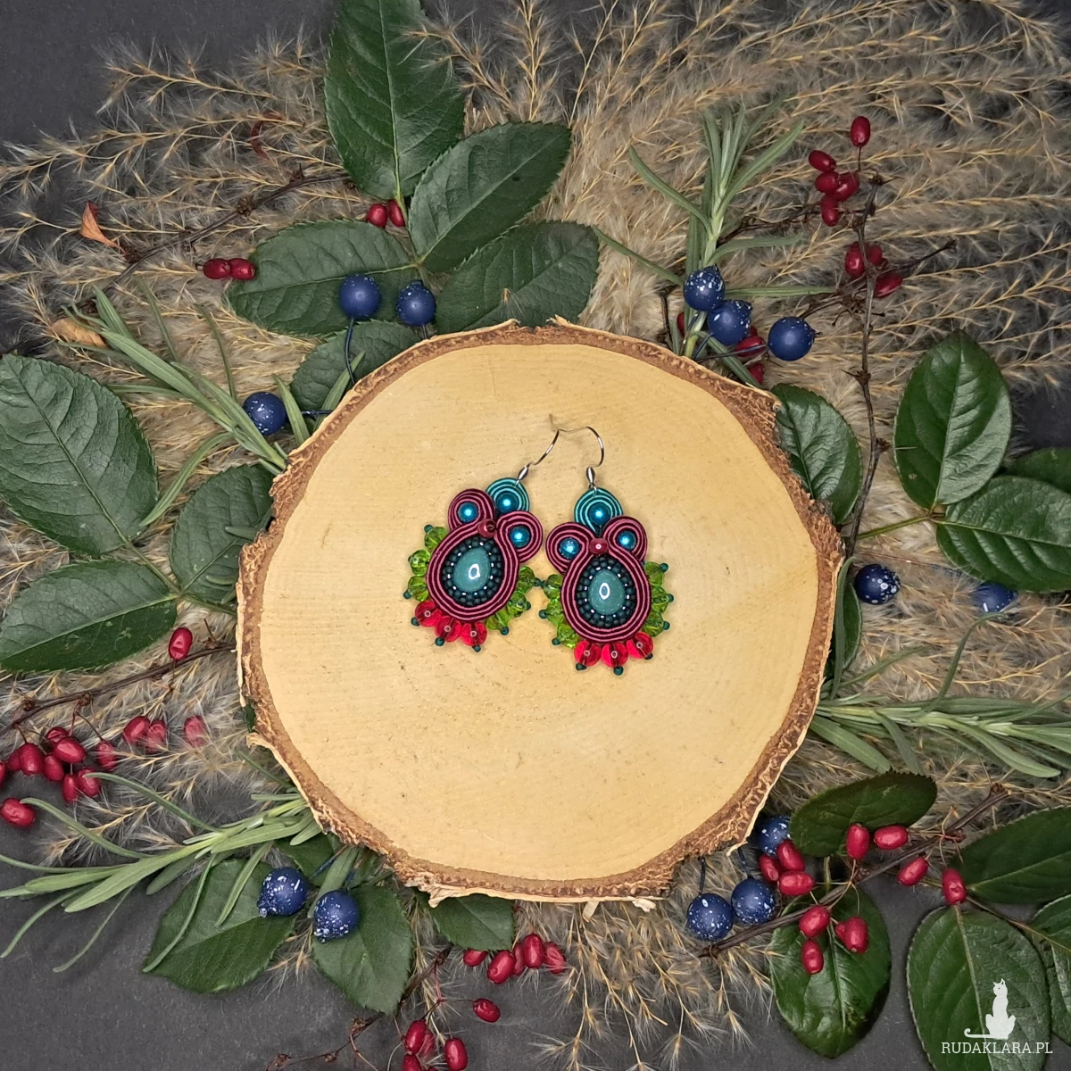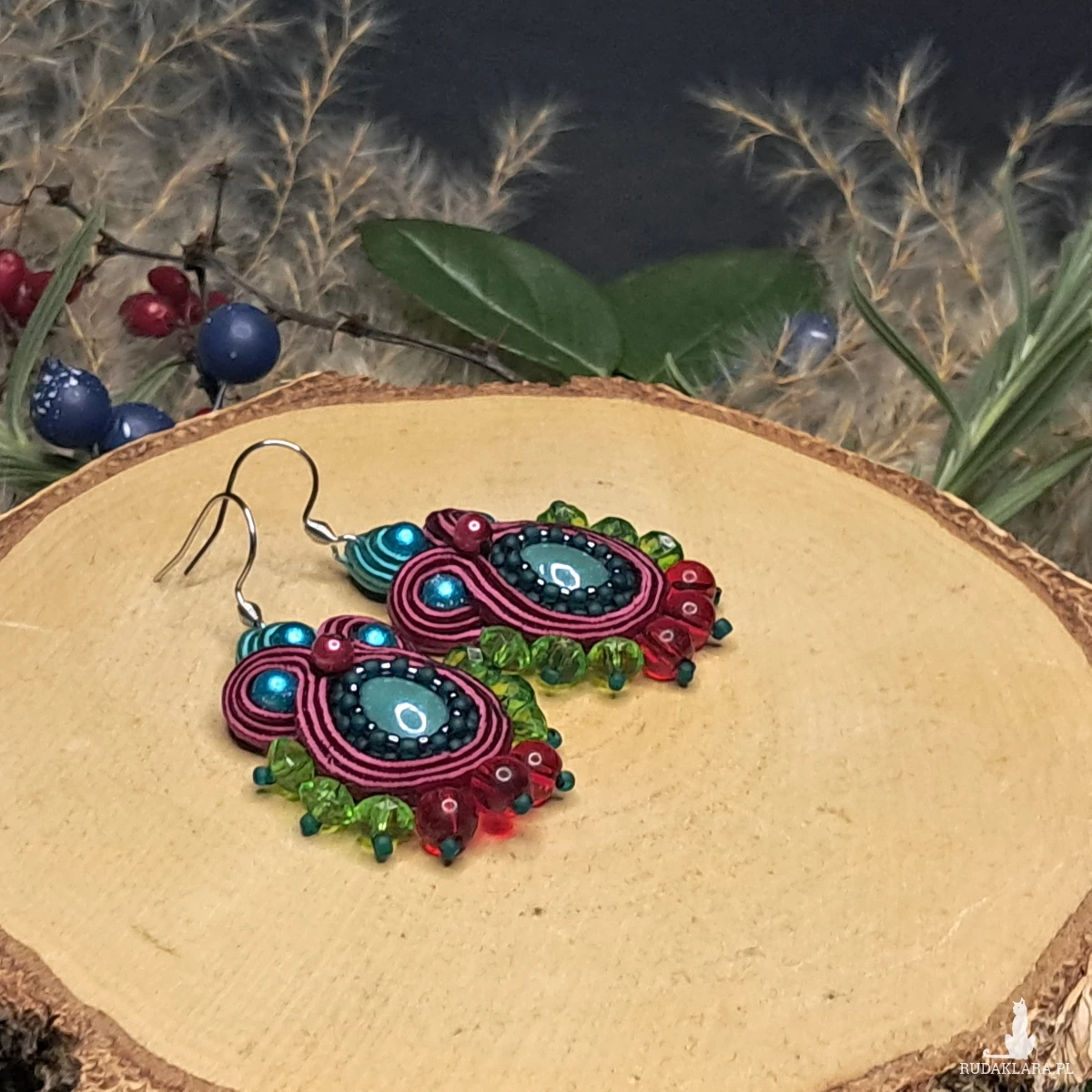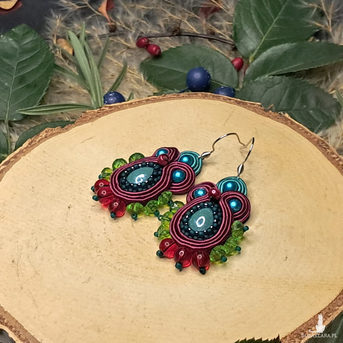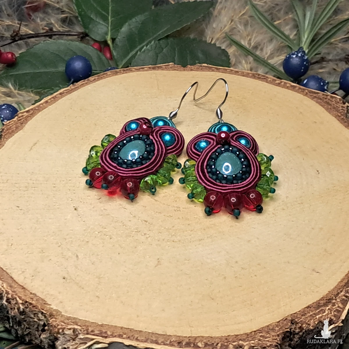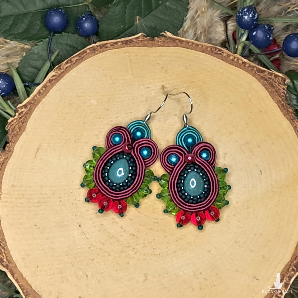 szyte kolczyki sutasz w świątecznej kolorystyce: czerwony i zielony z
