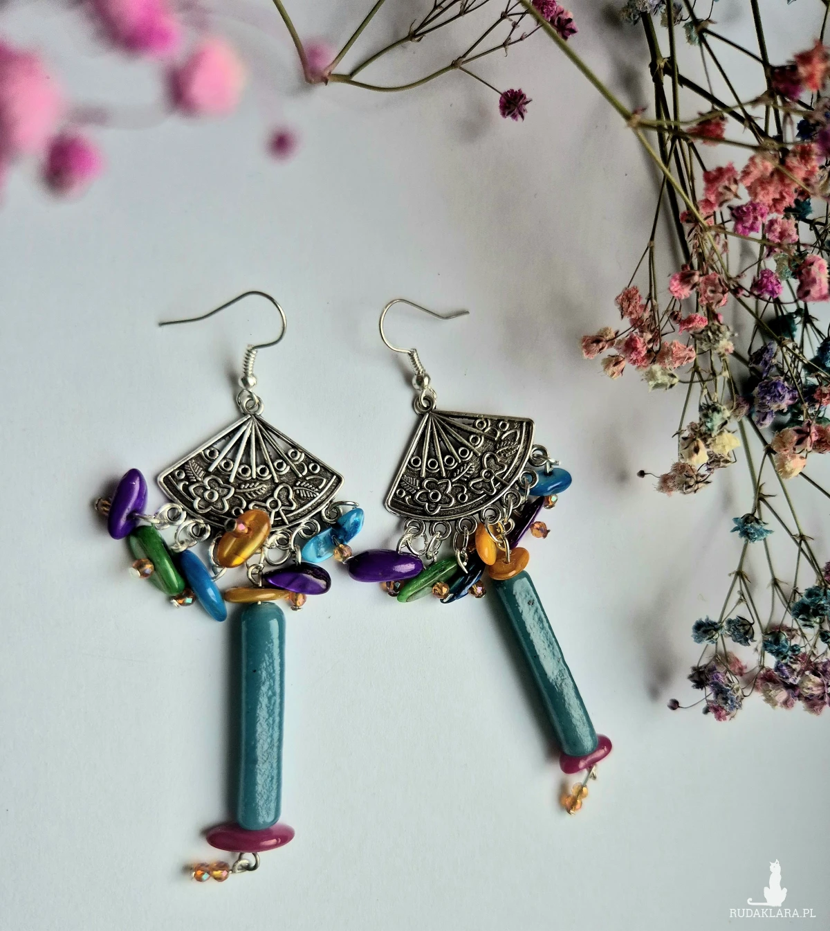 Klipsy boho kolorowe duze