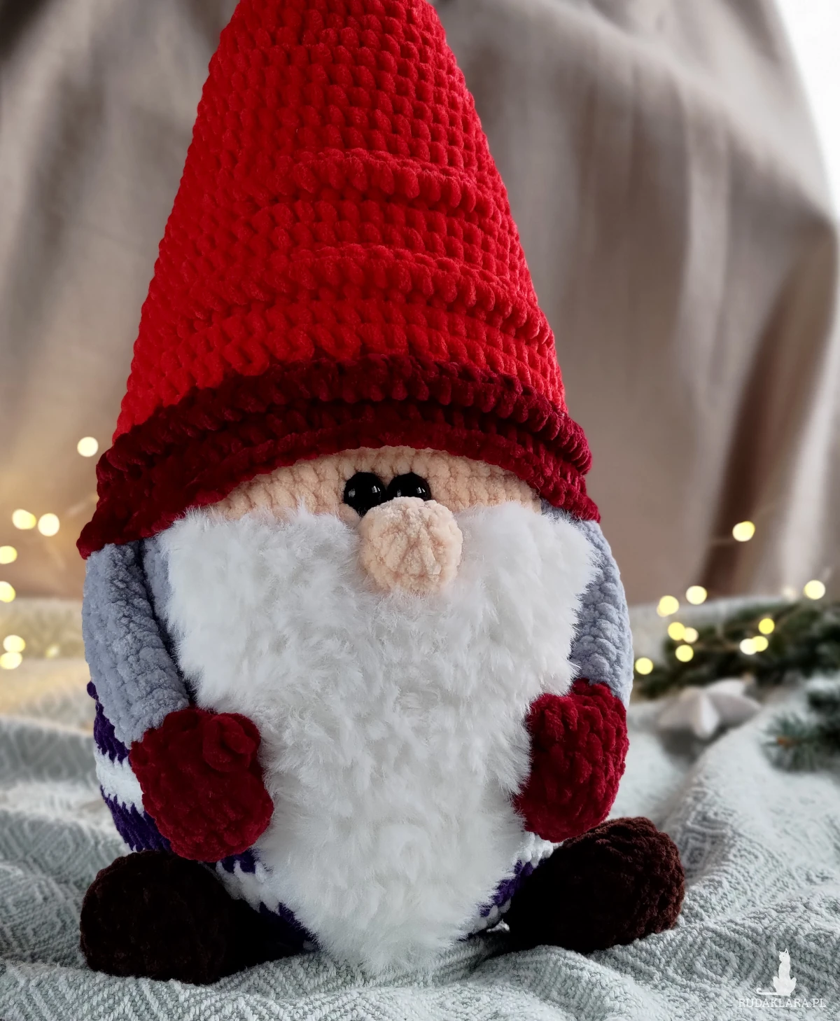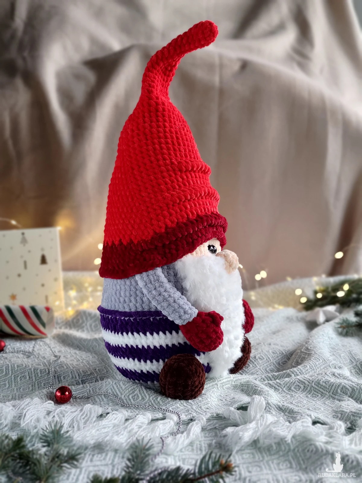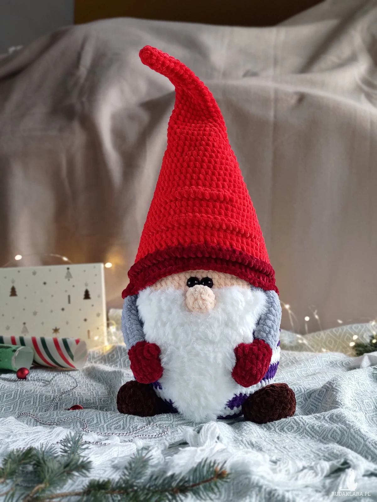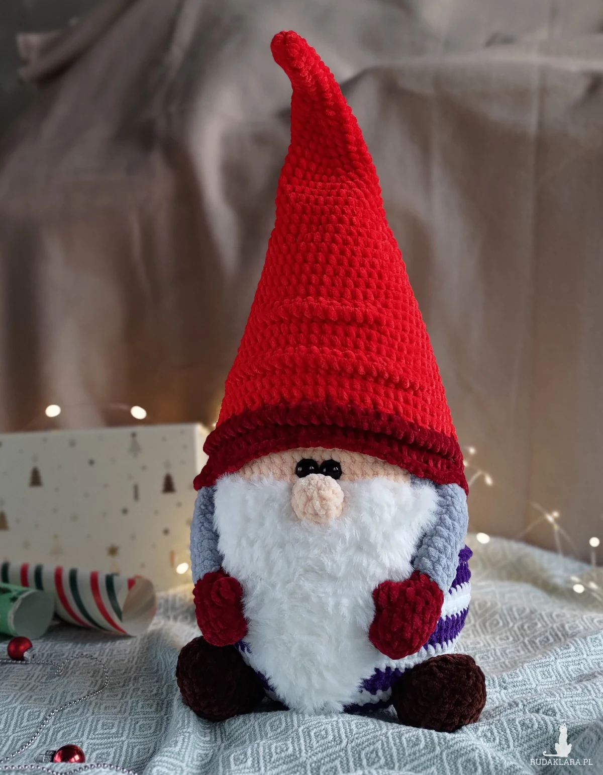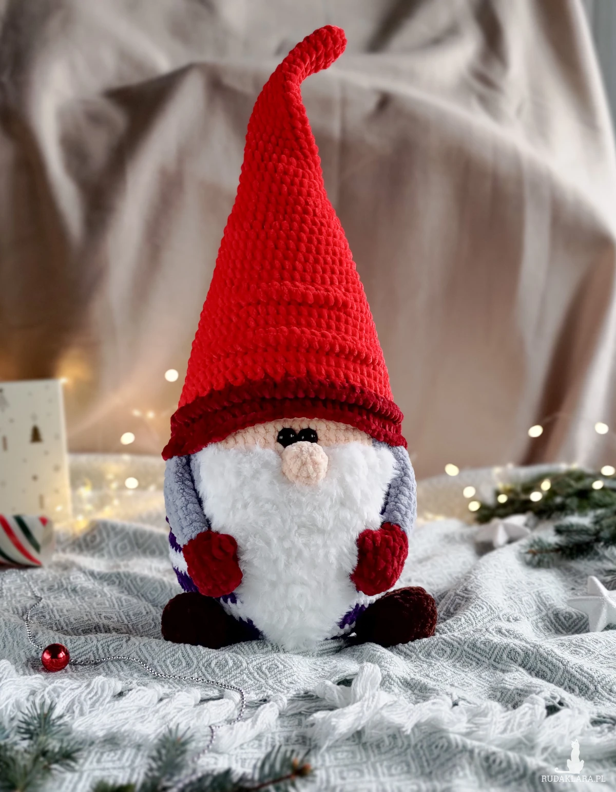 Duży krasnal świąteczny wykonany na szydełku to jest bardzo niesamowita dekoracja na święta Bożego Narodzenia oraz Nowy rok!