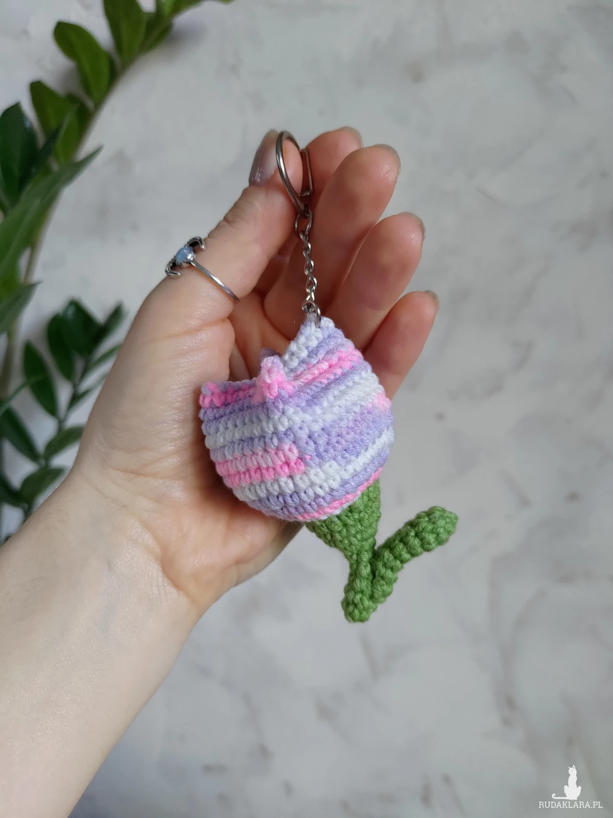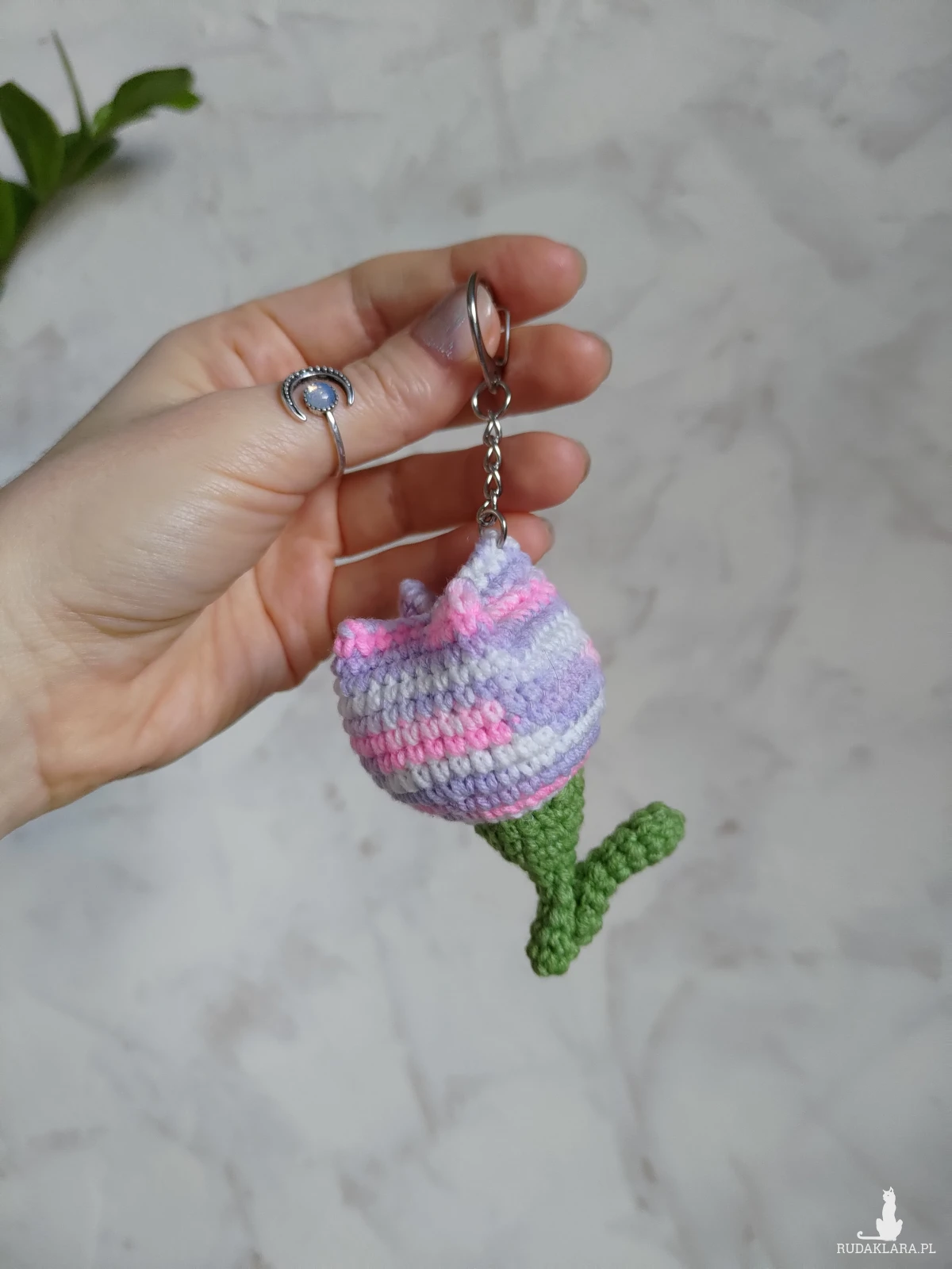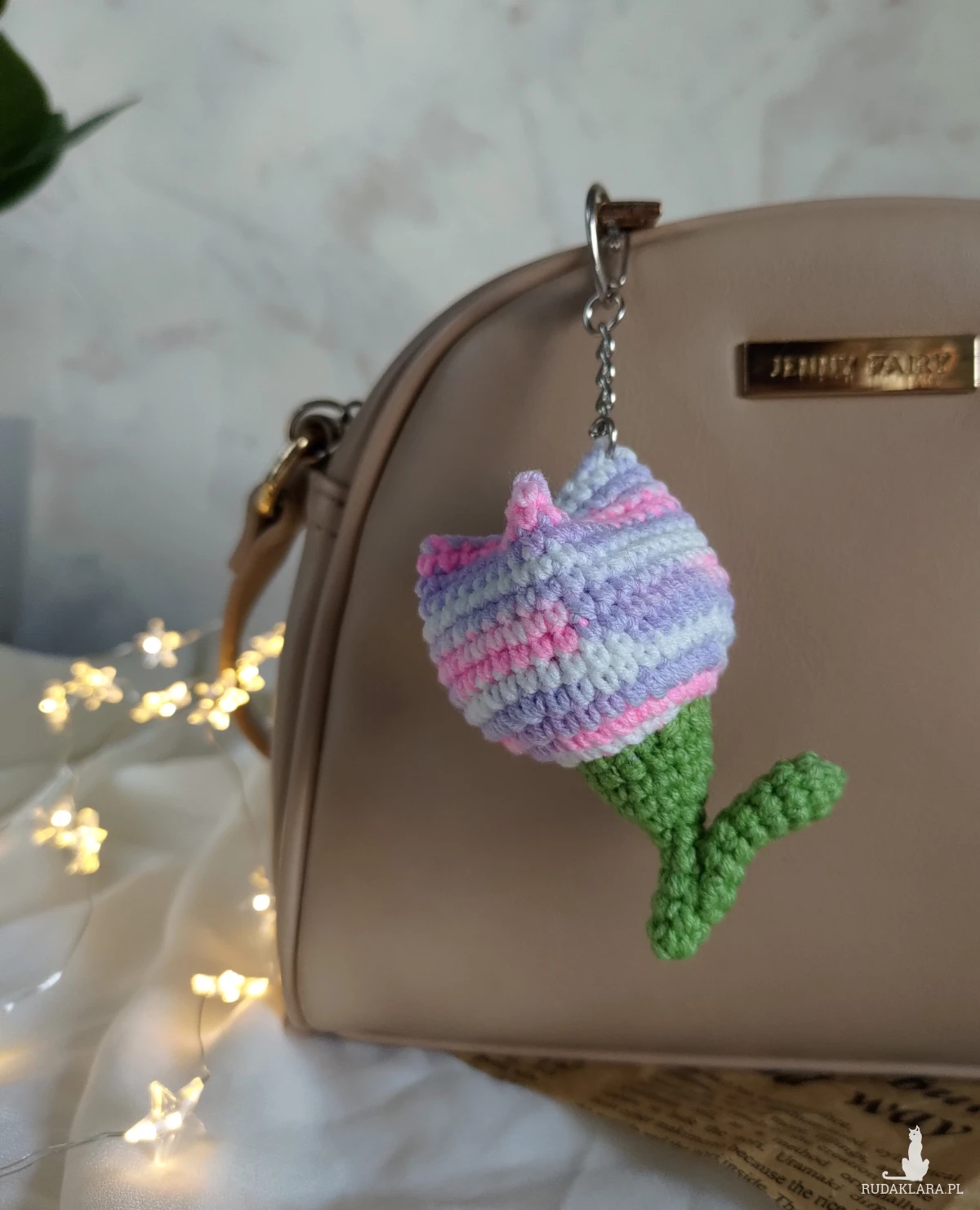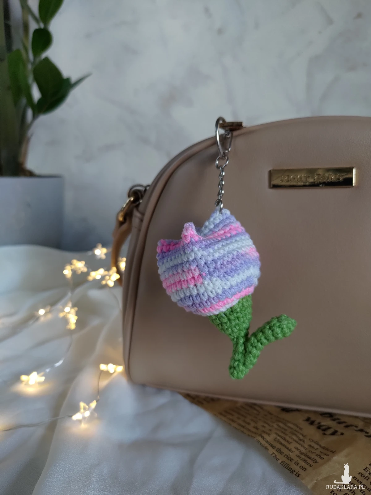 Szydełkowy brelok tulipanek będzie doskonałym dodatkiem do plecaka/torebki/kluczy oraz wspaniałym prezentem na każdą okazję i wyjątkowy moment.