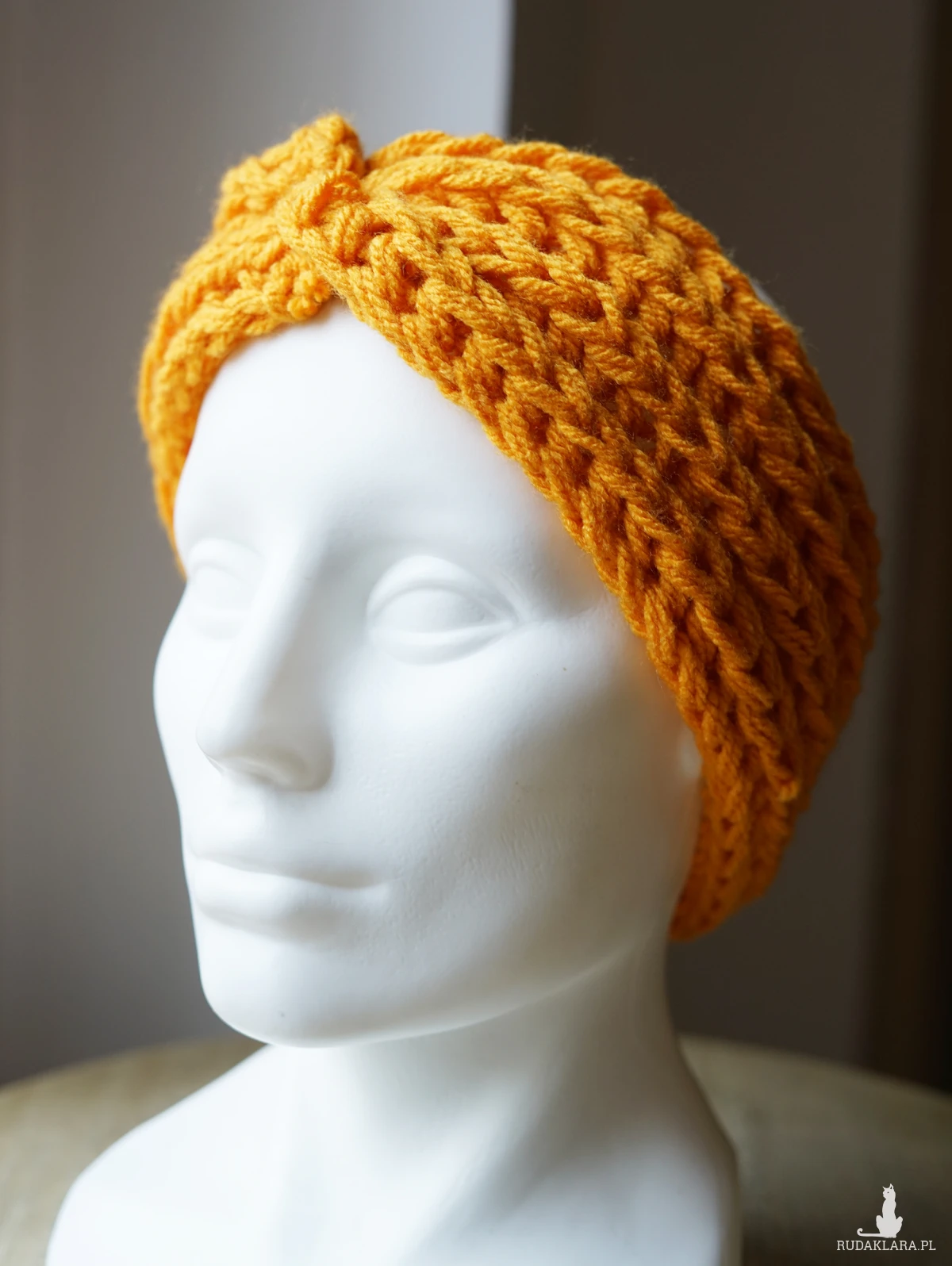 Gruba, elastyczna i ciepła opaska na głowę w modnym kolorze.