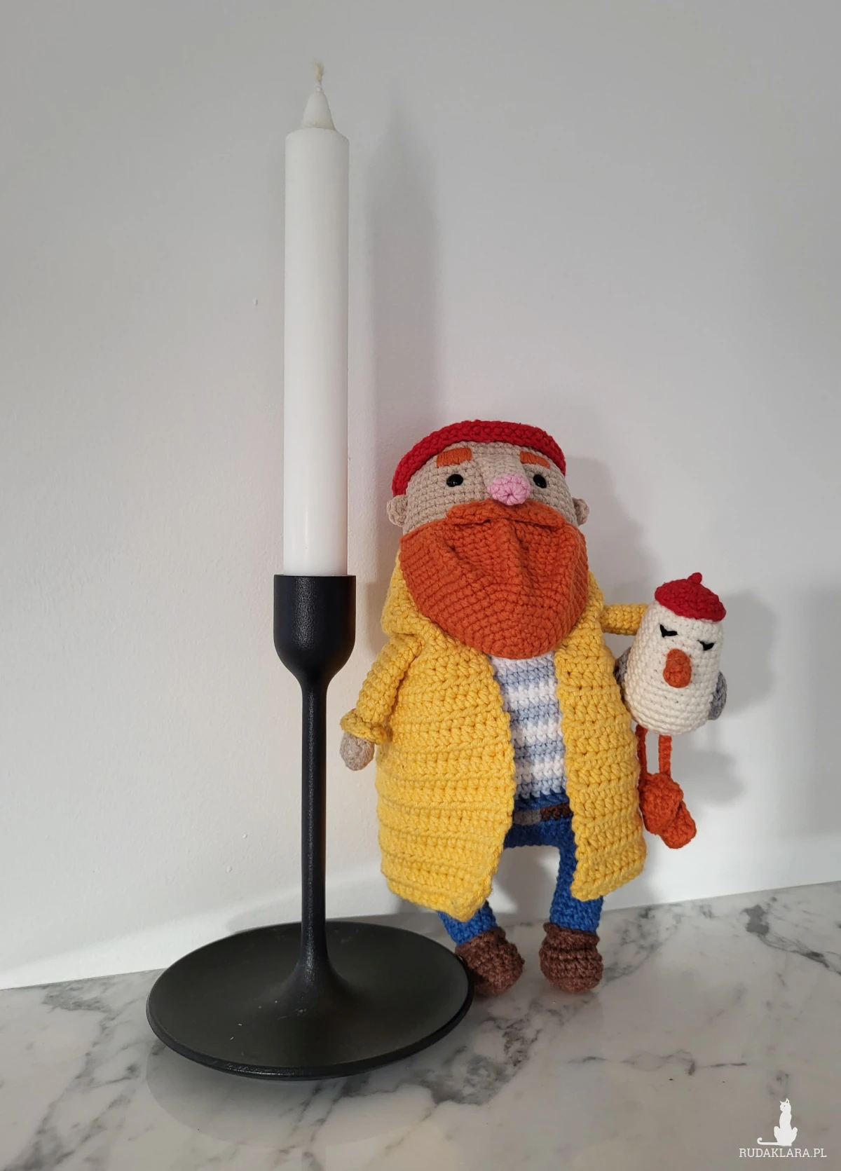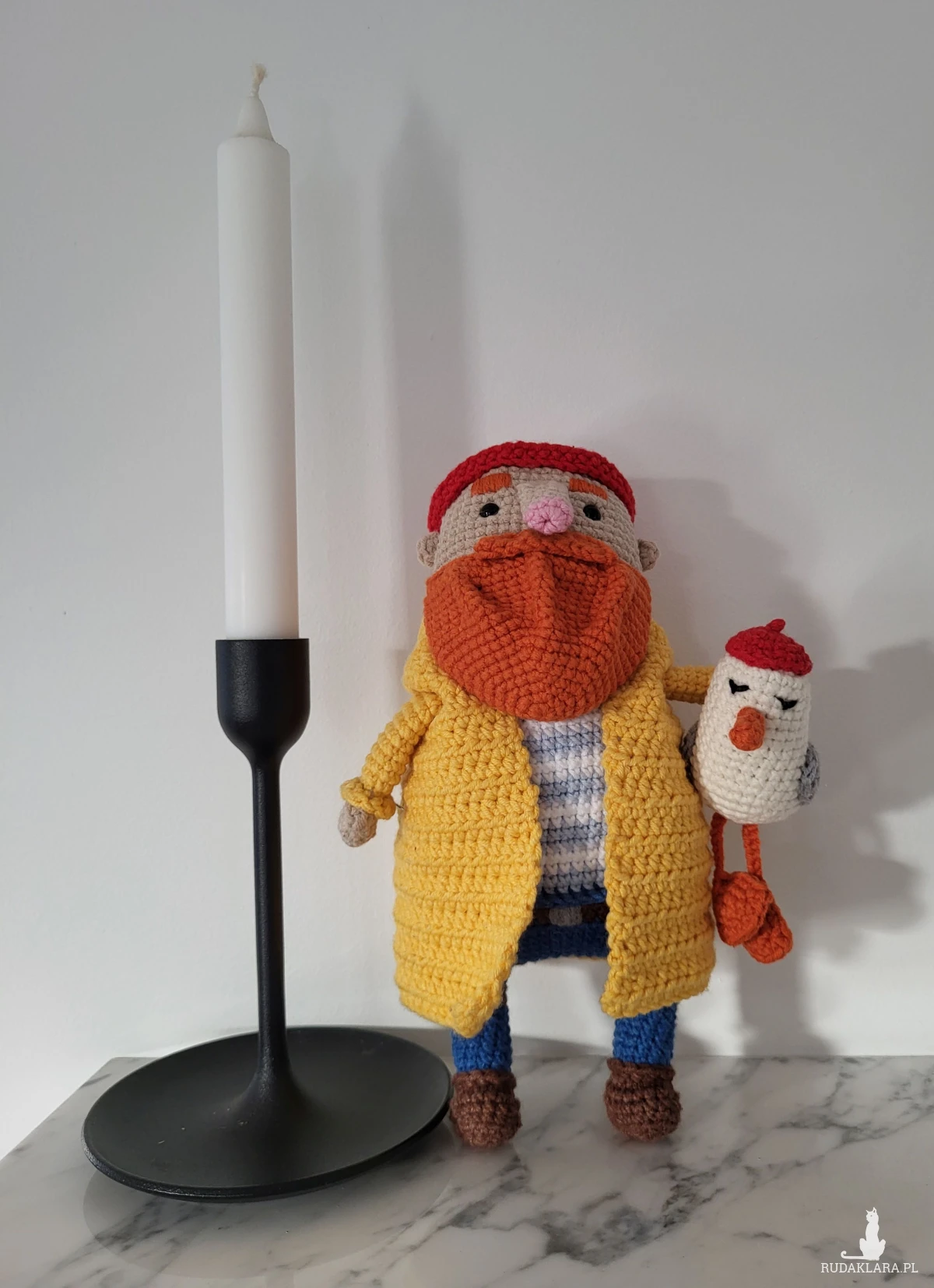 Lalka została wykonana bardzo starannie z włóczki YarnArt Jeans (45% akryl, 55% bawełna) i wypełniona antyalergiczną kulką silikonową.