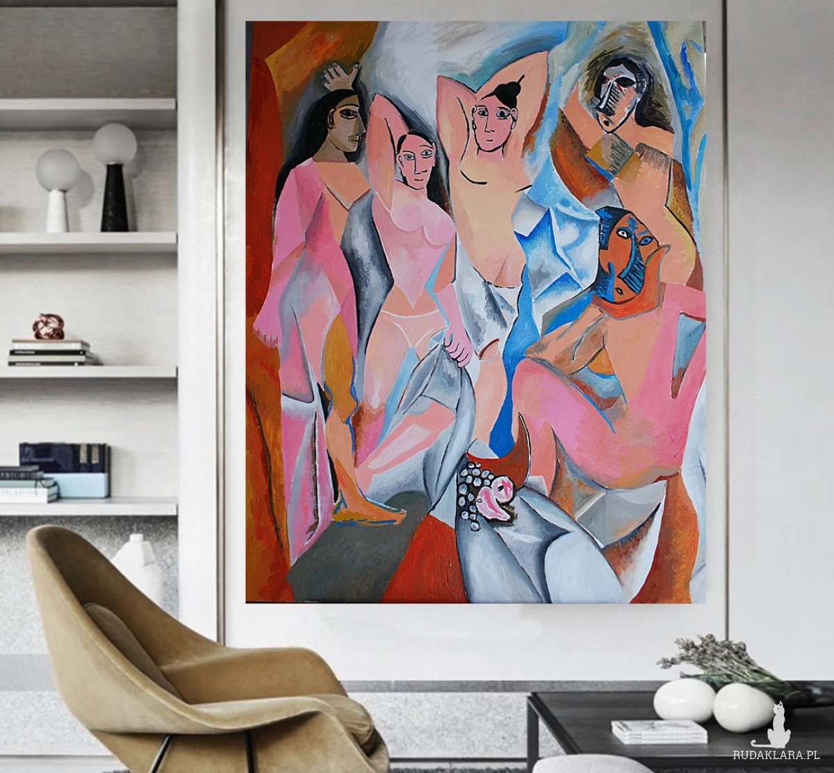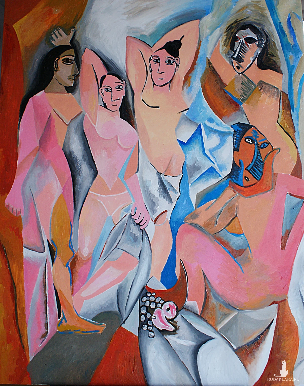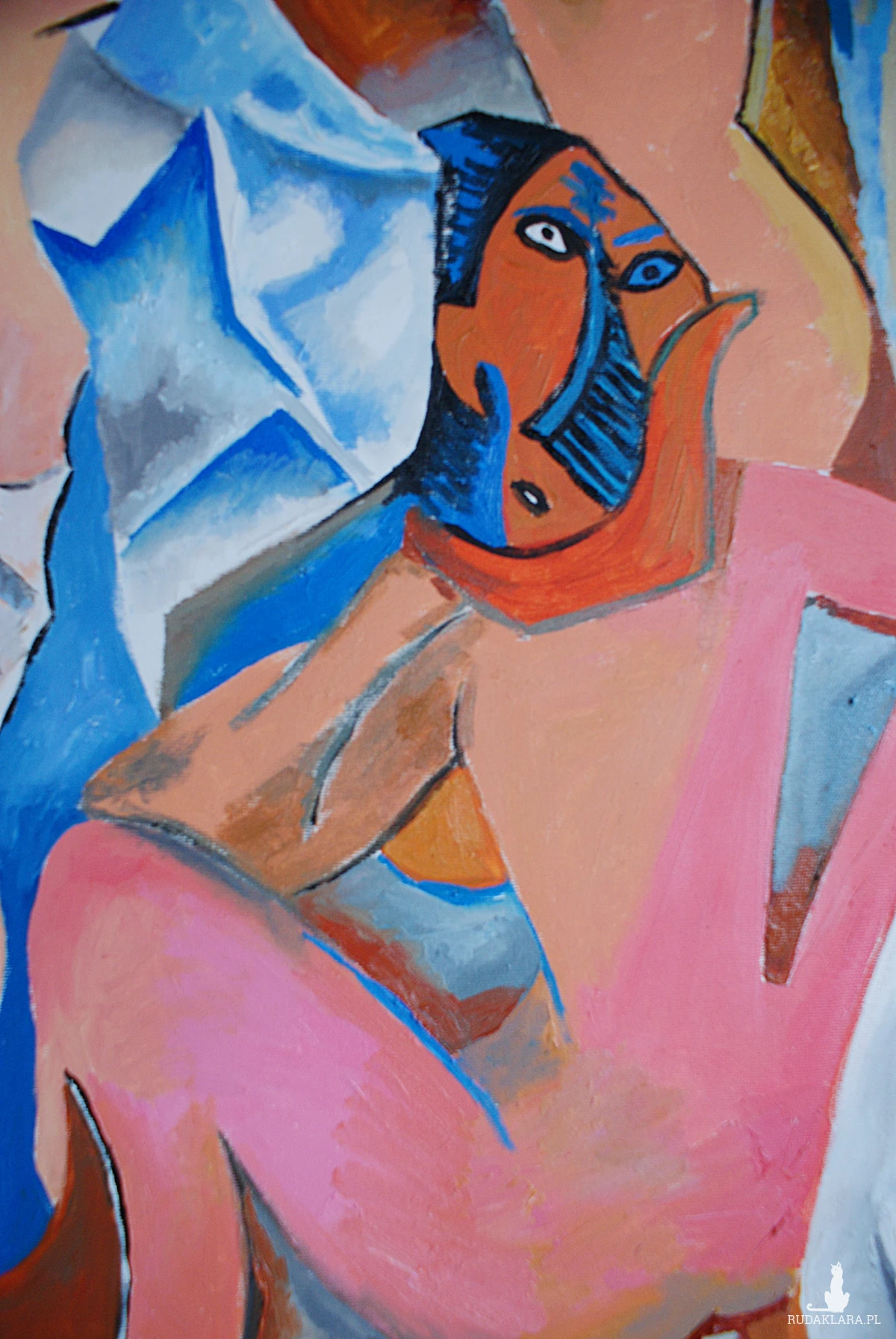 Obraz namalowany techniką olejną na blejtramie o wymiarach: 100/80 cm, boki obrazu zamalowane. Świetnie może być eksponowany w nowoczesnych wnętrzach o stonowanej kolorystyce. Swoimi barwami może rozjaśnić takie wnętrza, w oświetleniu dziennym, jak i sztucznym. Polecany dla miłośników kubizmu