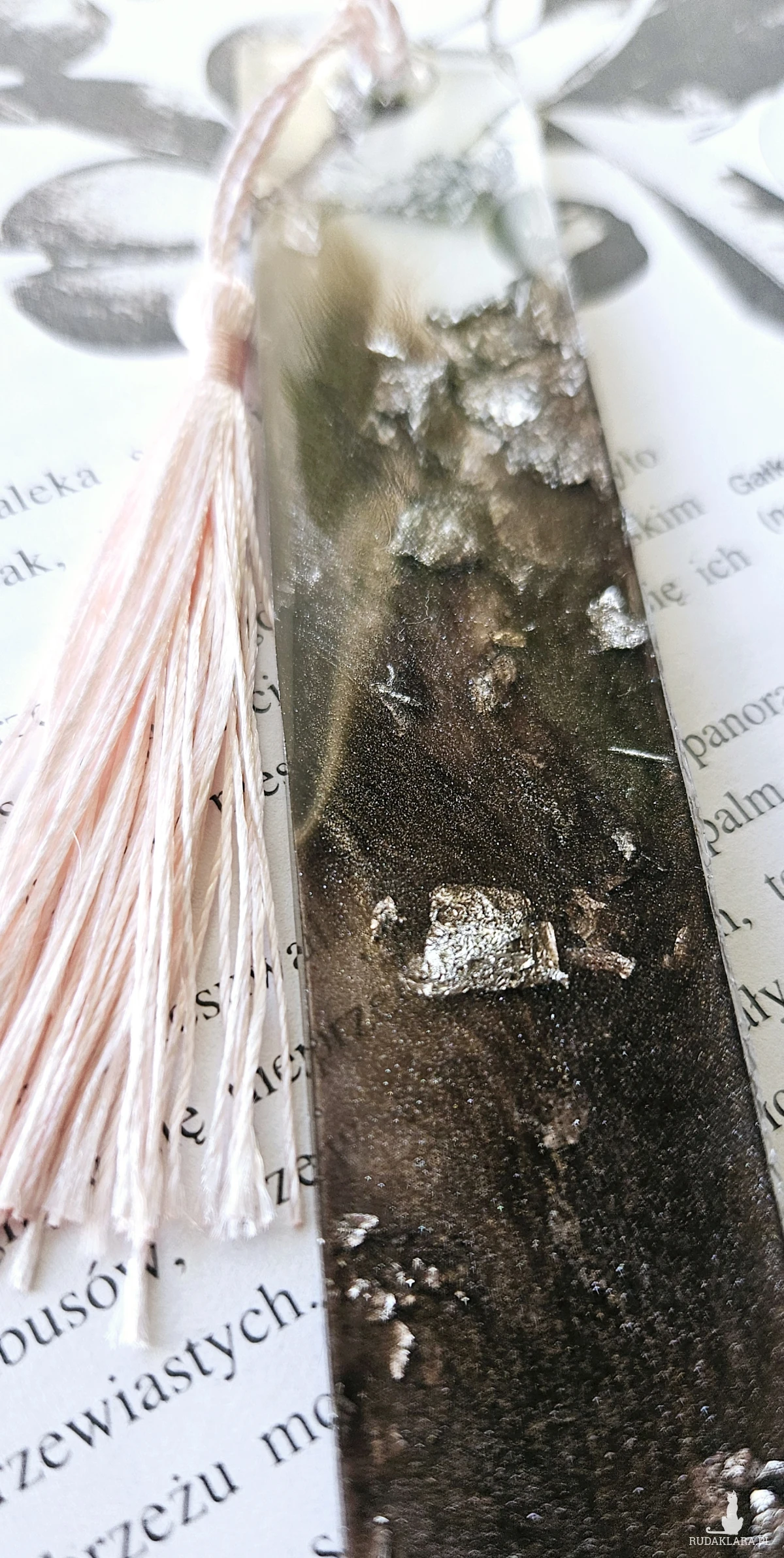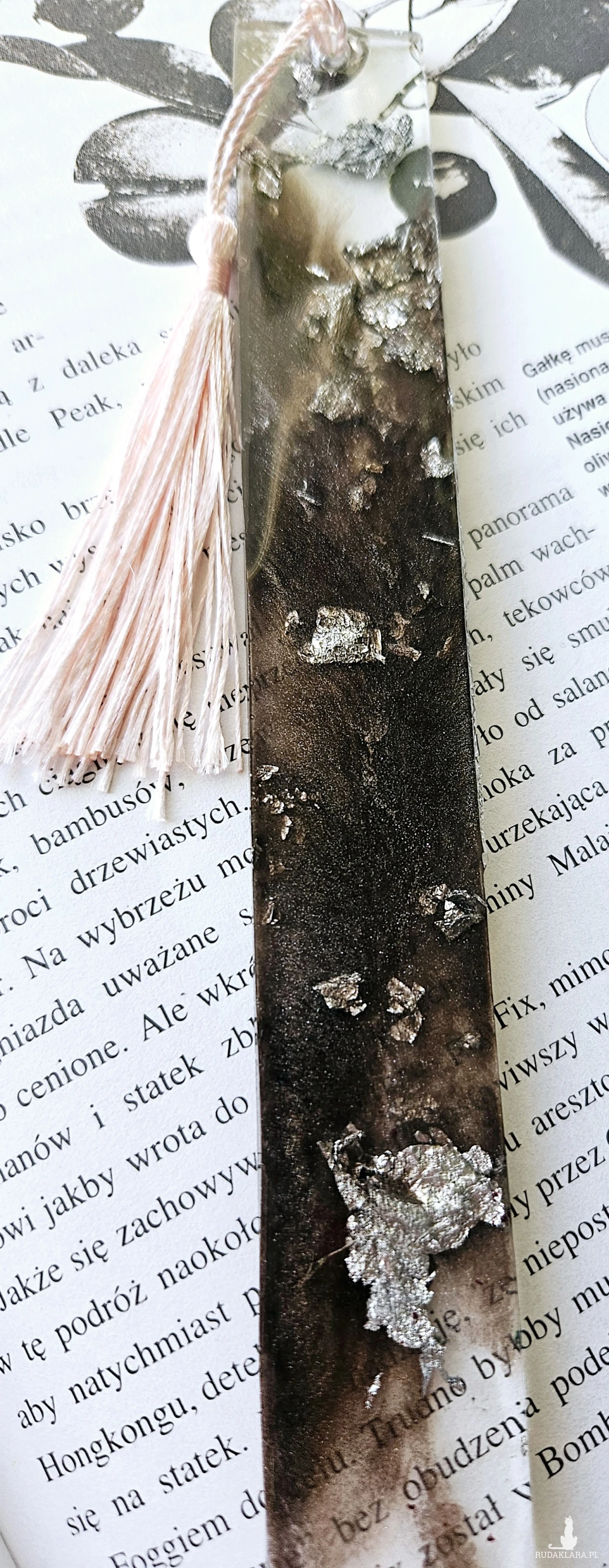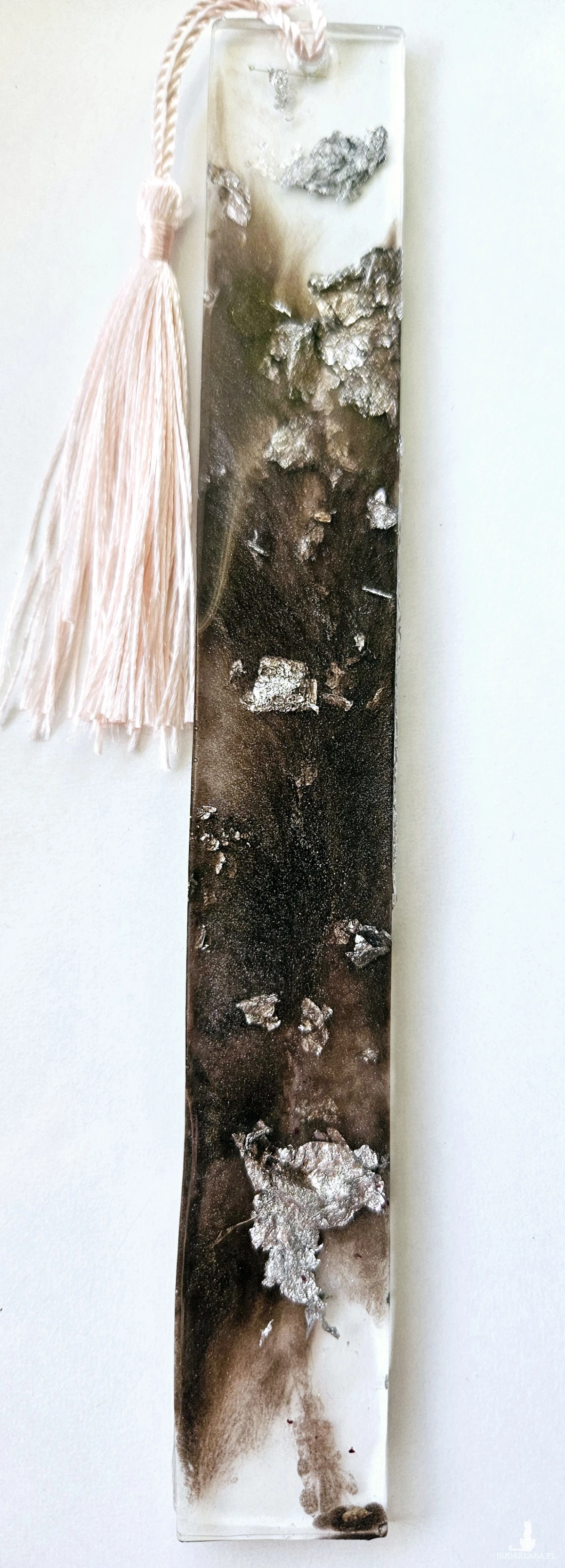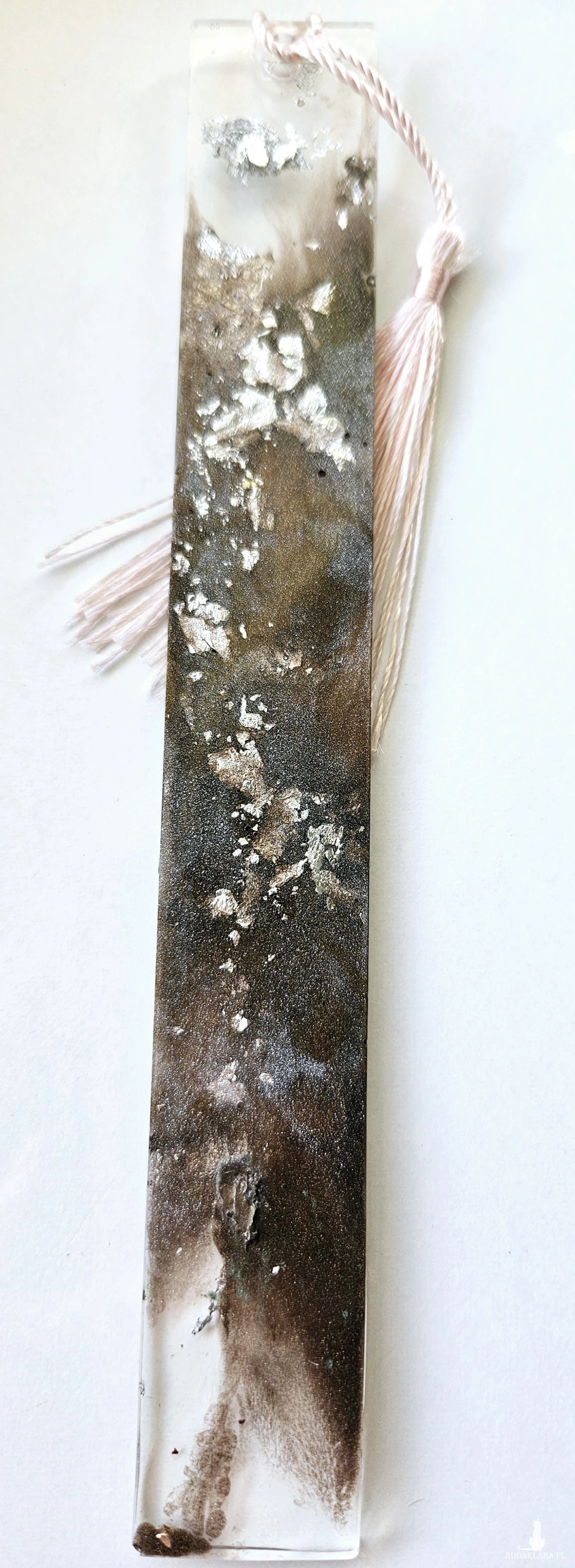 Zakładka z żywicy epoksydowej z płatkami srebra i brązem D06