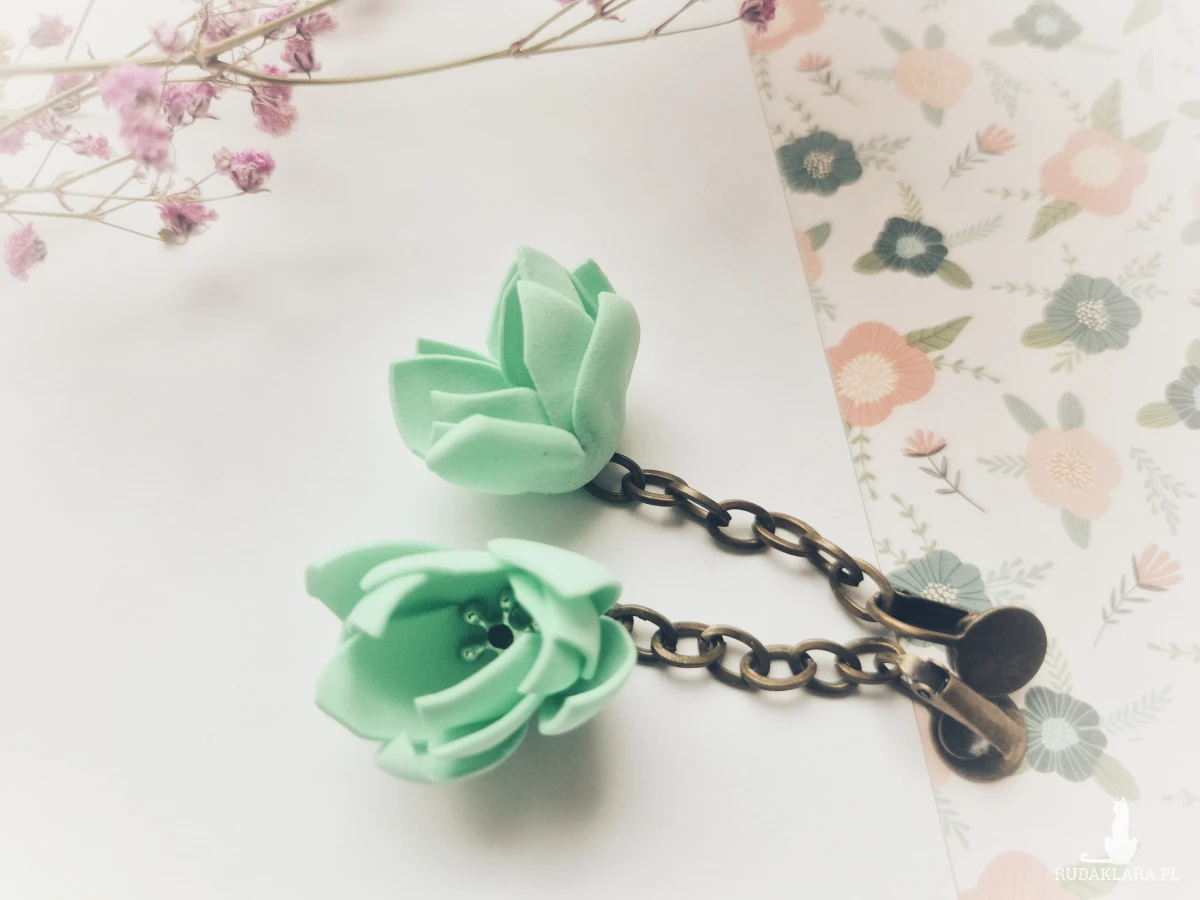 Klipsy cudne miętowe kwiaty oparte na sztuce ludowej,   absolutne szaleństwo ,bardzo lekkie,polecam