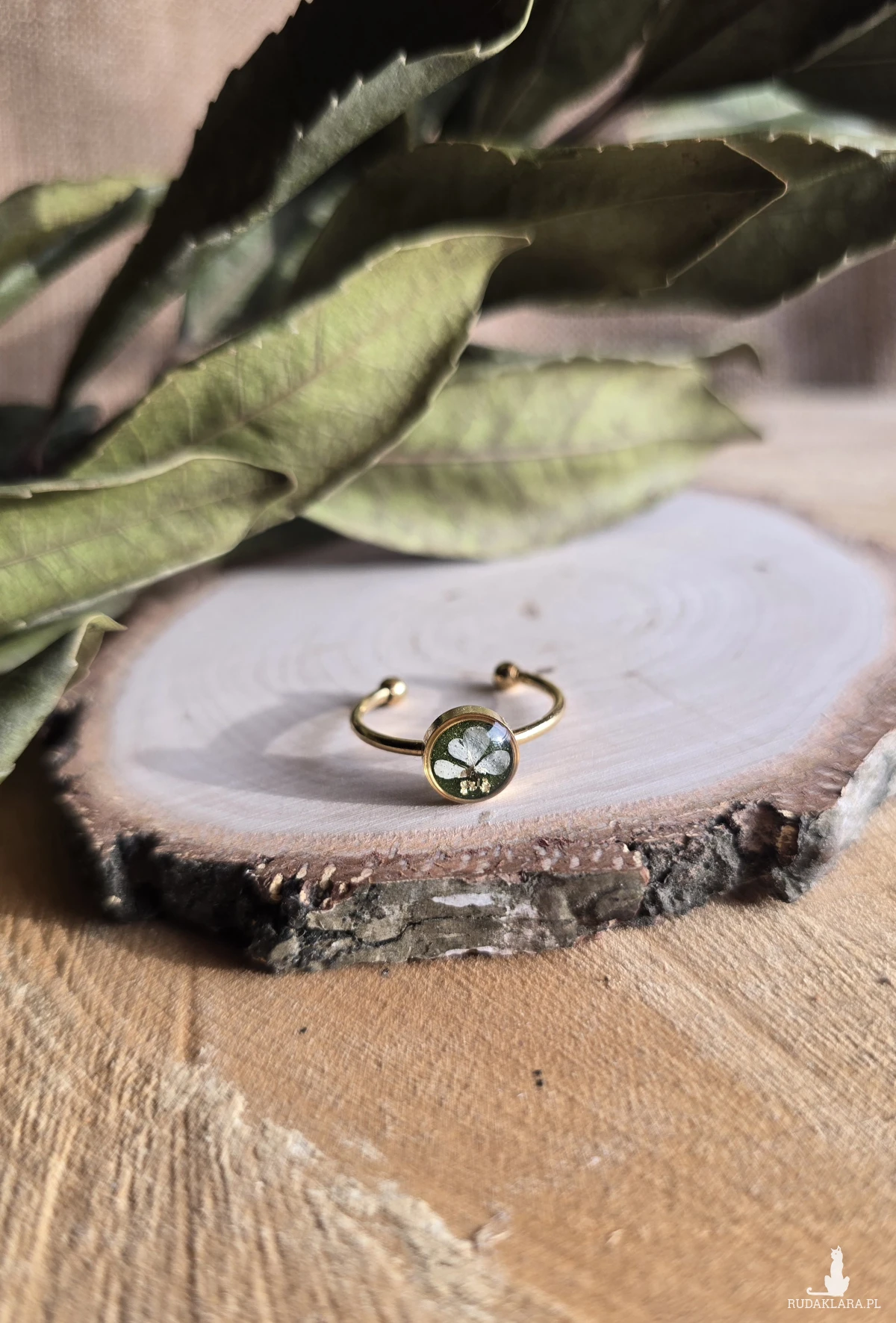 Oferuję Państwu unikalną biżuterię. Pierścionek jest wykonany z suszonych kwiatów i żywicy epoksydowej. Biżuteria jest wspaniałym i oryginalnym prezentem na lata.
