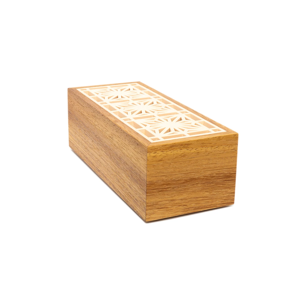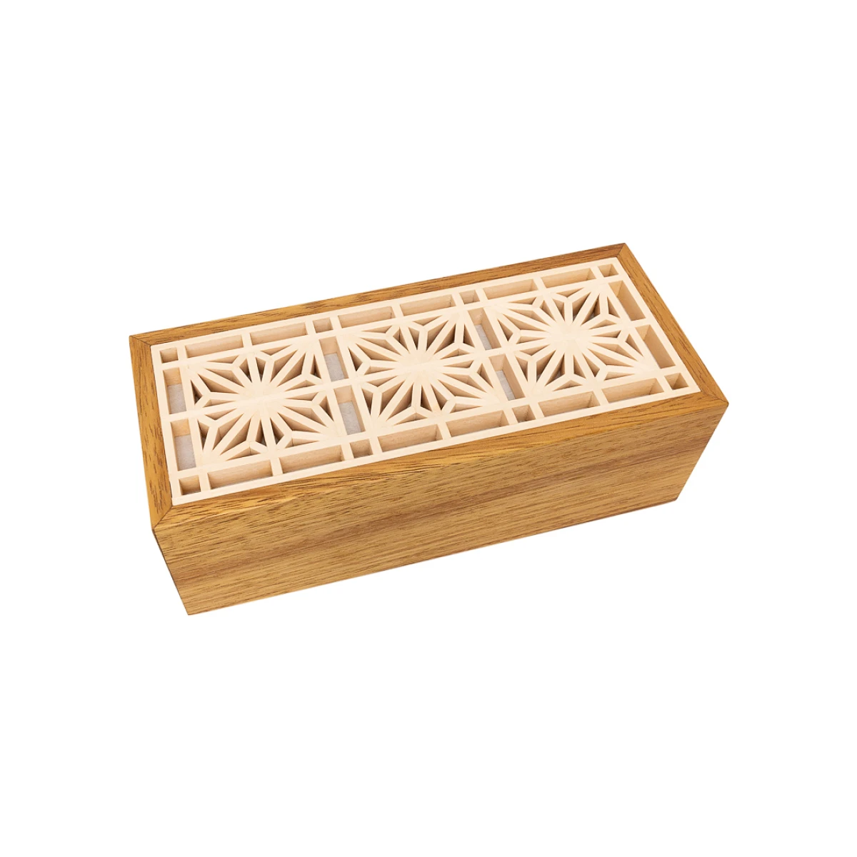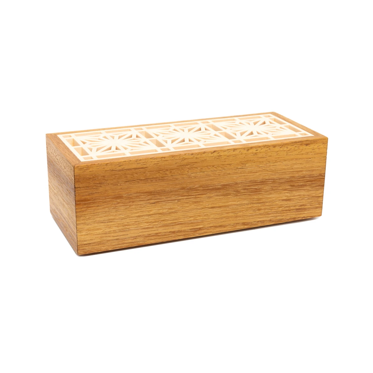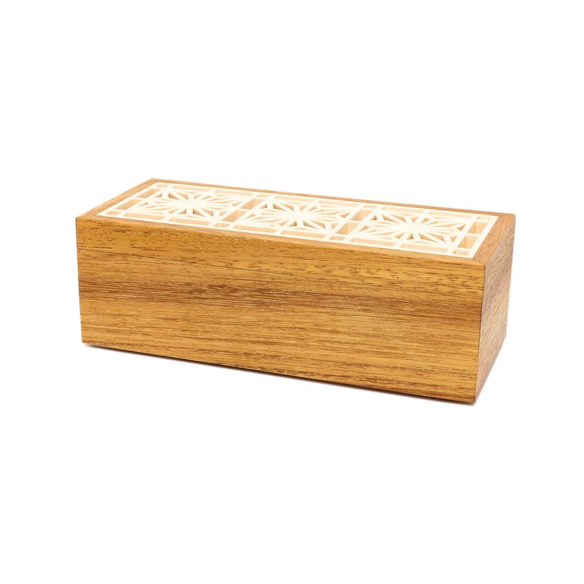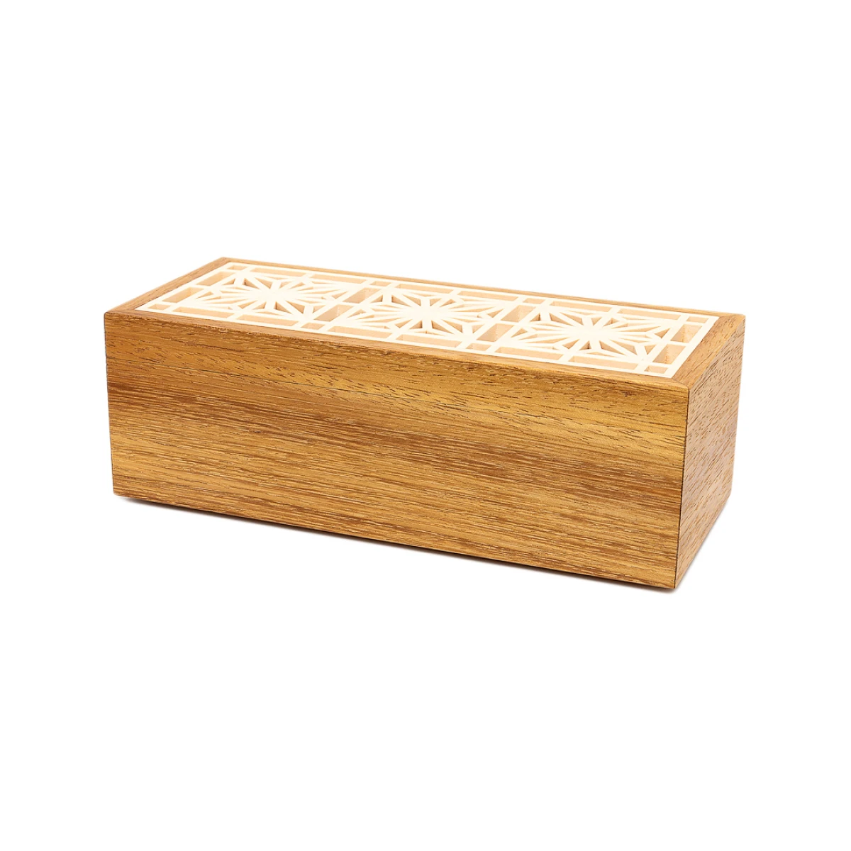 Szkatułka na biżuterię drewniana z wzorem Kumiko Asa no ha, prostokątna